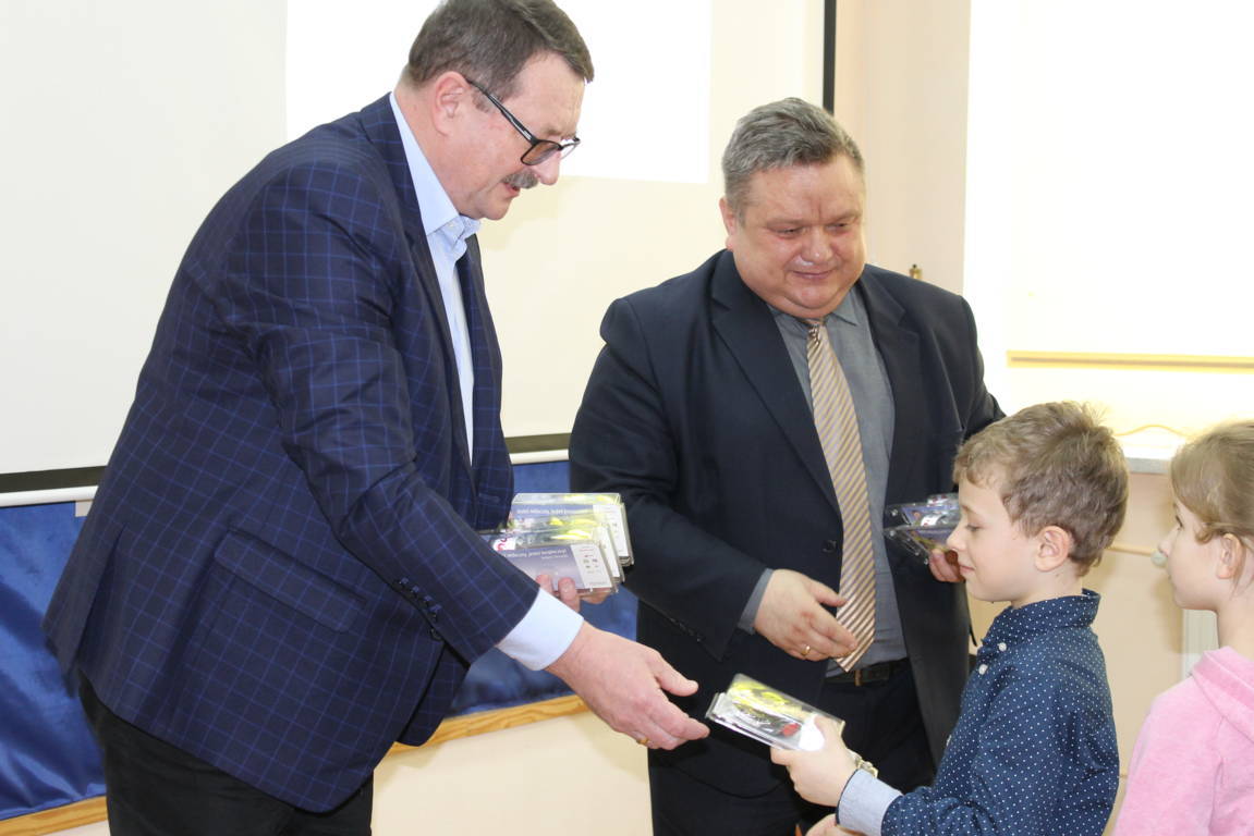 Następnie przedstawiciele WORD zaprezentowali dzieciom i rodzicom film pt. „Odblaski nocą”, poinformowali o zagrożeniach na drodze oraz ustawowym obowiązku noszenia odblasków. Poinstruowali również zebranych, jak prawidłowo nosić elementy odblaskowe. Podczas spotkania każdy pierwszoklasista otrzymał „Wyprawkę dla Pierwszaka”, zawierającą opaskę LED, opaskę odblaskową sprężystą i dwie odblaskowe zawieszki, by zwiększyć bezpieczeństwo dzieci na drodze.