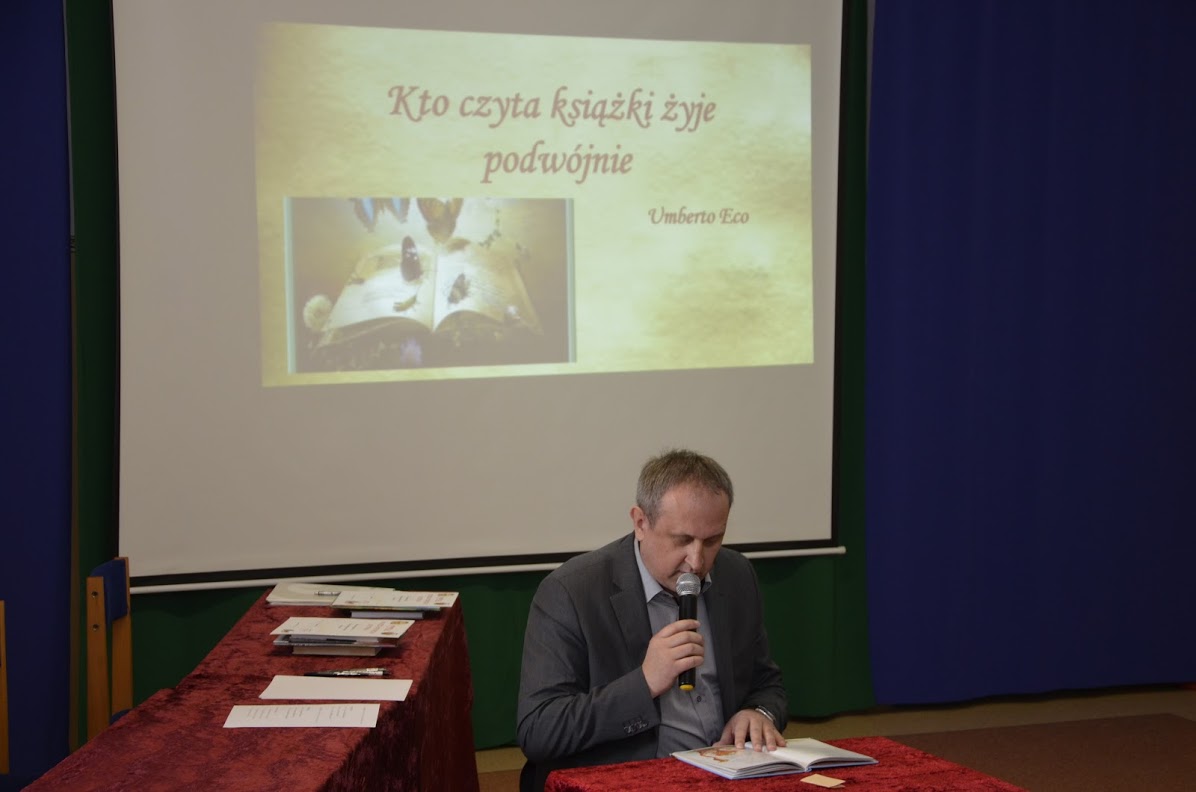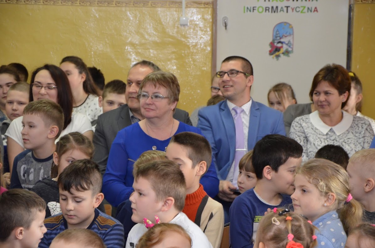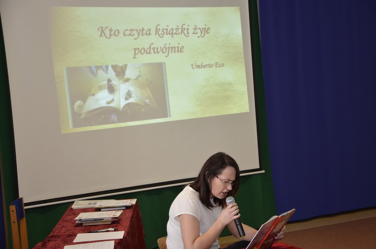 Następnie przybyli goście: pan Jarosław Basiak, pan Jarosław Gromek, szkolny logopeda – pani Magdalena Boros oraz rodzic ucznia naszej szkoły – pani Maryla Parszewska przeczytali uczniom w bardzo ciekawy sposób wybrane przez siebie wiersze, baśnie i bajki.
