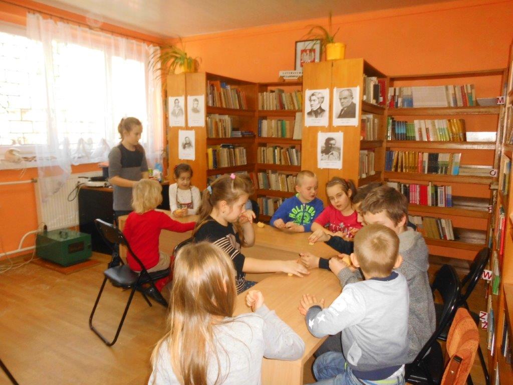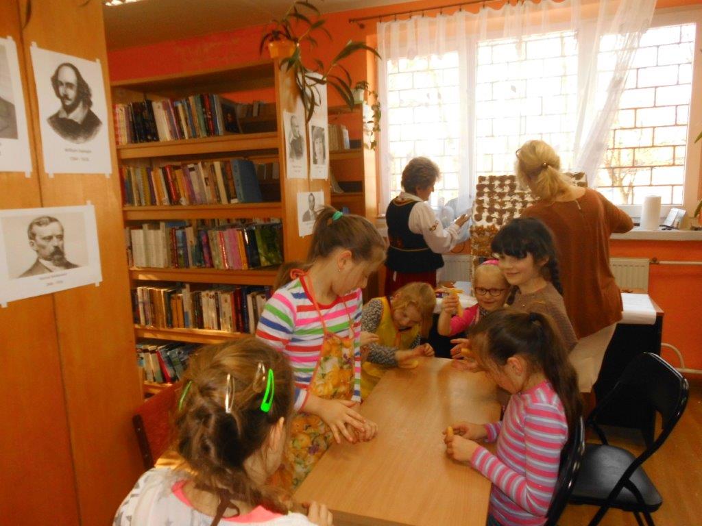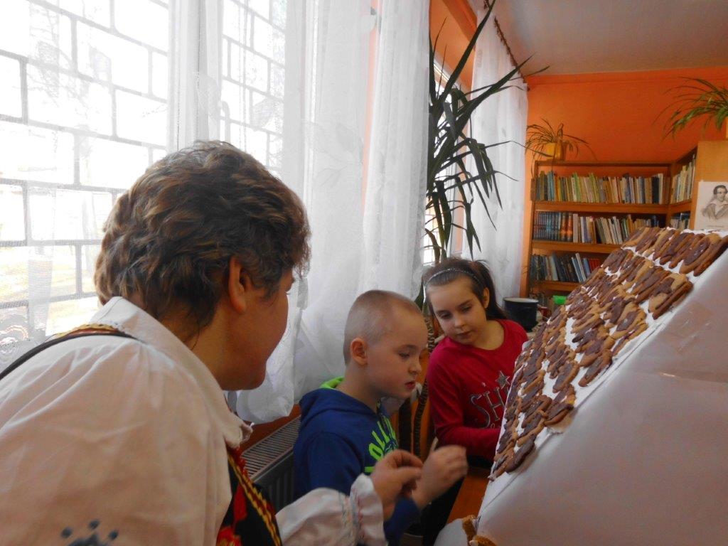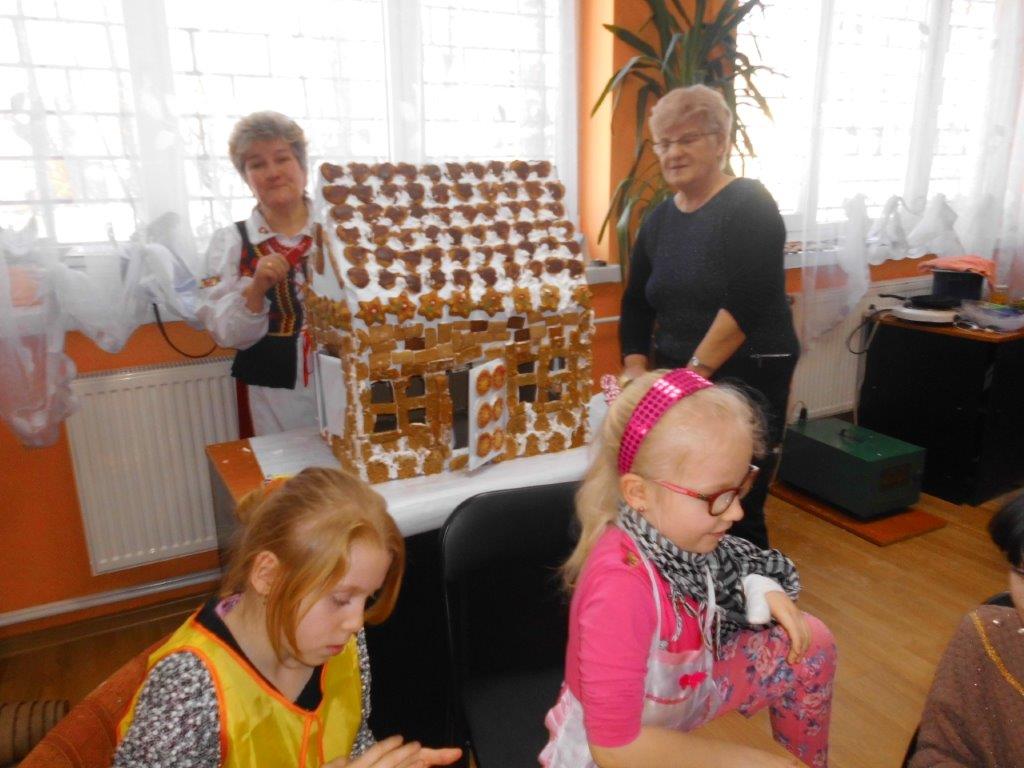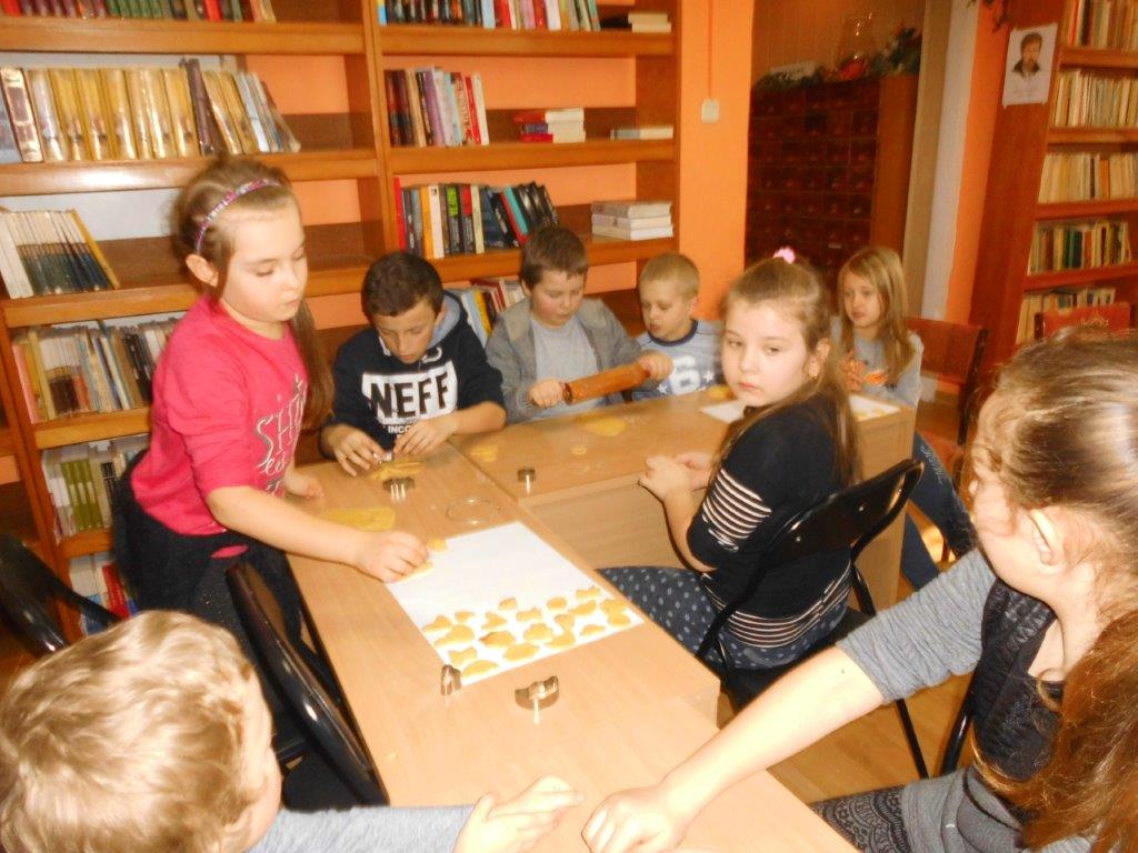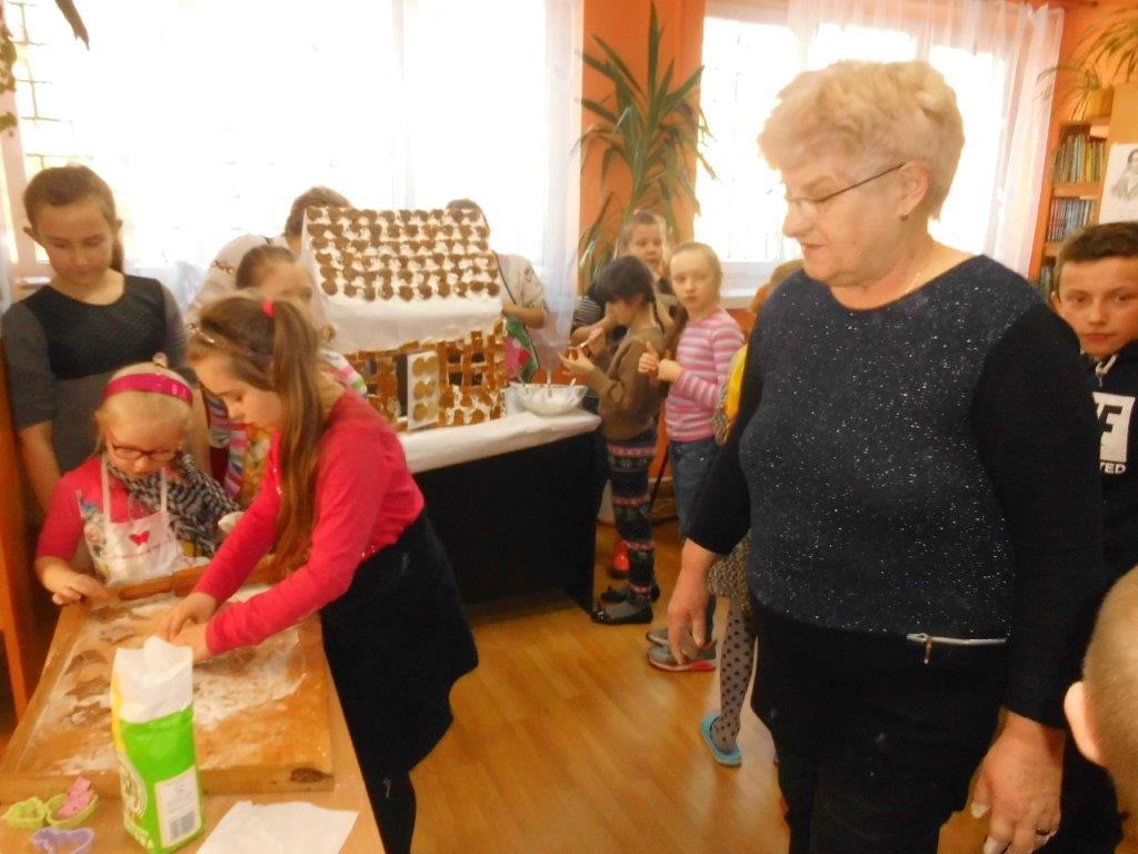 IV dzień pieczenia pierniczków w Gminnej Bibliotece Publicznej w Mirowie przebiegał równie radośnie. Warsztaty poprowadziły panie T. Nowak i B. Kobierska z zespołu „Mirowianki” . Panie razem z dziećmi kontynuowały wyrabianie, wykrawanie i wypiekanie pierniczków. W czasie, gdy pierniczki siedziały w piecyku dzieci słuchały bajki – Toruńskie pierniki, którą czytała pani B. Seweryn dyrektor biblioteki. Miały również czas na zabawę prowadzoną przez bibliotekarki.