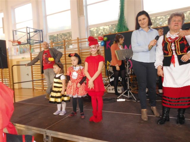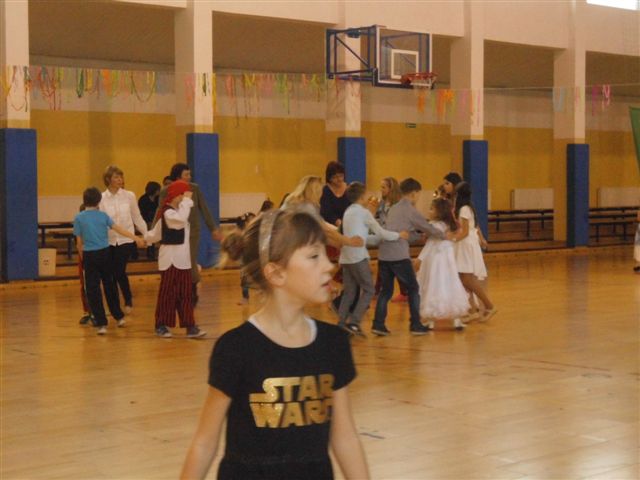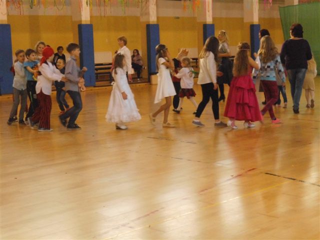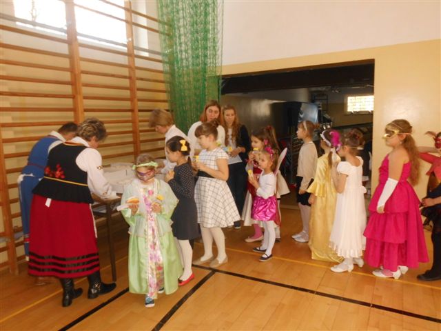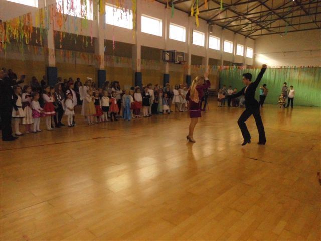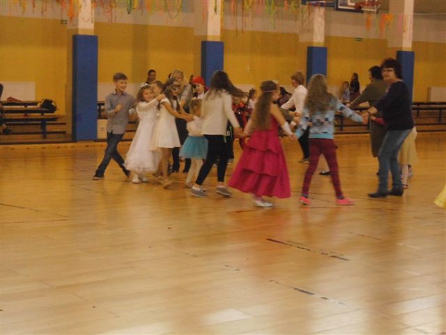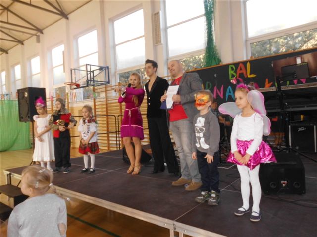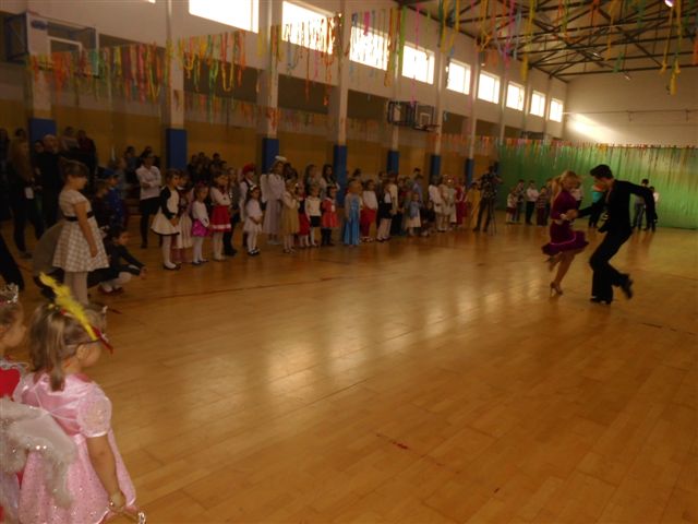 Jedną z atrakcji imprezy był pokaz tańca towarzyskiego wykonany przez wicemistrzów Polski: Karolinę Wszałowską i Kamila Górlickiego. Para taneczna również pokazywała maluchom odpowiednie kroki do cza-czy i zaprosiła do wspólnej zabawy. Dzieci chętnie uczestniczyły w konkursach: tańca, na strój karnawałowy, króla i królową balu, przygotowanych przez panie bibliotekarki Annę Erbel i Elżbietę Dzik. Laureatom konkursów zostały wręczone nagrody.