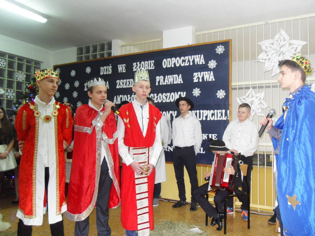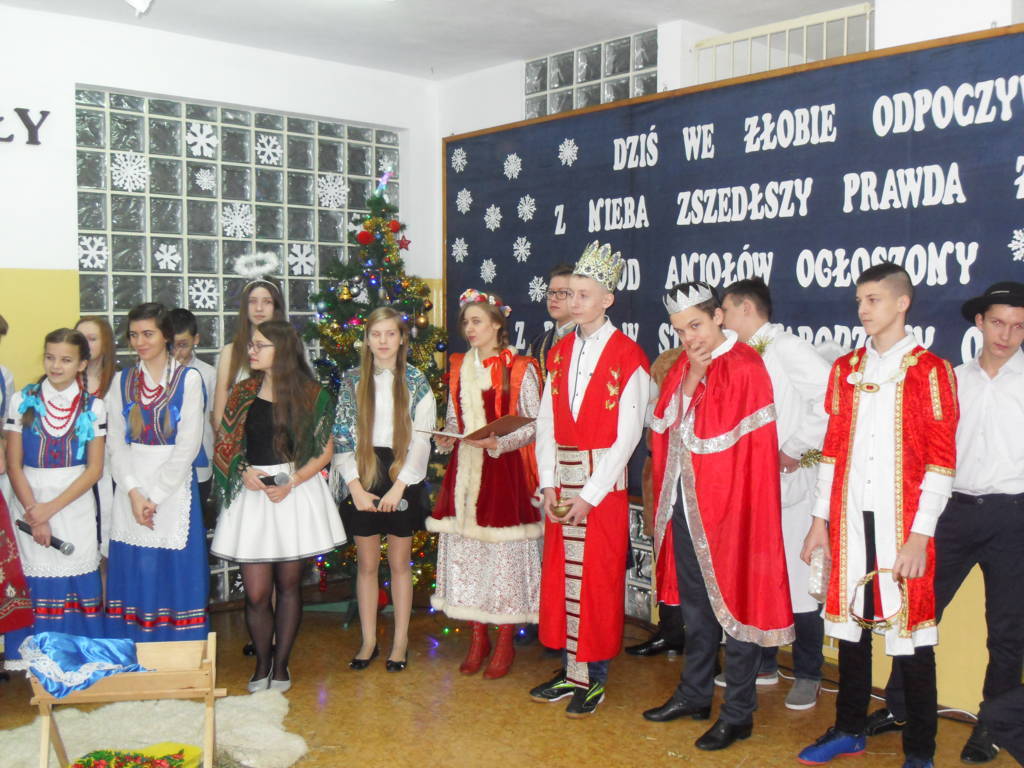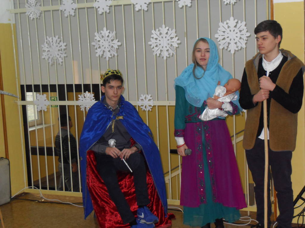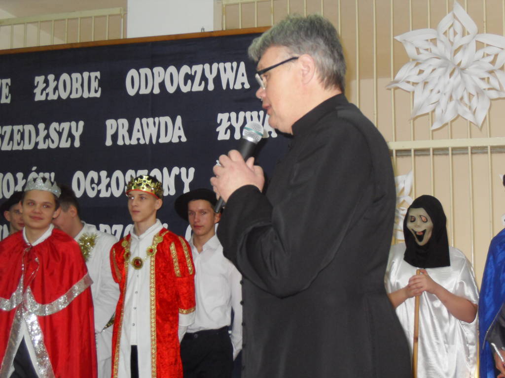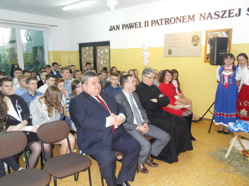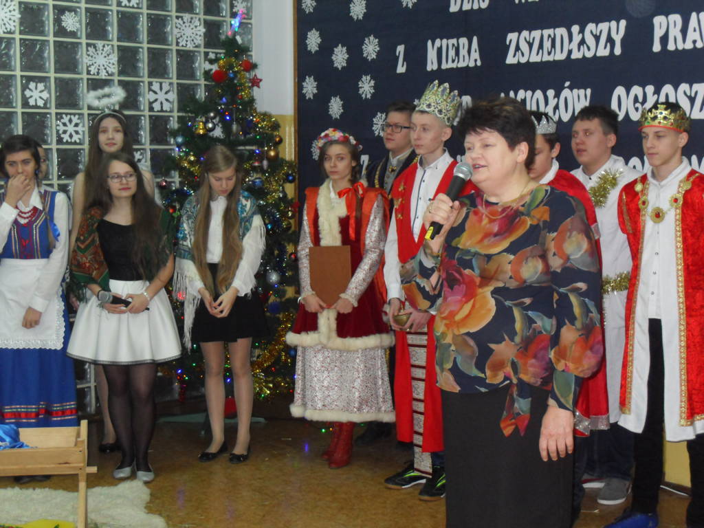 Dnia 22.12.2016 r. w Publicznym Gimnazjum im. Jana Pawła II w Mirowie uczniowie klasy II b zaprezentowali obszerne fragmenty utworu Lucjana Rydla „Betlejem polskie”. Występ oglądali zaproszeni goście : Wójt Gminy Mirów - pan Artur Siwiorek, Przewodnicząca Rady Powiatu - pani Anita Gołosz, Kierownik Referatu Oświaty , Kultury i Sportu –pan Piotr Kowalik oraz proboszcz parafii Mirów – ksiądz Grzegorz Stępień. Wszystkich zgromadzonych na jasełkach powitała pani Dyrektor - Marzanna Błach, przedstawiając krótki rys historyczny prezentowanego spektaklu oraz biografię autora. Występ uświetniony został pięknym wykonaniem kolęd oraz tańcami. Młodzi aktorzy swoją piękną, dojrzałą grą wprowadzili wszystkich oglądających w świąteczny nastrój. Następnie z życzeniami bożonarodzeniowymi wystąpili :pan Wójt Gminy Mirów Artur Siwiorek oraz proboszcz tutejszej parafii ksiądz Grzegorz Stępień. Prelegenci nie szczędzili słów pochwały dla występujących. Opiekunami występu artystycznego byli : pani Bożena Pałka, pani Renata Wieczorek oraz pan Piotr Kowalik.