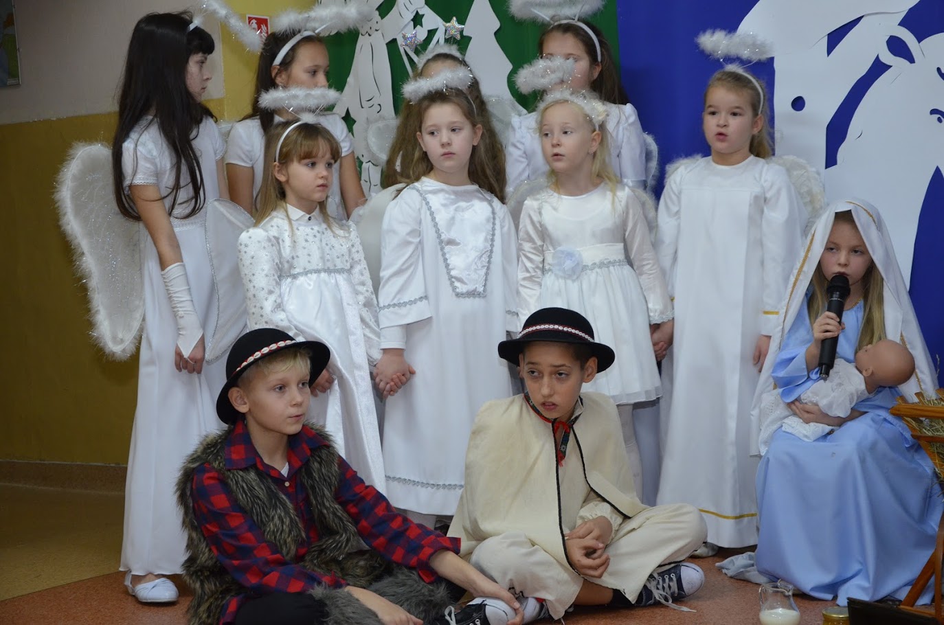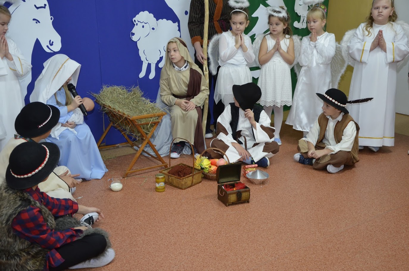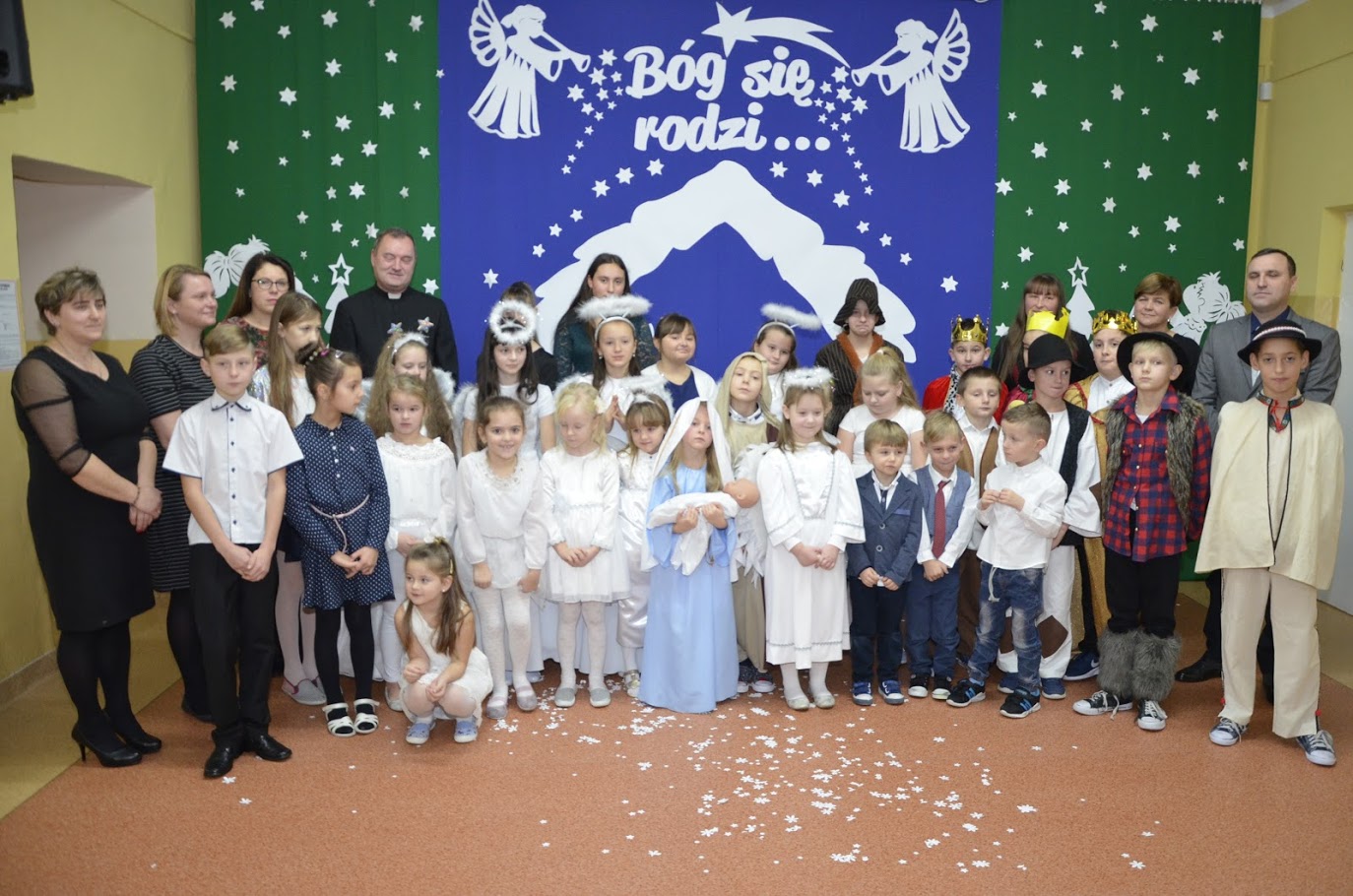 Od razu w oczy rzuciła się zgromadzonym przepiękna sceneria. Na pierwszym planie widniała szopka ze żłobkiem, a w dalszej części widać było przepiękny zimowo - świąteczny krajobraz. Wszyscy patrzyli na scenerie z zachwytem. Jasełka w wykonaniu dzieci wprowadziły wszystkich w świąteczny nastrój, a uczniowie swym pięknym występem podbili serca publiczności. Niejednej osobie zakręciła się łza w oku... Piękny śpiew kolęd i piosenek świątecznych uświadomił wszystkim i przypomniał o tym, że Święta Bożego Narodzenia są już bardzo blisko. Mogliśmy zobaczyć także piękny taniec z szarfami do piosenki ,,Alleluja” L. Kohena, którą spektakularnie wykonała E. Kamienik z VIII klasy. Kiedy część artystyczna dobiegła końca, występujący aktorzy otrzymali gromkie brawa. Występ był niezwykłym przeżyciem zarówno dla aktorów, nauczycieli jak i zaproszonych gości. Po zakończonym spektaklu głos zabrała dyrektor szkoły p. Pelagia Olszewska, która podziękowała uczniom za wspaniałe przedstawienie oraz złożyła wszystkim serdeczne życzenia świąteczne i noworoczne. Do życzeń dołączył się także ks. Krzysztof Świątek, proboszcz parafii Gąsawy Rządowe i p. Piotr Kowalik – kierownik Referatu Oświaty Gminy Mirów. Po Jasełkach uczniowie wraz z wychowawcami rozeszli się do sal, w których odbyły się klasowe spotkania wigilijne.