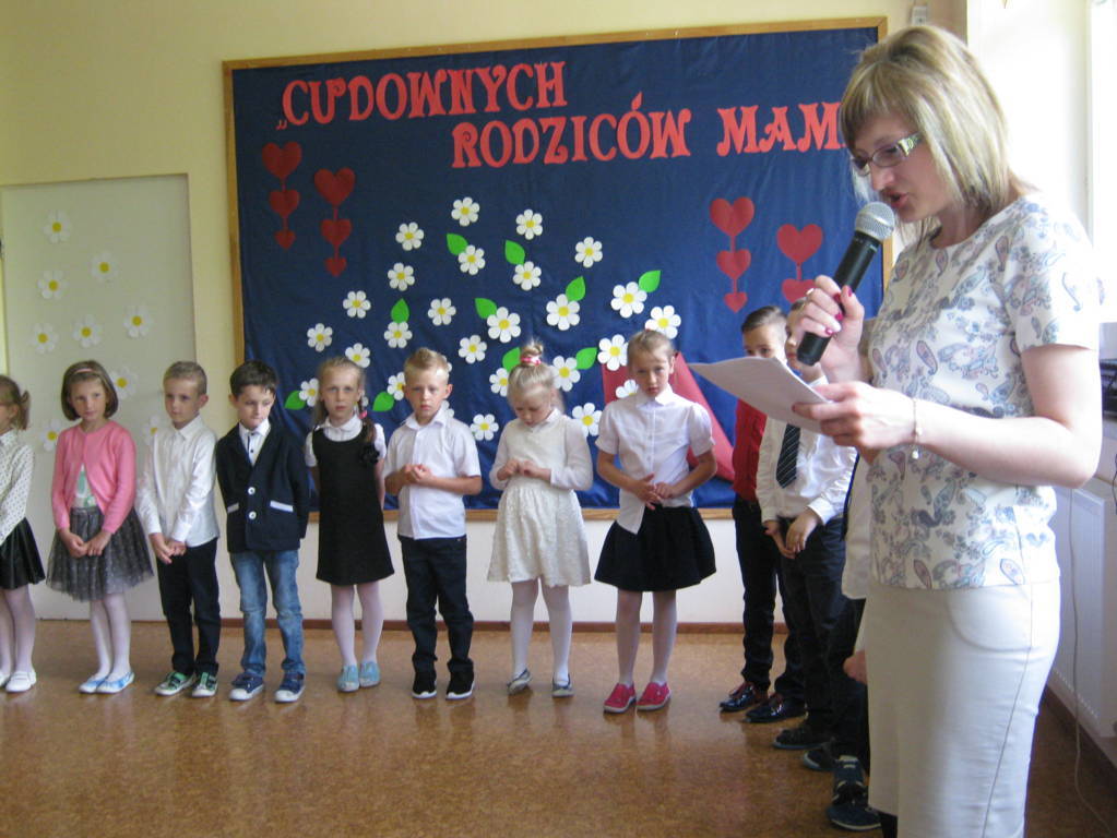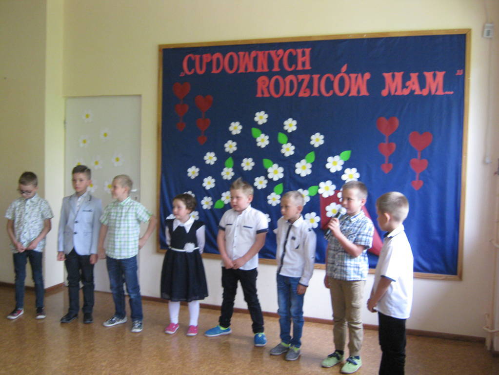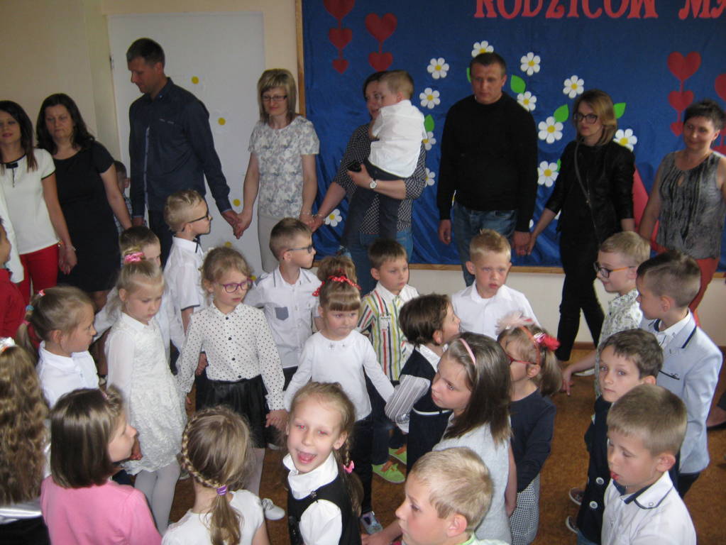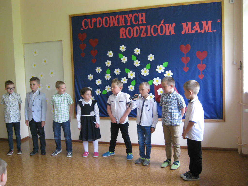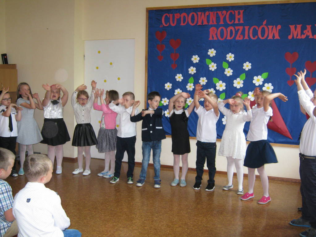 26 maja 2017r. rodzice wraz z dziećmi klas „0”, I i II świętowali Dzień Matki i Dzień Ojca. Dzieci miały okazję zaprezentować swoje talenty, a także podziękować rodzicom za ich miłość. Wspólnie z wychowawczyniami przygotowały dla rodziców upominki, które zostały wręczone mamom i tatom po przedstawieniu. Wszyscy goście z zaciekawieniem i skupioną uwagą słuchali życzeń, wierszy, piosenek. Na ich twarzach zagościły uśmiech, a także wzruszenie i duma ze swoich pociech. Po części artystycznej i wspólnym tańcu w rytm piosenki „Cudownych rodziców mam” wszyscy udali się na słodki poczęstunek.