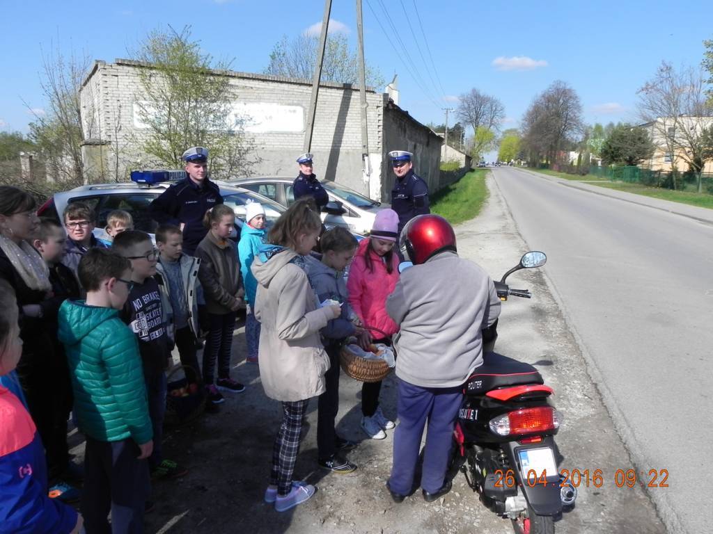 W ramach działań profilaktycznych mających na celu poprawę bezpieczeństwa na drogach w dniu 26 maja 2016 r. funkcjonariusze Ruchu Drogowego Komendy Powiatowej Policji w Szydłowcu wraz z uczniami PSP w Mirowie, przeprowadzili prewencyjną akcję „Cytrynka zamiast mandatu” wśród kierowców z terenu naszego powiatu. Uczniowie rozmawiali z kierowcami i wręczali ulotki zawierające 10 wskazówek dla bezpiecznego kierowcy. Tego dnia kierowcy zatrzymani przez nietypowy patrol nie dostawali mandatów. Pomimo tego nie wszyscy mogli odjechać z uśmiechem na twarzy. Ci, którzy złamali przepisy ruchu drogowego za karę musieli zjeść plaster cytryny. Natomiast wzorowi kierowcy w nagrodę otrzymywali słodkie jabłuszko.Dzięki takiej akcji dzieci mogły poznać pracę policjanta. Padało mnóstwo pytań do naszych stróżów prawa dotyczących codziennej służby. Wiele dzieci już zapowiedziało, że w przyszłości chce zostać policjantami. Miejmy nadzieję, że kwietniowe wspomnienie o kwaśnej cytrynce i policyjno-uczniowski patrol, na długo zapadnie w pamięci „ukaranych” kierowców. Pomysłodawcą, a zarazem inicjatorem przeprowadzonych działań była p. Agata Kuźdub, która wcieliła w życie projekt, mający na celu promowanie problematyki bezpieczeństwa dzieci w szkole i poza nią.