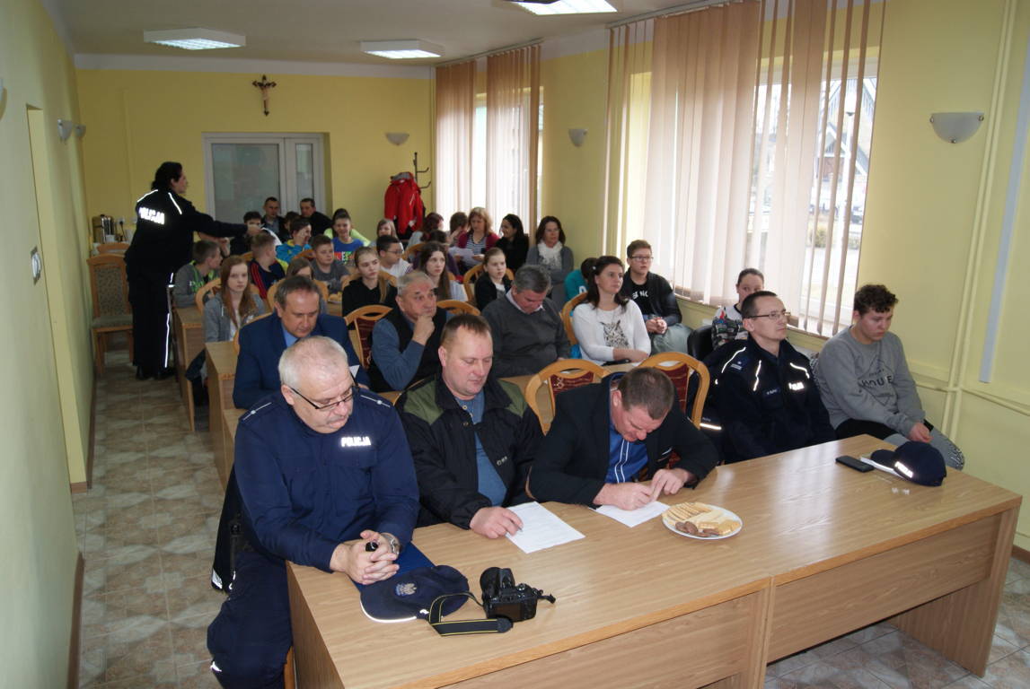 Omawiano również zagadnienia związane z przestępstwami, których ofiarami są osoby starsze, a dokonywane są metodą „na wnuczka” czy „na policjanta”. Poruszono również temat dopalaczy ujętych w programie „STOP dopalaczom”. Następnie naczelnik odpowiadał na pytania młodzieży.