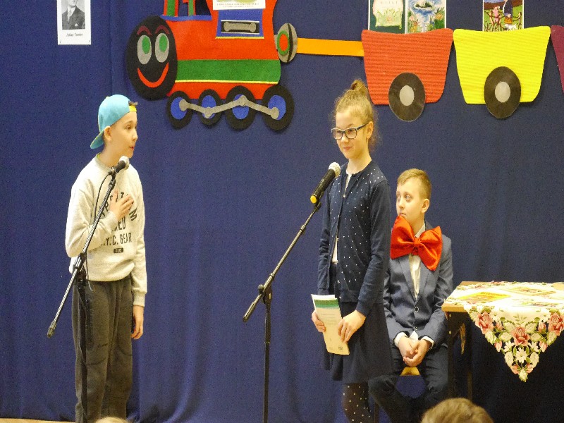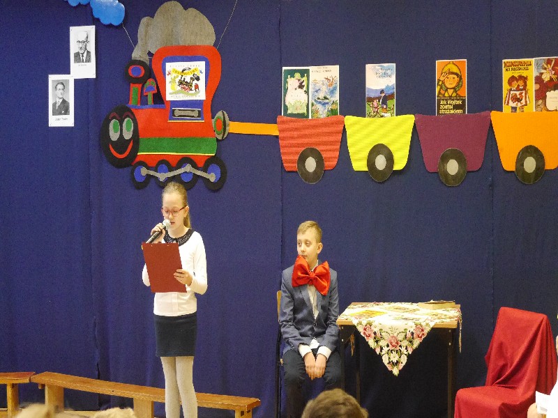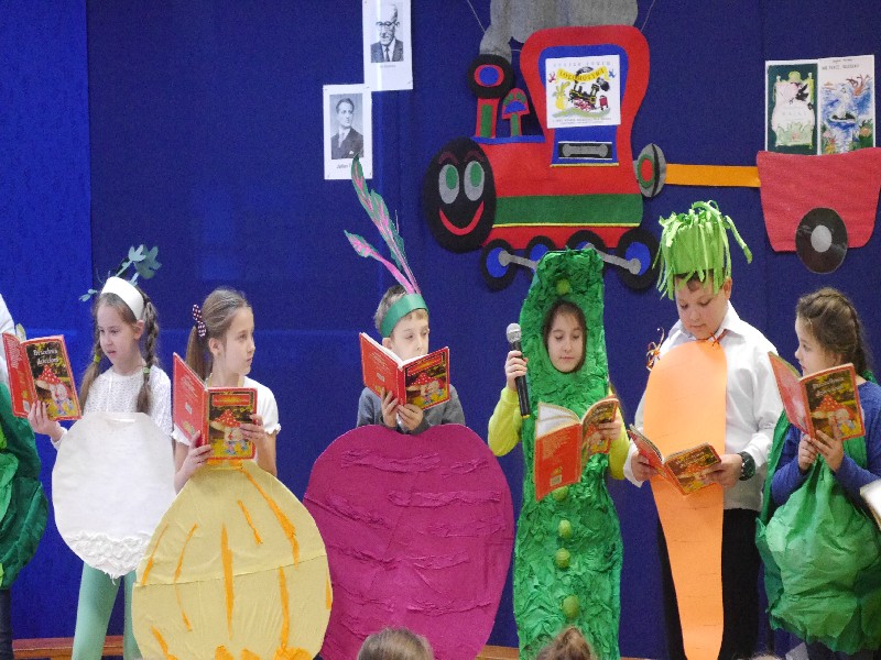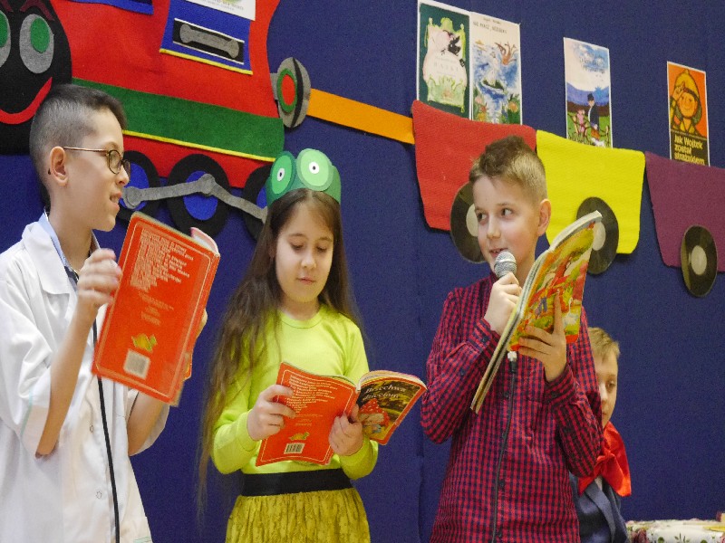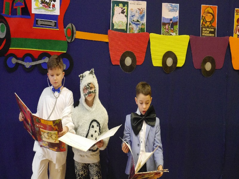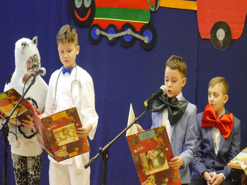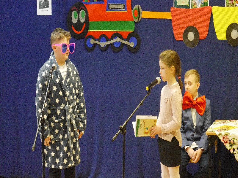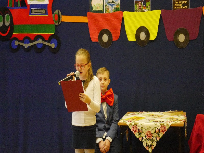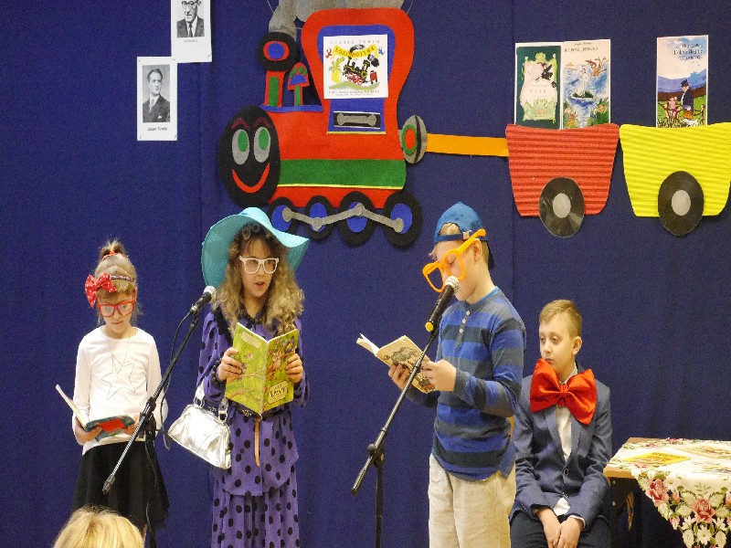 Uczniowie klas III- IV prezentowali sylwetki i utwory ulubionych autorów. Przekonywali zebranych, że książki są jak wierni przyjaciele: nie narzucają się, lecz w każdej chwili gotowe są służyć radą, podzielić się wiadomościami lub zaprosić na miłą pogawędkę . „Takie święta jak to, są doskonałą okazją , aby rozbudzać w uczniach miłość do książki. Czytajmy więc dla przyjemności, dla zdrowia… i dla pisarzy, którzy tworzą z myślą o czytelnikach”- zgodnie stwierdziły organizatorki przedsięwzięcia: Elżbieta Kuźdub, Agnieszka Kawalec , Joanna Minda, Sylwia Lech. Życzymy pisarzom inspiracji, natchnienia , spokoju w tworzeniu, przychylności wydawców i recenzentów, zwłaszcza wiernych czytelników, bo żadne nagrody i laury nie zastąpią wdzięczności i miejsca w sercach odbiorców literatury. Wszystkiego najlepszego!