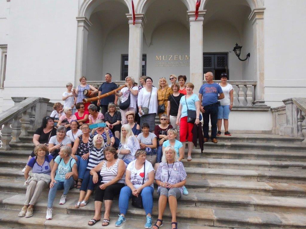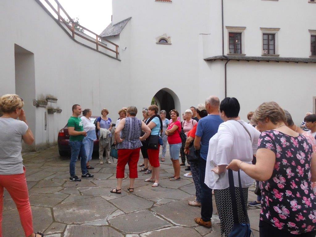 Już w dzień przyjazdu, wybrali się na zwiedzanie Szydłowca. Opiekunami grupy były panie Beata Seweryn i Anna Erbel z GBP w Mirowie. Przewodnikiem po zabytkach Szydłowca był pan Kamil Szpunar, który przybliżył historię miasta. Grupa zwiedziła Muzeum Instrumentów Ludowych, Ratusz z tarasem widokowym i Kościół św. Zygmunta. Wieczorem uczestnicy wycieczki bawili się przy ognisku w Zbijowie Dużym, gdzie gościło ich Koło Gospodyń Wiejskich, a rytm nadawał zespół Fair-Play.
