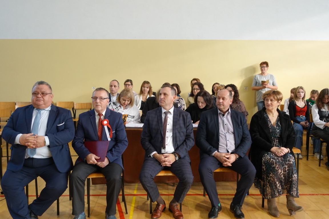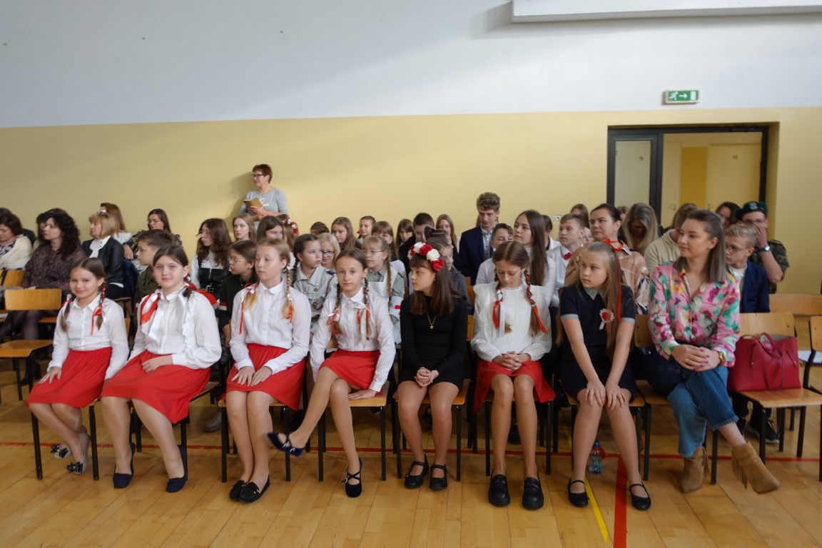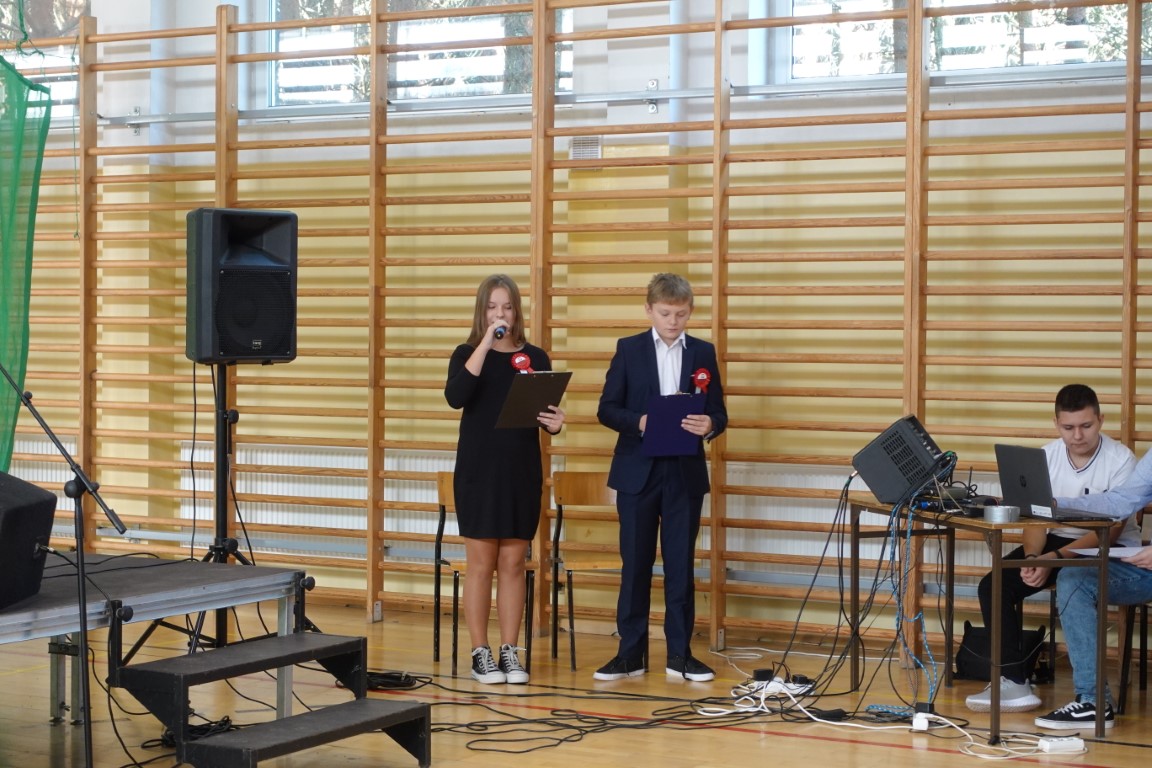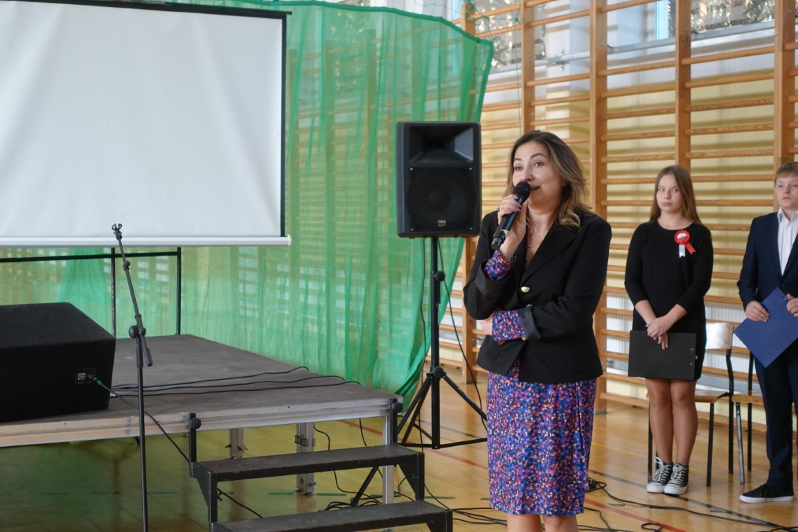 Uroczystość rozpoczęła się od wprowadzenia sztandaru szkoły i wspólnego odśpiewania hymnu państwowego.