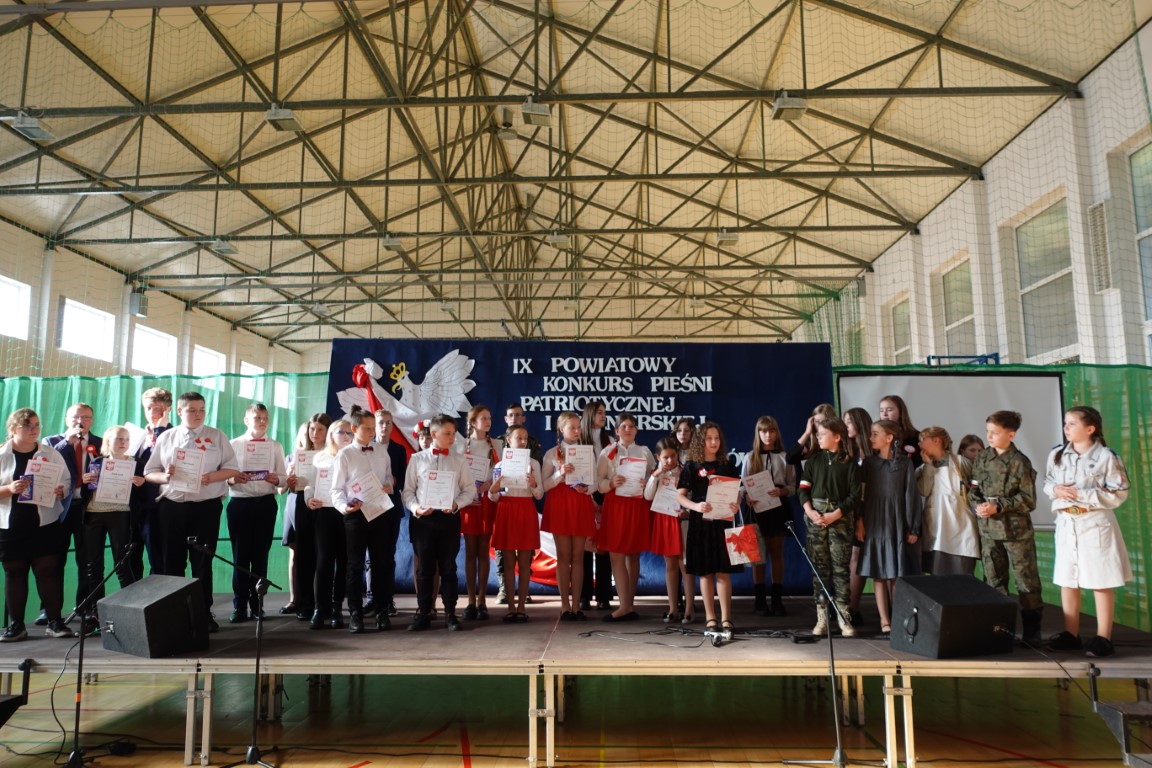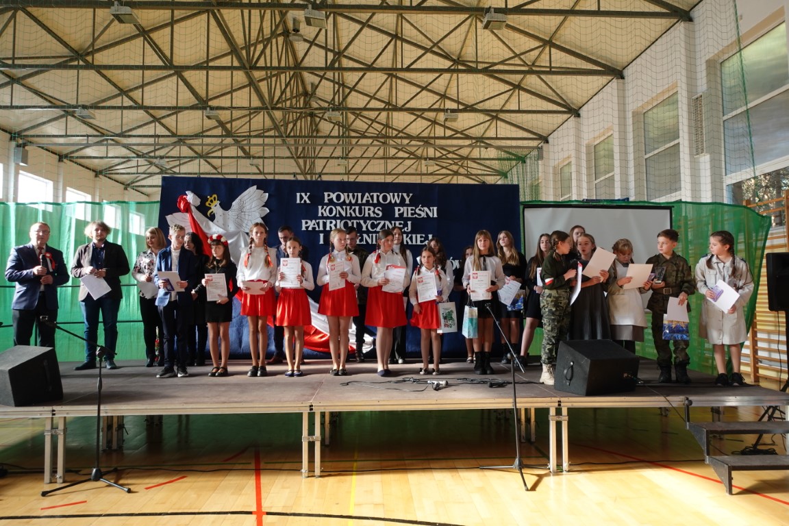 W oczekiwaniu na wyniki konkursu był czas na poczęstunek przygotowany przez rodziców uczniów naszej szkoły, za co składamy im ogromne podziękowania oraz już tradycyjnie wspólnie śpiewaliśmy pieśni patriotyczne. Piękny śpiew wypełniał całą salę. Znów okazało się, że wspólne pasje mogą łączyć pokolenia i nieść radość oraz wzruszenie dla słuchaczy. Pieśni i piosenki przypominały o walczących o niepodległość, stały się hołdem dla tych, którzy zginęli w obronie ojczyzny.