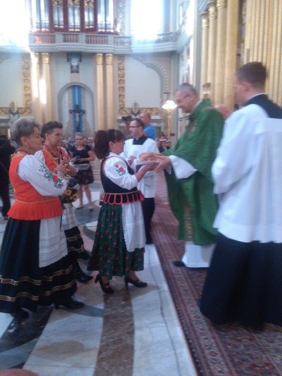 W niedzielę wszystkie zespoły wyruszyły w uroczystym korowodzie z darami do Bazyliki w Licheniu, aby uczestniczyć we Mszy Świętej. Dzięki tym wyjazdom, poznajemy kulturę innych regionów, czerpiemy inspirację do działań oraz integrujemy się ze środowiskiem.