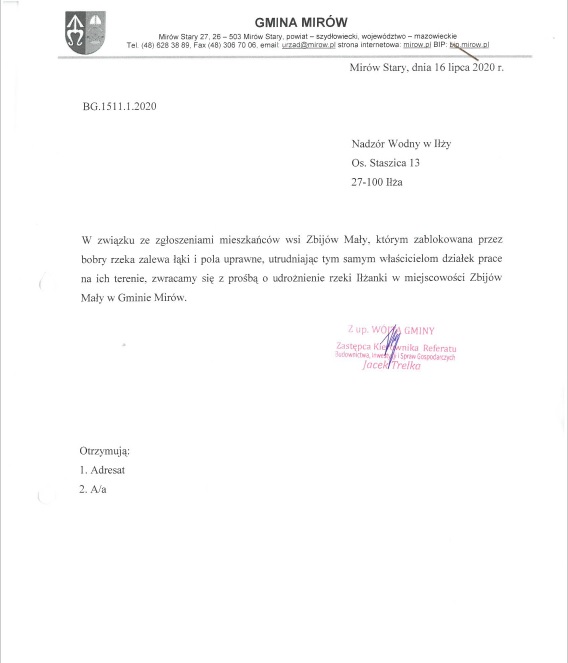 Na przestrzeni kilku miesięcy Urząd skierował w tej sprawie dwa pisma do Wód Polskich. Ostatecznie w dniu 24.08.2020 r. dostaliśmy pisemne zapewnienie, że w tym roku dojdzie do prac konserwacyjnych.