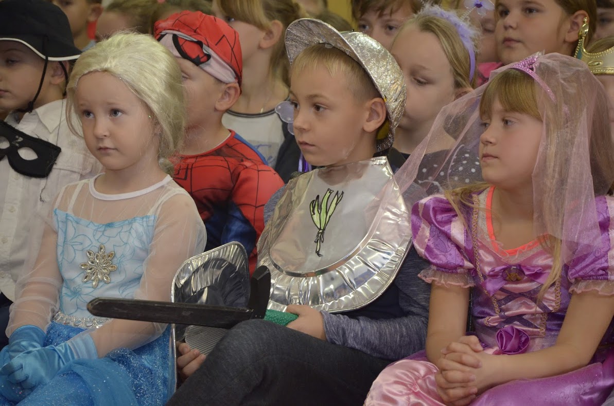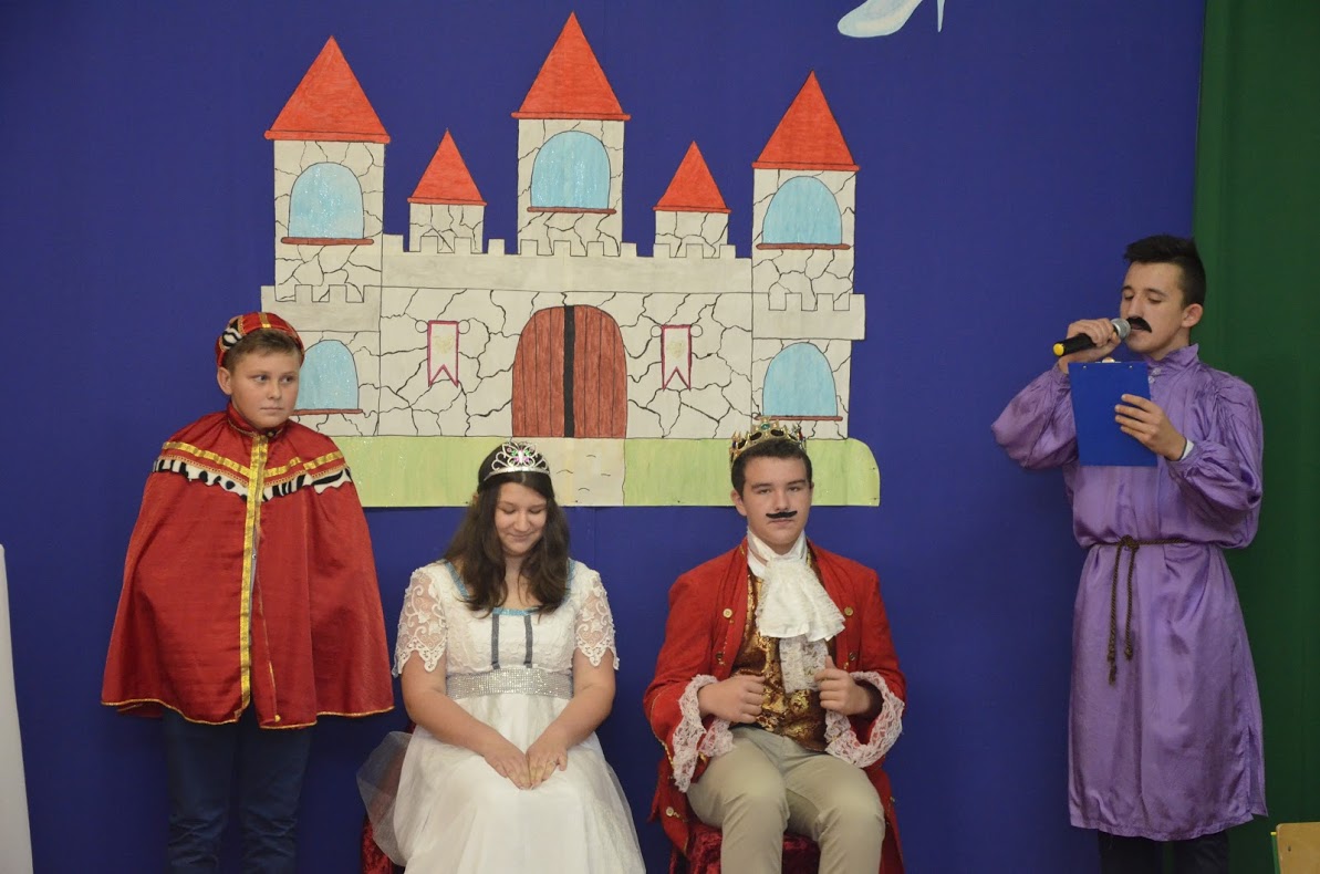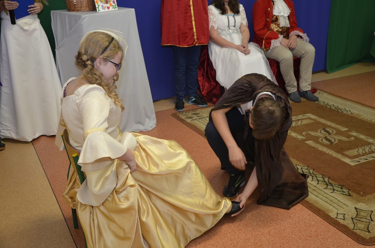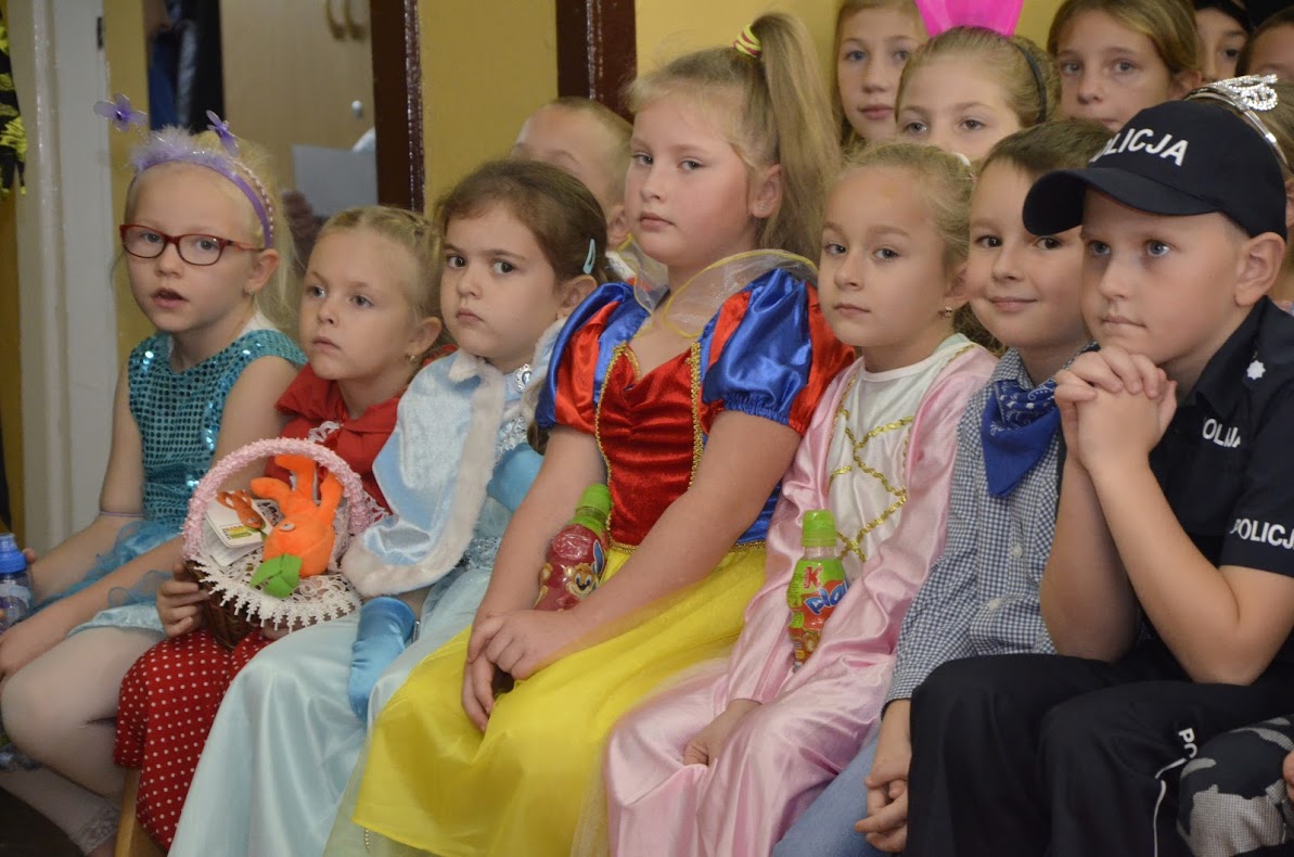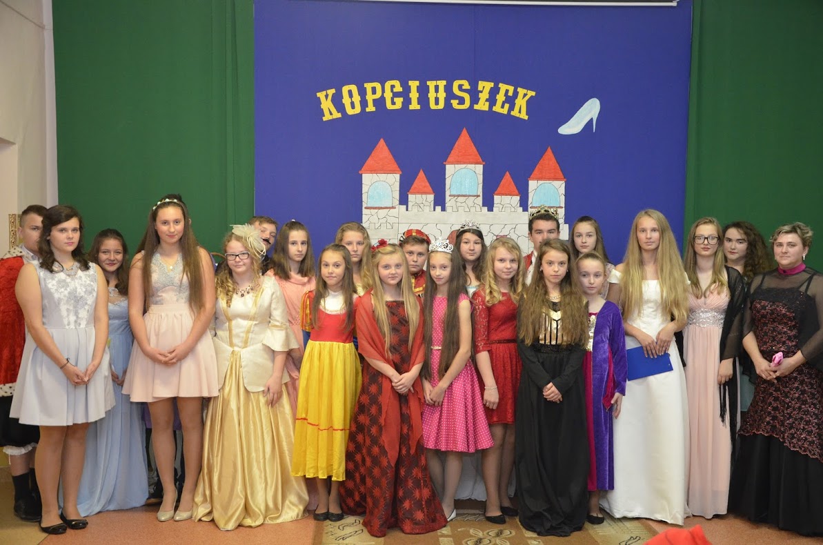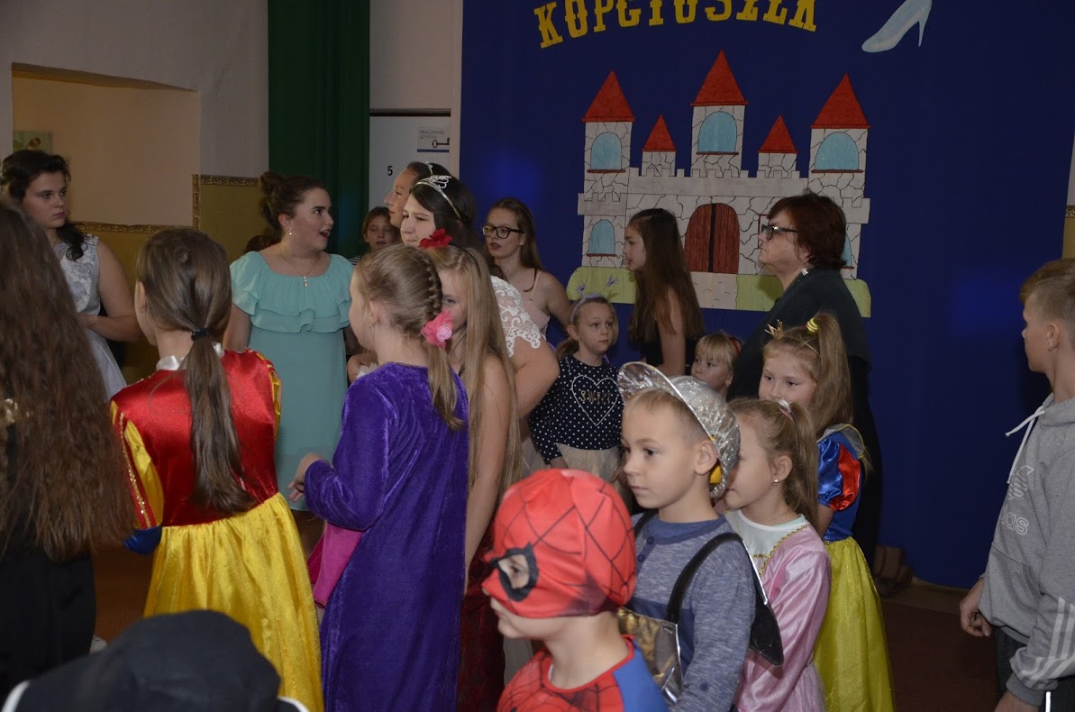 Pojawiły się Elza, Roszpunka, Różyczka, Czerwony Kapturek, Kopciuszek, Królewna Śnieżka, król i królowa, dobre wróżki, księżniczki, królewicz, rycerz, policjant i damy dworu. Uczniowie klasy VII i VI przygotowali dla swoich młodszych kolegów i koleżanek inscenizację bajki ,,Kopciuszek”. Po przedstawieniu wszyscy uczestnicy zabawy zostali poczęstowani przez przewodniczącą Samorządu Uczniowskiego słodkościami, a następnie bawili się na balu z okazji zaślubin królewicza z Kopciuszkiem. Cały dzień upłynął w bardzo sympatycznej i miłej atmosferze. Wszyscy przypomnieli sobie swoich ulubieńców z bajek, choć może troszeczkę już zapomnianych. Tego dnia, my dorośli także z radością i sentymentem powróciliśmy pamięcią do swojego dzieciństwa. Z niecierpliwością czekamy na kolejne „bajkowe” spotkanie za rok.