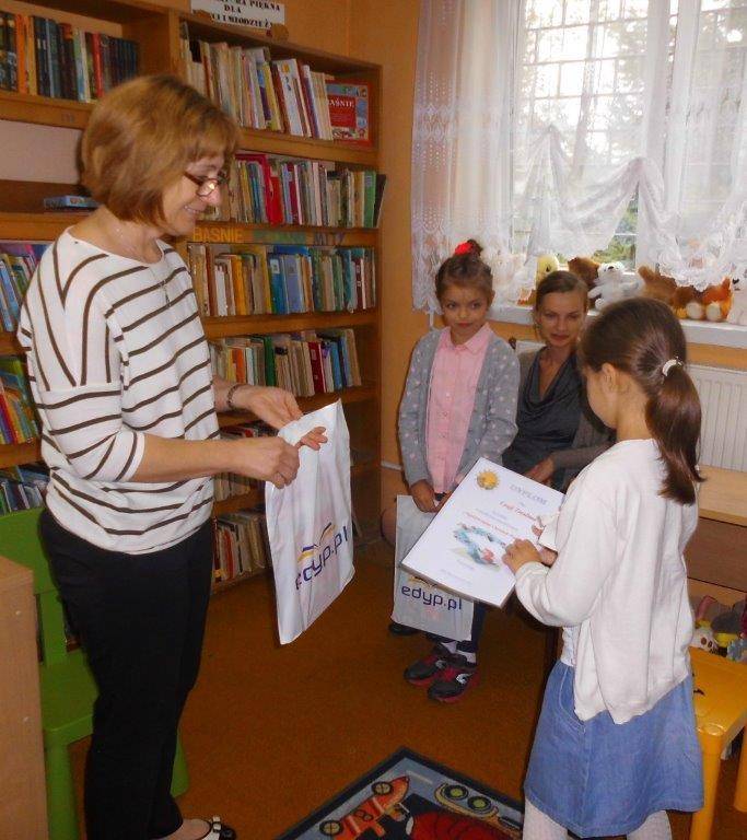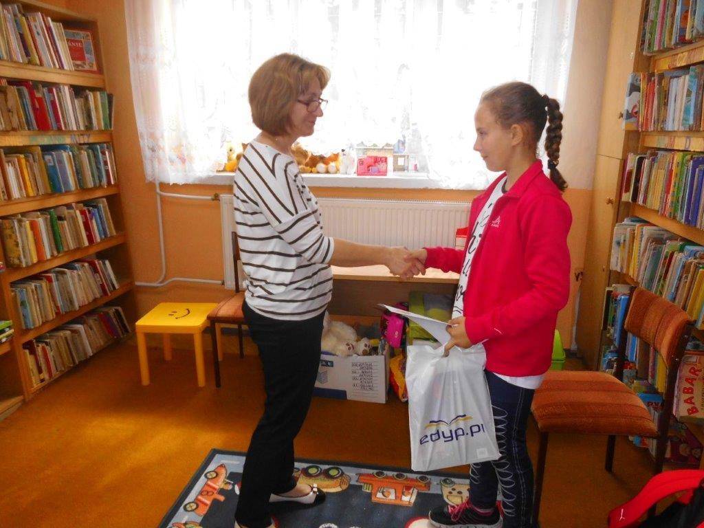 Dnia 05 września nastąpiło wręczenie nagród. Najaktywniejszymi czytelnikami okazali się: Dubczyk Roksana, Drabik Natalia, Nowak Oliwia, Nowak Karolina, Tarabasz Łucja, Guza Aleksandra.