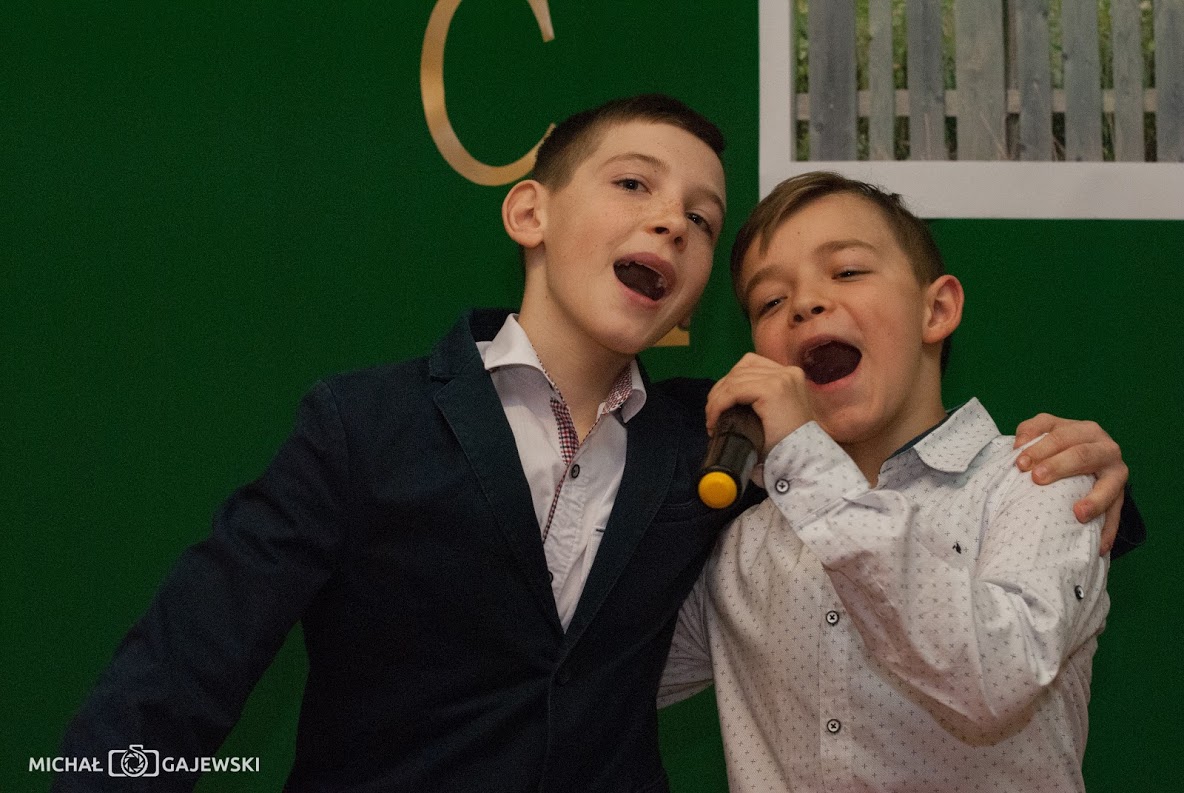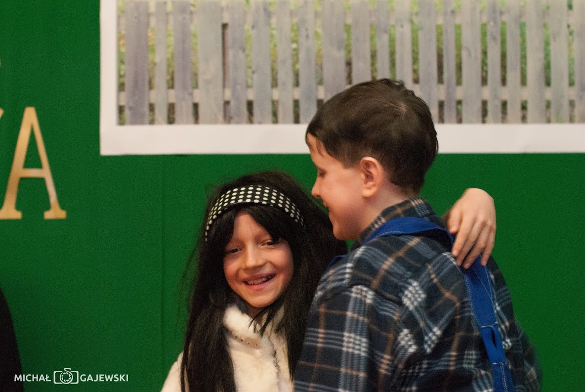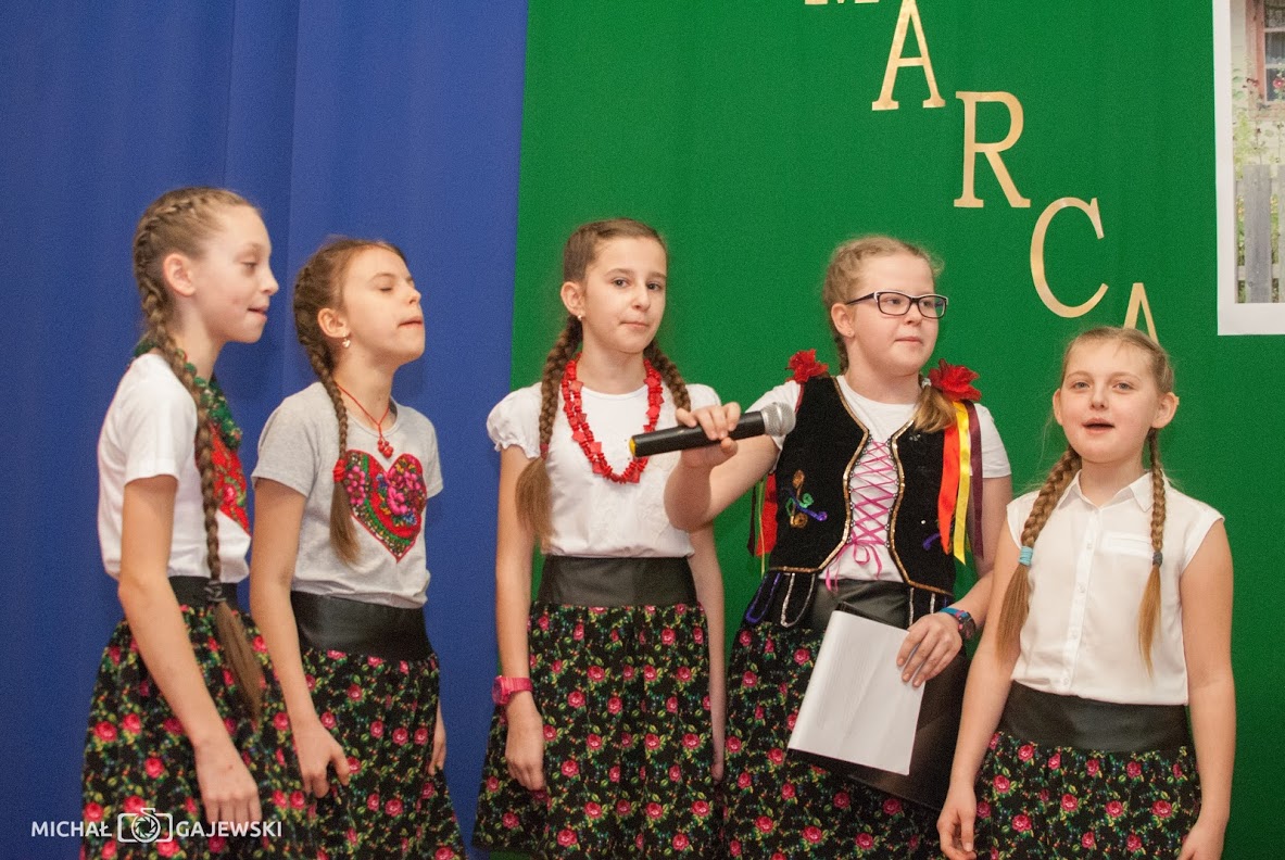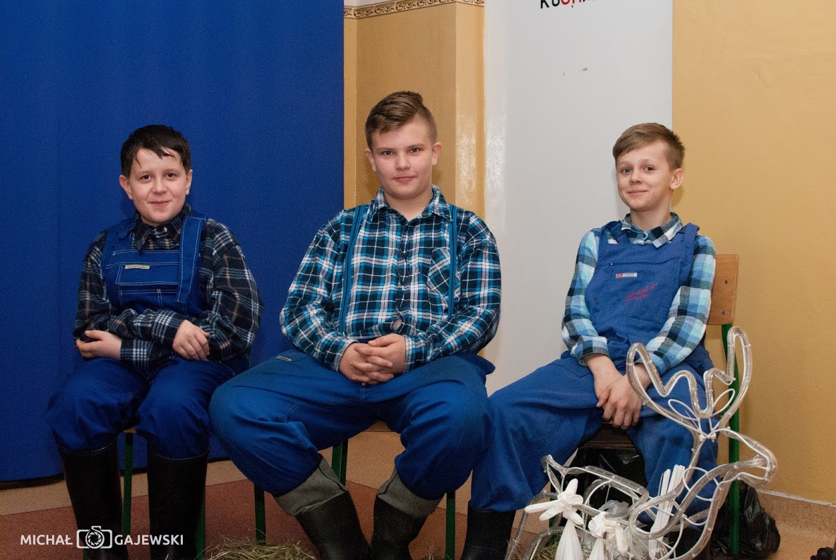 Jak więc świętować Dzień Kobiet we współczesnej Polsce? Najlepszym rozwiązaniem wydaje się być dostrzeżenie tego dnia wkładu pań w życie społeczne, rodzinne i polityczne naszego kraju; dowartościowanie roli matki, żony i koleżanki z pracy, podziękowanie za ich codzienną empatyczną, pełną troski i miłości obecność; sprawienie, by na zabieganej twarzy współczesnej kobiety godzącej opiekę nad ogniskiem domowym z obowiązkami zawodowymi pojawił się uśmiech. Ten ostatni cel wyznaczyli sobie autorzy tegorocznego występu z okazji Dnia Kobiet, Karol Kaczmarzyk i Michał Gajewski. Z kreatywnym i pełnym zaangażowania udziałem klasy V zaprezentowali program artystyczny pt. „Rolnik szuka żony” nawiązujący do popularnego programu telewizyjnego. Utarła się tradycja, że 8 marca w role dziewcząt wcielają się chłopcy, tak więc i tym razem role kandydatek na żony rolników odegrali chłopcy. Mieli przed sobą nie lada wyzwania: wykonanie makijażu, dojenie krowy czy skrobanie ziemniaków, z których wywiązali się wzorowo, ku uciesze zgromadzonej widowni. Część chłopców wcieliła się w role zdesperowanych starokawalerstwem rolników szukających szczęścia w miłości zaś dziewczęta zajęły się oprawą muzyczną wstępu. Na zakończenie akademii popłynęła moc gorących życzeń dla wszystkich PAŃ i DZIEWCZĄT. I pomimo, iż pogoda za oknem nie była przyjemna, to w szkolnych salach panował ciepły, pogodny i wesoły nastrój.