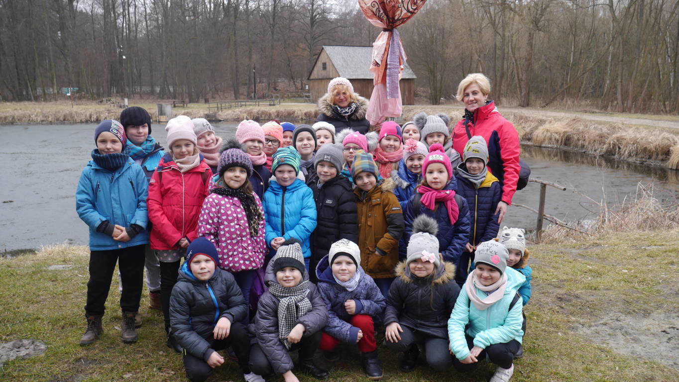 Jej celem było zapoznanie z dziedzictwem i kulturą ludową ziemi radomskiej, a w szczególności poznanie zwyczajów ludowych, obrzędów związanych z pożegnaniem zimy i powitaniem wiosny.Do takich obrzędów należało topienie słomianej kukły – Marzanny. Ów rytuał połączony był z obrzędem Nowego Lata-Gaika Zielonego, czyli gałęzi wiecznie zielonej- symbolu życia, którą wprowadzano do wsi jako symbol wiosny. Podczas lekcji muzealnej pierwszoklasiści poznali zwyczaje ludowe związane z okresem wiosennym. Samodzielnie wykonali słomiane Marzanny, które sprawiły im wiele radości. Wspólnie przygotowali Gaik, ozdobiły go kolorowymi wstążeczkami i bibułkami . Zgodnie z tradycją wykonaną wspólnie Marzannę wrzuciły do stawu, by pożegnać zimę. Następnie zwiedzali skansen, gdzie na obszarze 32 ha zgromadzono ponad 60 obiektów architektury ludowej, głównie drewnianej. Z ogromnym zainteresowaniem oglądali nie tylko z zewnątrz ale i w środku obiekty wchodzące w skład utworzonego zespołu wiejskiego. Z ciekawością podziwiali zagrody wiejskie , stare chaty i ich wyposażenie. Dużą atrakcją było zwiedzanie młyna. Podczas wędrówki po skansenie towarzyszyło im fenomenalne uczucie. Bardzo ciekawe opowieści przewodnika o mieleniu zbóż, sposobach pieczenia chleba, wyrabianiu miodu przez pszczelarzy , w połączeniu z niezwykłymi zbiorami muzealnymi zachwyciły wszystkich i pozwoliły im odbyć „niezwykłą podróż w czasie”. Wszystkich zaskoczył i bardzo ucieszył widok zwierząt, które spotkali w zagrodach chłopskich. Mieliśmy okazję zobaczyć z bliska, a nawet dotknąć owieczkę, gęsi, indyki i inne ptaki domowe hodowane w wiejskich gospodarstwach. Wycieczka bardzo nam się podobała, przyniosła wiele niezapomnianych wrażeń. Z uśmiechem na twarzy i radością będziemy wspominać ten wspólny wyjazd integracyjny podczas którego udało nam się „odbyć tę niezwykłą podróż do przeszłości”.