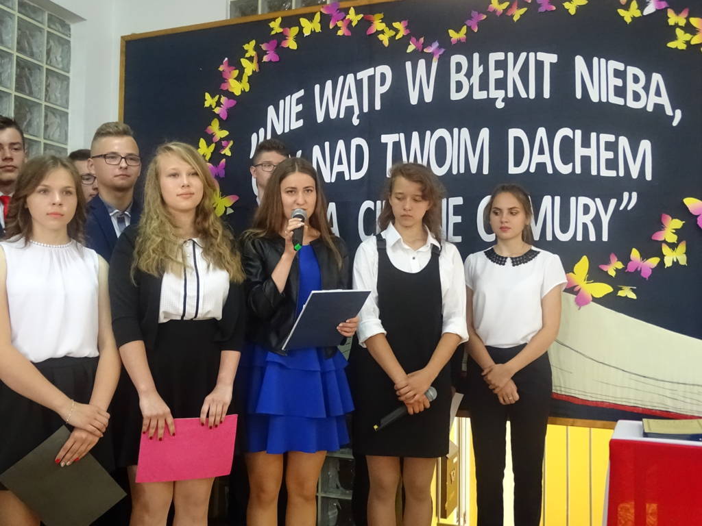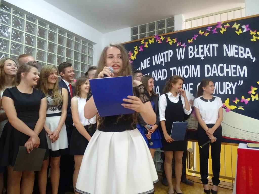 Słowa te były mottem uroczystości zakończenia roku szkolnego 2016/2017 w Publicznym Gimnazjum im. Jana Pawła II w Mirowie. Uczniowie klas trzecich zakończyli w tym dniu ważny etap swojego życia. Serca tegorocznych absolwentów przepełniała nie tylko radość z otrzymania świadectwa ukończenia gimnazjum, ale także smutek z powodu rozstania z koleżankami i kolegami. Ich pożegnalny występ artystyczny przygotowany pod kierunkiem wychowawczyń: p. Krystyny Książek i p. Marty Piętek, dostarczył wielu wzruszeń, a oglądany film ze wspólnie spędzonych lat w szkole wycisnął niejedną łzę z oka.
