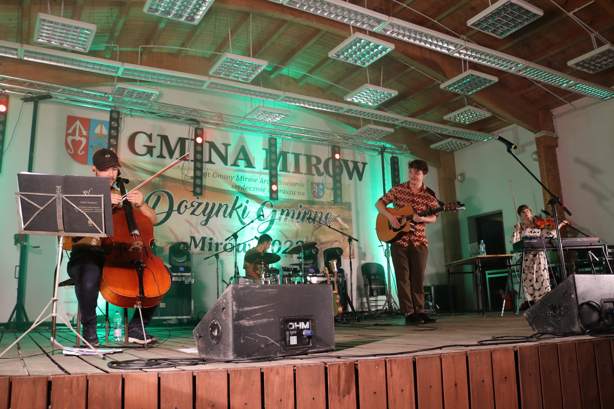 Po części obrzędowej rozpoczął się program artystyczny. Na scenie pojawiło się wielu znanych artystów, ale można było zobaczyć także występy lokalnych wykonawców. Jako pierwsze na scenie wystąpiły niepowtarzalne i pełne energii Radosne Nutki. Dużym zaskoczeniem dla widowni był występ „Teatru do góry nogami”, który rozpoczął w tym roku swoją działalność. Formacja działa przy kościele parafialnym w Mirowie i właśnie podczas dożynek miała swój sceniczny debiut. Po przedstawieniu teatralnym na scenie pojawiła się kapela ze Skarżyska Taka Paka wykonująca muzykę podwórkową. Kolejnymi artystami, którzy pojawili się na scenie byli członkowie Kabaretu Kałamasz znani głównie ze znakomitych ról w serialu Ranczo. Po kabarecie wystąpił zespół DEJW a zaraz po nim Wojtek Szumański z zespołem. Artyści rozgrzali publiczność przed występem gwiazdy wieczoru – mowa tu oczywiście o zespole Defis. Imprezę zakończył występ DJ Deebart, który przygotował dla widowni porządną dawkę muzyki tanecznej. Impreza trwałą do północy. Podczas dożynek odbywały się również liczne konkursy, w tym na „Najsmaczniejszą potrawę regionalną”, na „Najładniejszy wieniec dożynkowy”, oraz na „Najdorodniejsze płody i produkty rolne”. Wyróżniono również zwycięzców konkursu na „Najpiękniejszy ogród w gminie Mirów”. We wszystkich konkurencjach wręczono atrakcyjne nagrody rzeczowe oraz finansowe.