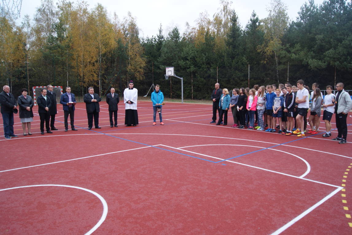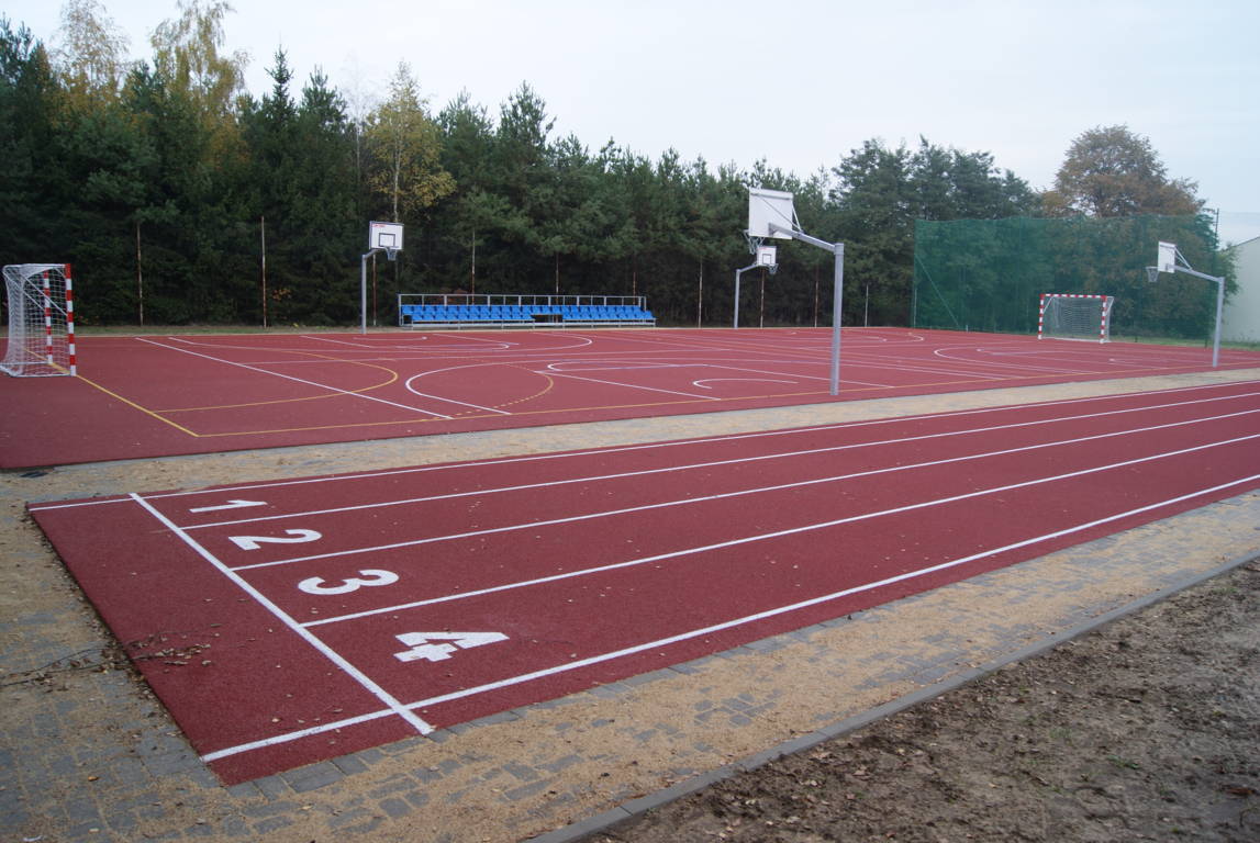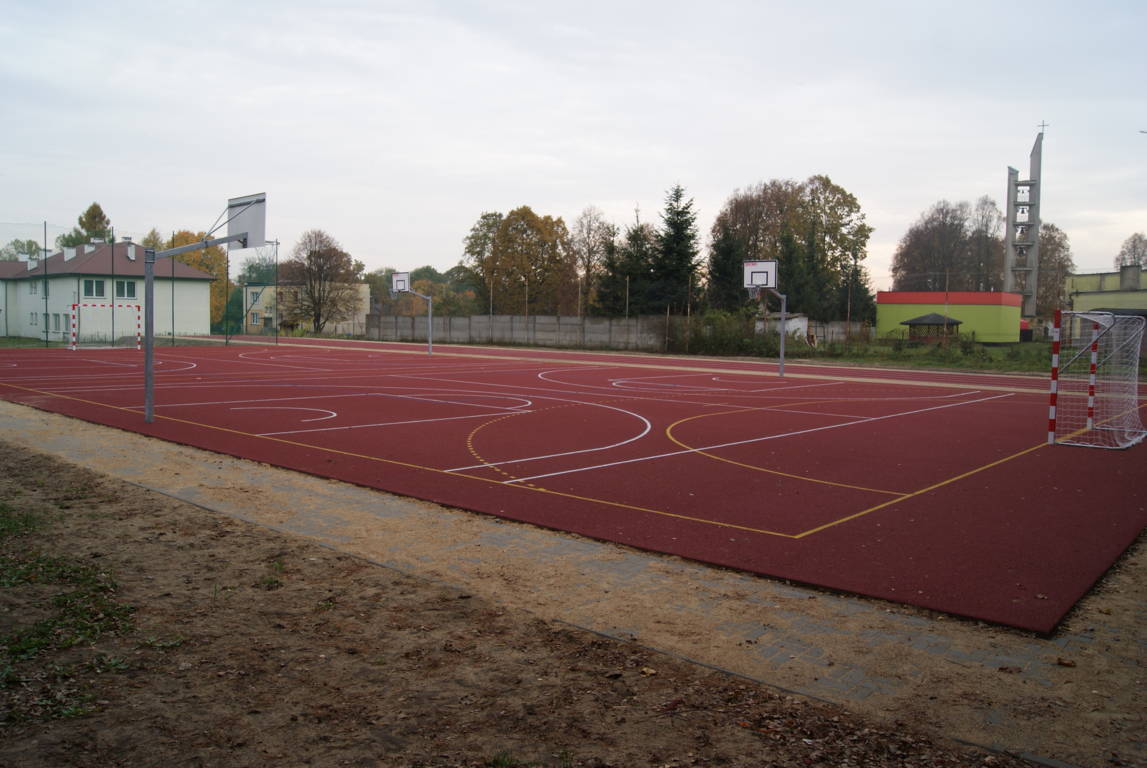 Wykonawcą robót było Przedsiębiorstwo Produkcyjno-Usługowo-Handlowe „AGRO-BUD” Jan Szymański z siedzibą przy ul. 6-go Września 91A, 27-200 Starachowice Wartość robót budowlanych wyniosła 394.849,00 zł brutto. Boisko wielofunkcyjne oraz bieżnia posiadają nawierzchnię poliuretanową, opaski wokół boiska i bieżni z kostki brukowej, trybunę na 45 osób. Boisko umożliwia grę w piłkę ręczną, piłkę siatkową i koszykówkę.