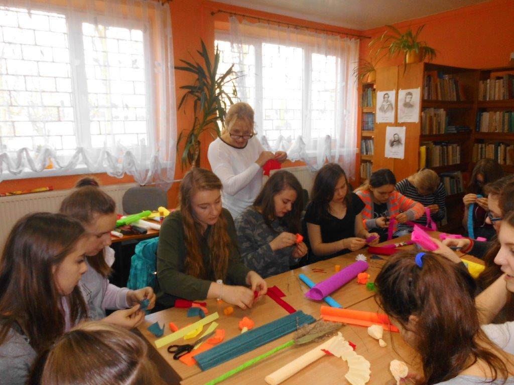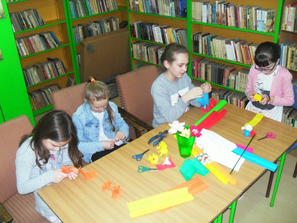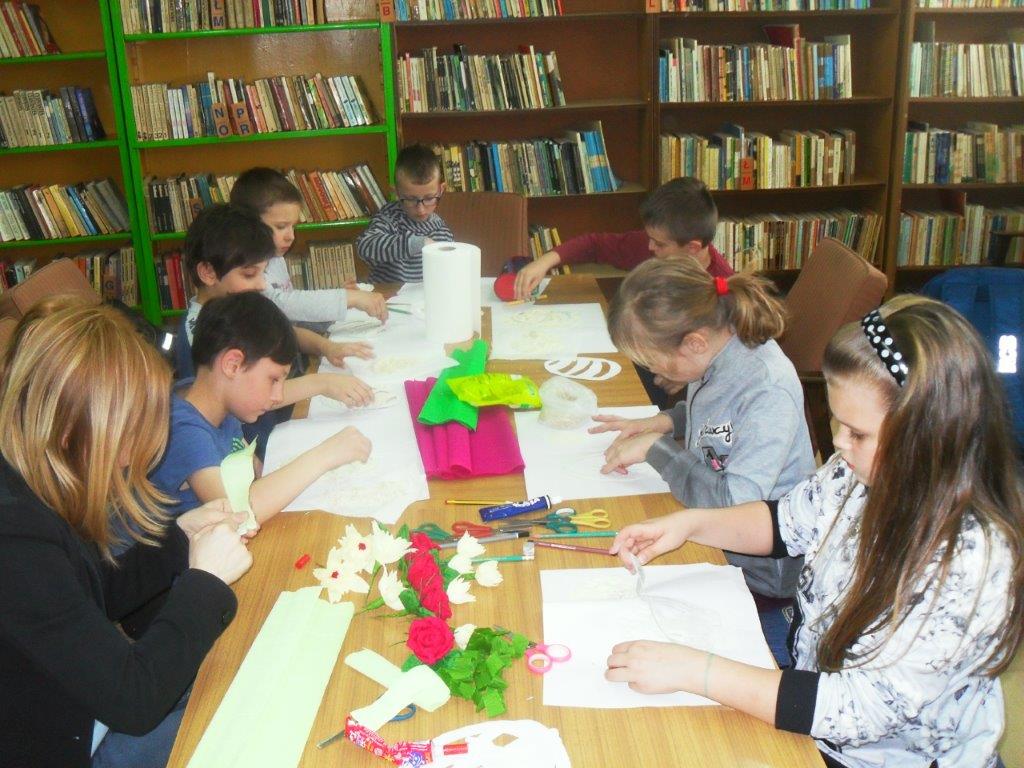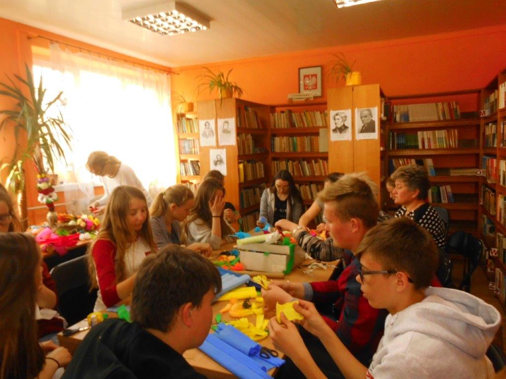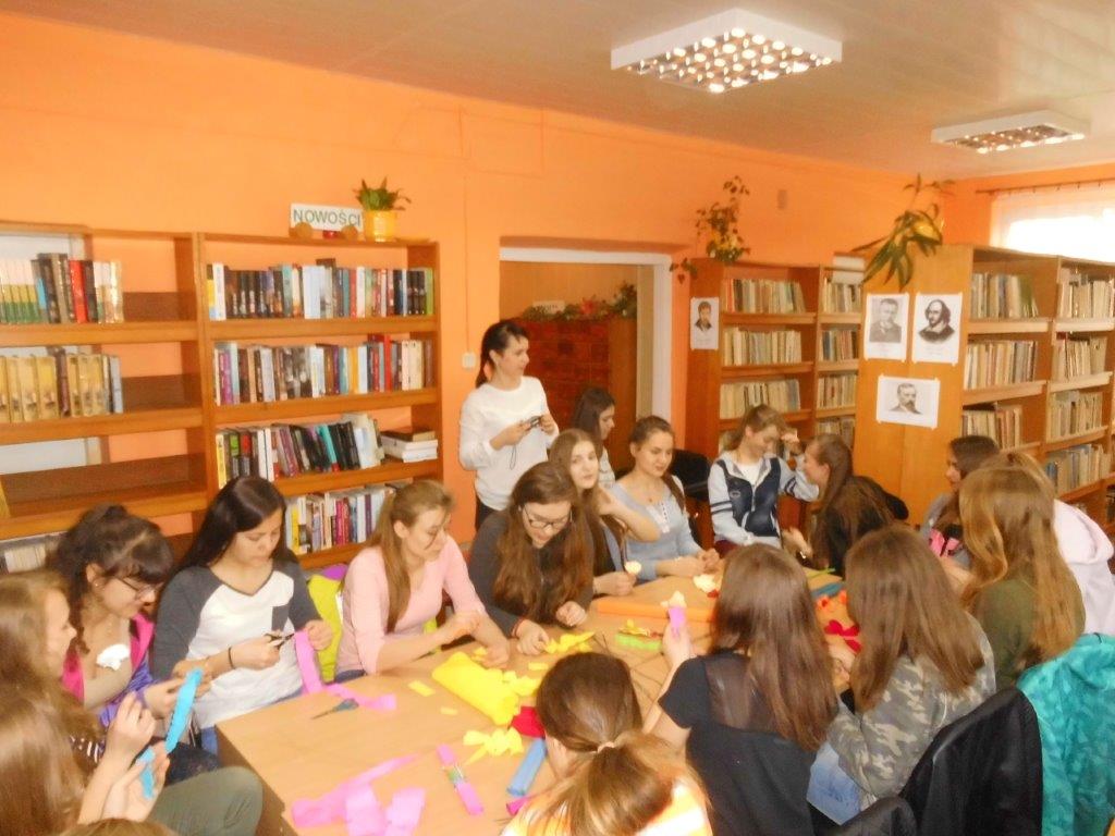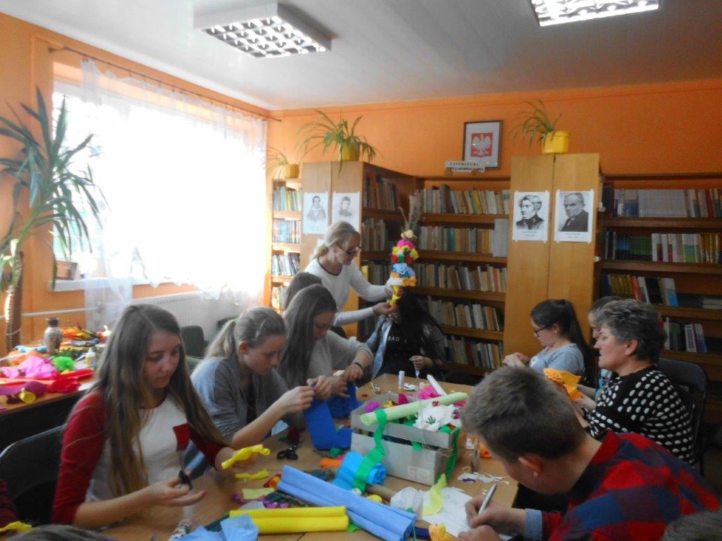 Wiele tradycji i zwyczajów wielkanocnych, z pokolenia na pokolenie wciąż jest przez nas kultywowanych. W dniach 4 i 5 kwietnia w Gminnej Bibliotece Publicznej w Mirowie i Filii Bibliotecznej w Zbijowie Małym odbyły się warsztaty rękodzielnicze „Palma i pisanka wielkanocna”. W warsztatach uczestniczyły młodzież gimnazjalna i chętne mieszkanki z terenu naszej gminy. Pod okiem pań B. Seweryn, A. Erbel i E. Dzik uczestnicy wykonywali palmy wielkanocne. W każdej palmie nie mogło zabraknąć bazi, bukszpanu, polnej trawy, gałązek wierzbowych i leśnych borówek. Kwiaty z bibuły i krepiny znakomicie uzupełniały własnoręcznie zrobione palmy.