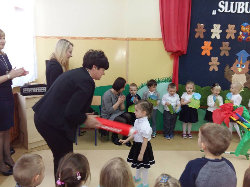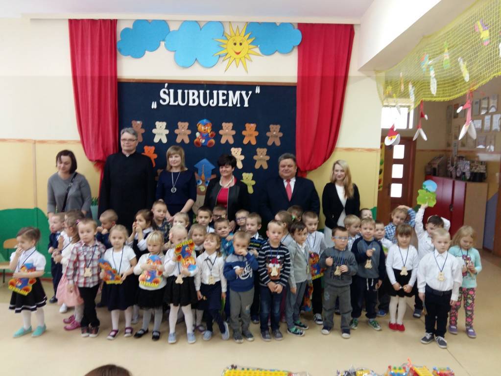 We wtorek 6.12.2016 r. w Publicznym Przedszkolu „Miś” odbyło się pasowanie dzieci 3-4 letnich. Uroczystość rozpoczęła Pani dyrektor Wiesława Anna Bilska powitaniem wszystkich przybyłych gości, a wśród nich pojawili się wójt Gminy Mirów Artur Siwiorek, proboszcz naszej parafii ks. Grzegorz Stępień oraz rodzice dzieci uczęszczających do Przedszkola „Miś”. Występ artystyczny dzieci przygotowała pani Marta Parszewska, wychowawczyni młodszej grupy „Pszczółek” . Dzieci zaprezentowały to co do tej pory nauczyły się w przedszkolu, były wiersze, piosenki i tańce. Uroczystość zakończyła się słodkim poczęstunkiem w postaci tortu. Na koniec wójt Gminy Mirów Artur Siwiorek, wręczył dzieciom z okazji pasowania, a także dnia Świętego Mikołaja prezenty dla obu grup przedszkolnych, dzieci bardzo chętnie rozpakowały zabawki i z zaciekawieniem się nimi bawiły.