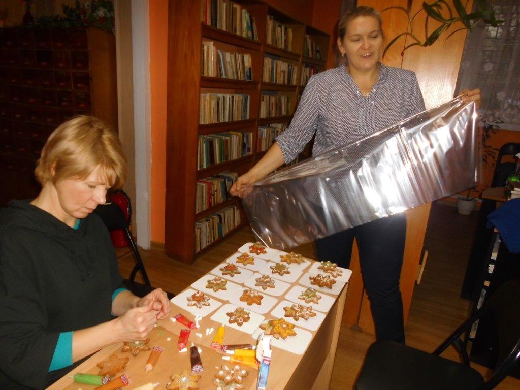 Słodko-korzenny zapach, tych świątecznych ozdób unosił się w całej placówce. Celem warsztatów było wykonanie świątecznych, słodkich upominków dla samotnych osób uczestniczących w Wigilijnym spotkaniu w Urzędzie Gminy w Mirowie. Podczas spotkania została przeprowadzona również prelekcja „Wpływ alkoholu na zdrowie”. Warsztaty odbyły się we współpracy z Gminną Komisją Rozwiązywania Problemów Alkoholowych przy Urzędzie Gminy w Mirowie.