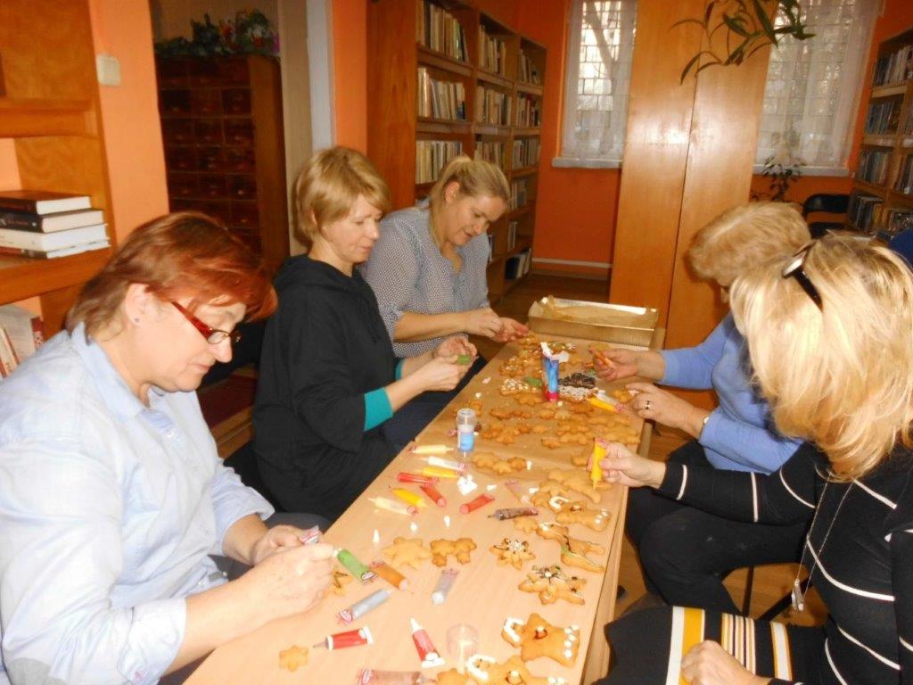 W dniach 12 i 14 grudnia w Gminnej Bibliotece Publicznej w Mirowie odbyły się warsztaty piernikowe, w których brały udział przedstawicieli Aktywu Kobiet Wiejskich, zespołu ludowego Mirowianki. Warsztaty poprowadziła p. T. Sodel. Uczestniczki warsztatów same przygotowały ciasto do wypieku pierników, a po jego rozwałkowaniu, za pomocą foremek wycinały różne kształty ciasteczek. Upieczone pierniki ozdabiano kolorowymi pisakami oraz posypkami.