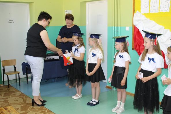 Najmłodsi otrzymali od Pana wójta wspaniałe pomoce dydaktyczne, od Pani dyrektor legitymacje szkolne oraz ozdobne medale od rodziców.