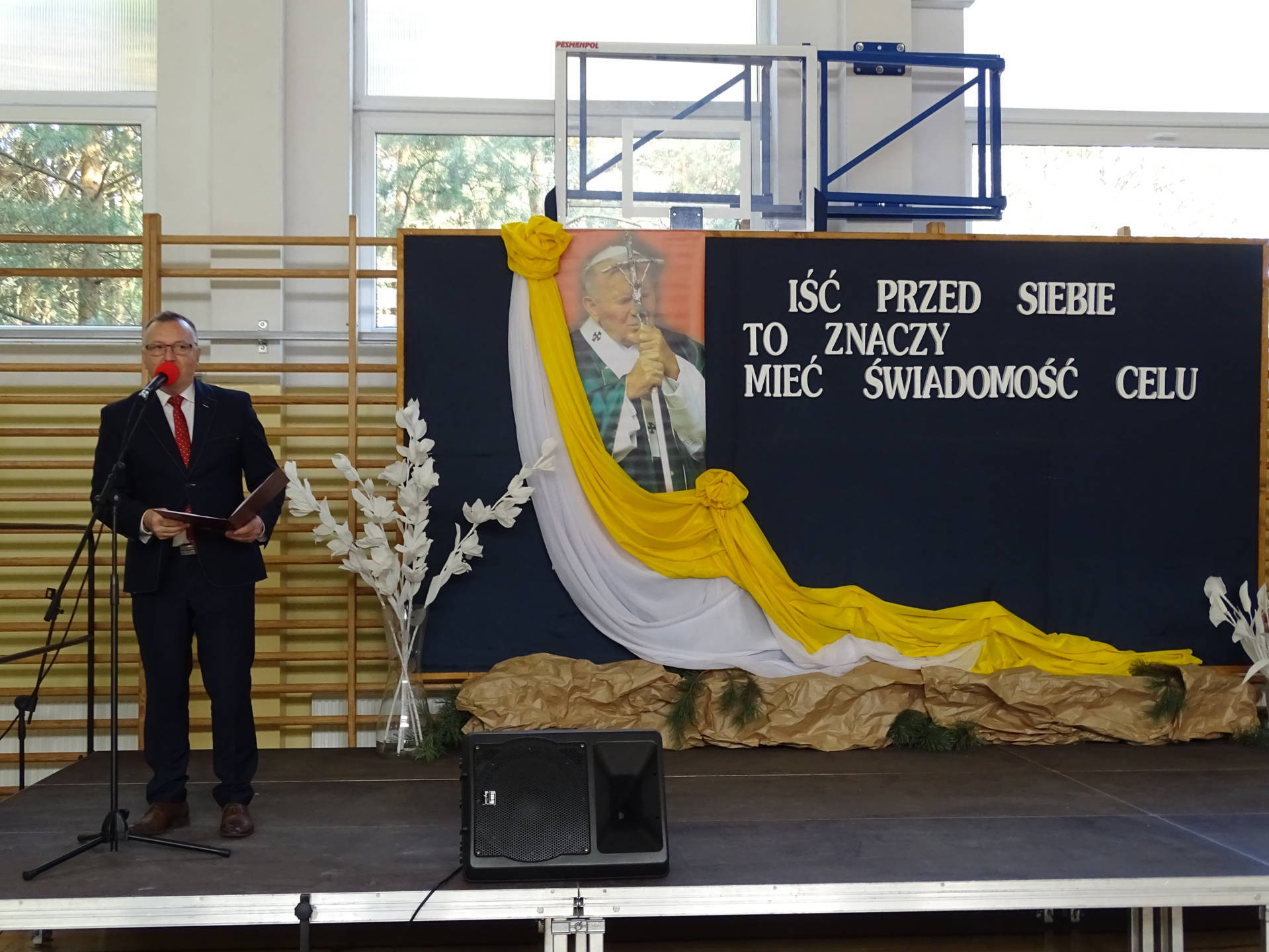 Ksiądz biskup w homilii przybliżył sylwetkę patrona podkreślając, że Papież zawsze wskazywał na godność każdego człowieka. Prosił nauczycieli, aby młodemu pokoleniu przekazywali nie tylko wiedzę, ale także polskie tradycje i wartości. Po skończonej mszy uczestnicy wspólnie z pocztem sztandarowym przemaszerowali do Szkoły Podstawowej, gdzie nastąpiła dalsza część uroczystości.SekretarzGminy Mirów p. Marek Łuszczekprzeczytał tekst uchwały, na moce której zostało nadane imię naszej szkole. Poczet sztandarowy rodziców w składzie E. Ciepiela, I. Seweryn i R. Rafalski, przekazał sztandar na ręce p. dyrektora Jana Ulewińskiego, który serdecznie podziękował wszystkim tym, którzy przyczynili się do uzyskania sztandaru i nadania imienia szkole. Następnie nastąpiła prezentacja sztandaru i przekazanie pocztowi sztandarowemu uczniów, którzy złożyli ślubowanie na otrzymany sztandar. Uczniowie pod kierunkiem nauczycieli p. Krystyny Książek i p. Arkadiusza Gilarskiego przygotowali program artystyczny, w którym dziękowali za pontyfikat swojego patrona. Nie zabrakło znanych pieśni „Kochamy Cię, Janie Pawle II”, „Barka”, „Moje miasto Wadowice”. Nadanie imienia Świętego Jana Pawła II Szkole Podstawowej w Mirowie było wspaniałą uroczystością, która zapisze się trwale w pamięci jej uczestników.
