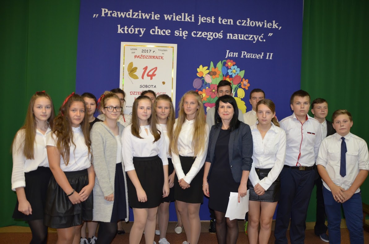„Prawdziwie wielki jest ten człowiek, który chce się czegoś nauczyć”- to słowa Jana Pawła II, które przyświecały uroczystym obchodom Dnia Edukacji Narodowej w Publicznej Szkole Podstawowej z oddziałami przedszkolnymi w Bieszkowie Dolnym, które miały miejsce 12 października 2017r.