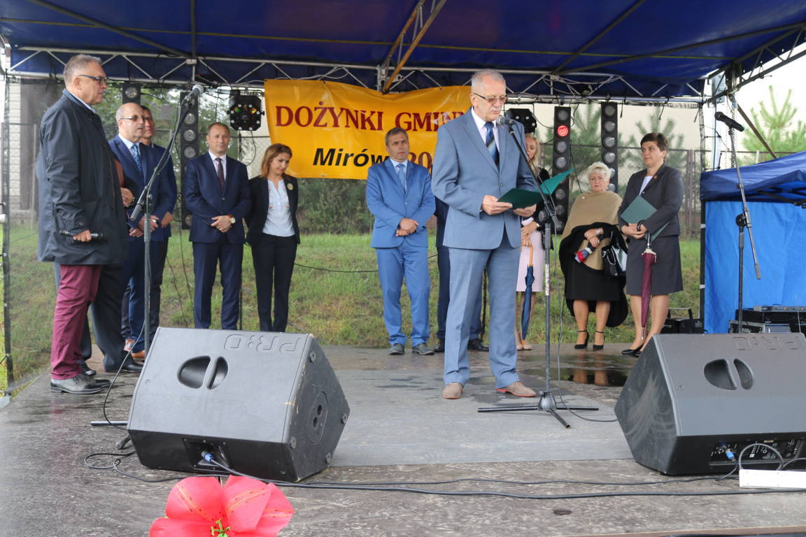 Dnia 3 września 2017 r. w Mirowie Starym odbyły się Dożynki Gminne – Mirów 2017. Uroczystości dożynkowe rozpoczęły się mszą celebrowaną przez Proboszcza Parafii ks. Grzegorza Stępnia oraz ks. Krzysztofa Świątka proboszcza parafii Gąsawy Rządowe. Po mszy świętej Pan Artur Siwiorek – Wójt Gminy Mirów oraz Wiesław Morawiak Przewodniczący Rady Gminy uroczyście przywitali przybyłych gości oraz uczestników dożynek. Starostowie tegorocznych dożynek pani Rojek Monika – mieszkanka wsi Rogów oraz pan Sebastian Pytoń rolnik z sołectwa Rogów wręczyli Gospodarzowi Dożynek –Wójtowi Gminy bochen chleba. Następnie Wójt, Przewodniczący Rady i Starostowie częstowali chlebem dożynkowym uczestników rolniczego święta.