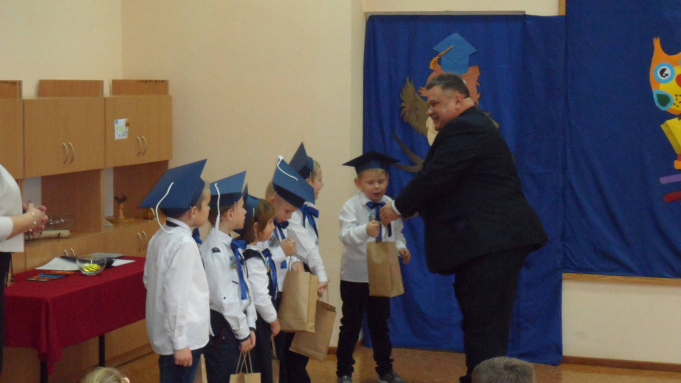 Następnie zaproszeni goście oraz rodzice wręczyli dzieciom upominki. Po zakończeniu części oficjalnej wszyscy uczestnicy zostali zaproszeni na słodki poczęstunek przygotowany przez rodziców. Ten wyjątkowy dzień na pewno pozostanie długo w pamięci uczniów naszej szkoły.