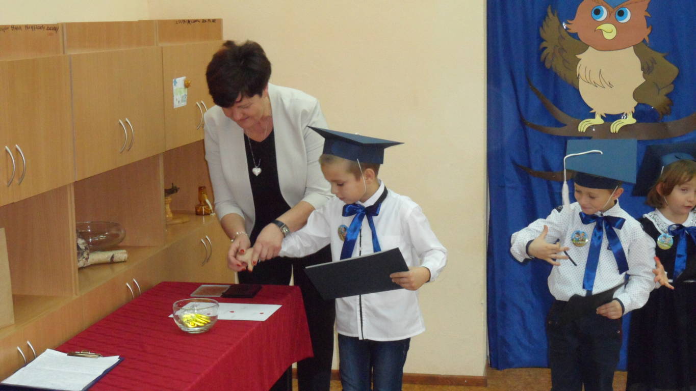 Pasowania dokonała p. dyrektor, która wraz z wychowawczynią wręczyła dzieciom dyplomy oraz legitymacje szkolne. Od tego momentu pierwszoklasiści stali się pełnoprawnymi uczniami szkoły.