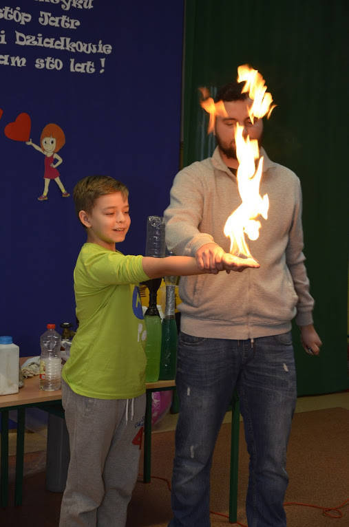 We wtorek 24 stycznia naszą szkołę odwiedziła Grupa „Zaelektryzowani” z Lublina. Zaprezentowali spektakl pt:. „Alchemia, czyli czary mary i alchemia”. Grupa specjalizuje się w propagowaniu atrakcyjnej edukacji poprzez przedstawienie interaktywnych spektakli, których celem jest – poza oczywistym elementem rozrywkowym – przemycić treści lekcyjne. W sposób bardzo ciekawy, widowiskowy, a zarazem wesoły i zabawny prezentowali niezwykłe eksperymenty fizyczno - chemiczne i intrygujące ciekawostki. Nie zabrakło ognia, piany i wybuchów. Najciekawszym elementem spektaklu była możliwość aktywnego uczestnictwa dzieci w pokazie, uczniowie byli zachwyceni! Spektakl z pewnością rozbudził wśród uczniów zainteresowanie wiedzą z zakresu przyrody, a przeprowadzone doświadczenia dostarczyły wszystkim obecnym niezapomnianych przeżyć i emocji. Żywa lekcja przyrody bardzo podobała się wszystkim widzom.