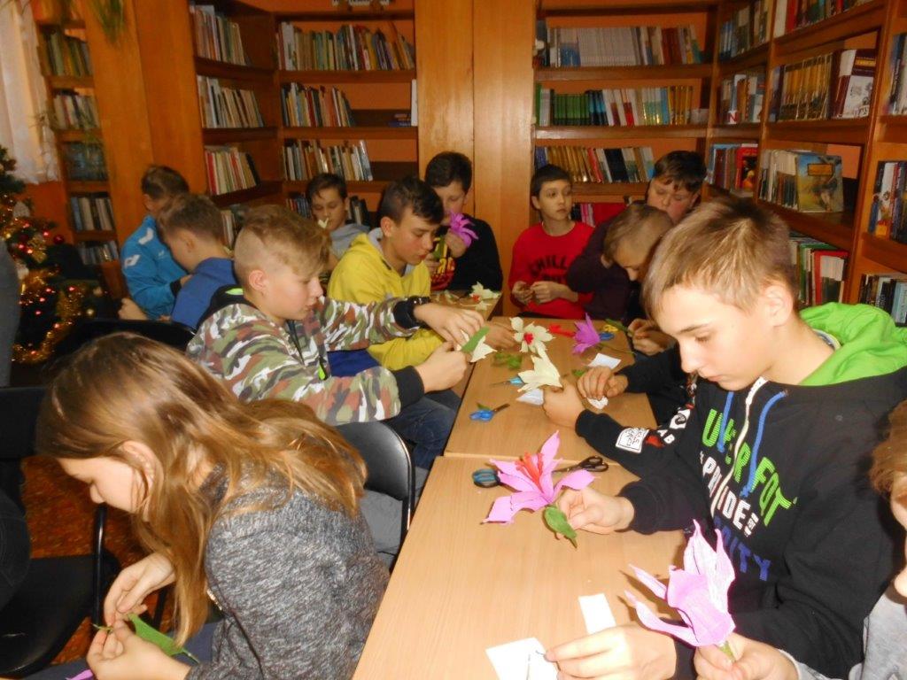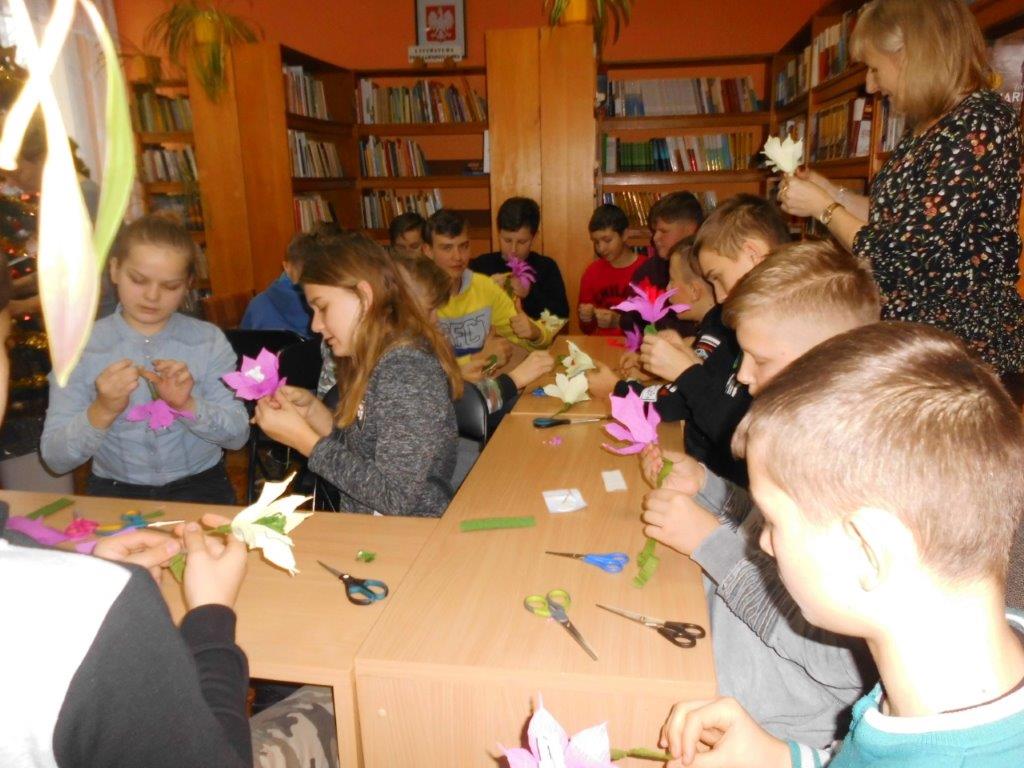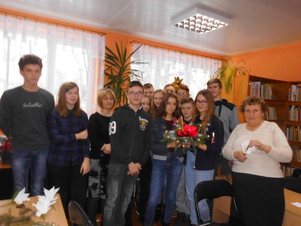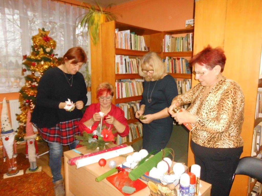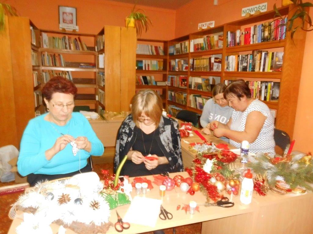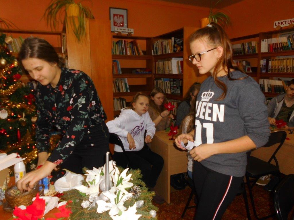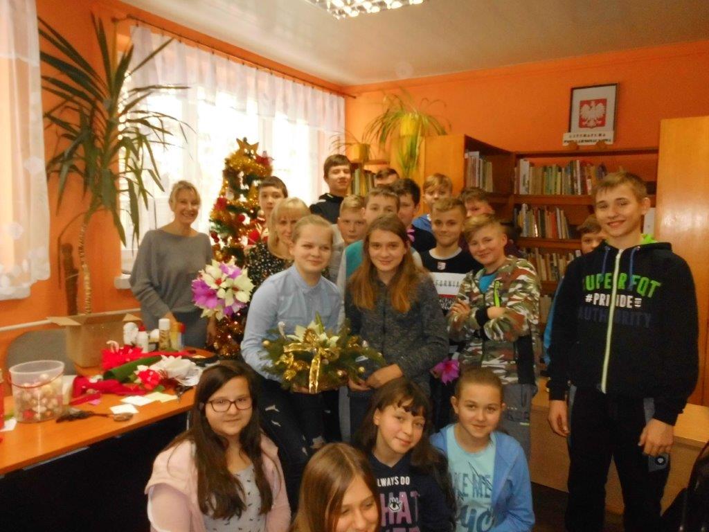 Święta Bożego Narodzenia, to czas radości, przebaczania, ale także jest to czas refleksji i spotkań nie tylko rodzinnych. Przedświąteczny czas posłużył nam do tego, aby w Gminnej Bibliotece Publicznej w Mirowie i Filii Bibliotecznej w Zbijowie Małym zorganizować spotkania dla dorosłych, młodzieży i dzieci. Celem spotkań było wykonanie tradycyjnych stroików, które będą ozdobą stołu wigilijnego na spotkaniu osób samotnych w Urzędzie Gminy Mirów. Stroiki były wykonane z jedliny, zdobiły je bombki, świeczki, szyszki a także kwiaty z krepiny wykonane samodzielnie przez uczniów.