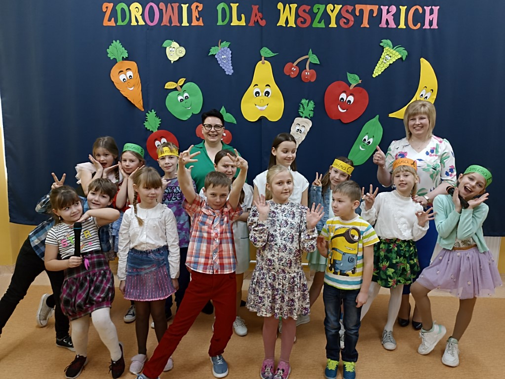 W przepięknej scenografii oraz wyjątkowej atmosferze uczniowie kl. II i III zaprezentowali program artystyczny pod kierunkiem p. Anny Kutery i p. Karoliny Nowak. Jego celem było przypomnienie jak cenne jest zdrowie i co należy robić, aby je chronić. Mali aktorzy zaprezentowali się w kilku humorystycznych scenkach: „Taniec witaminek”, „U pani doktor”, nawołujących między innymi do zdrowego odżywiania, aktywności fizycznej oraz dbania