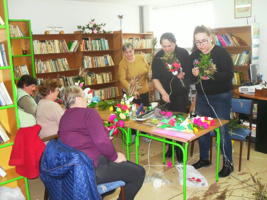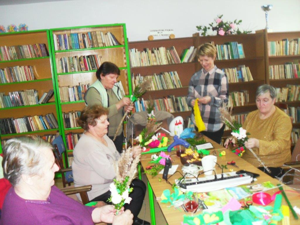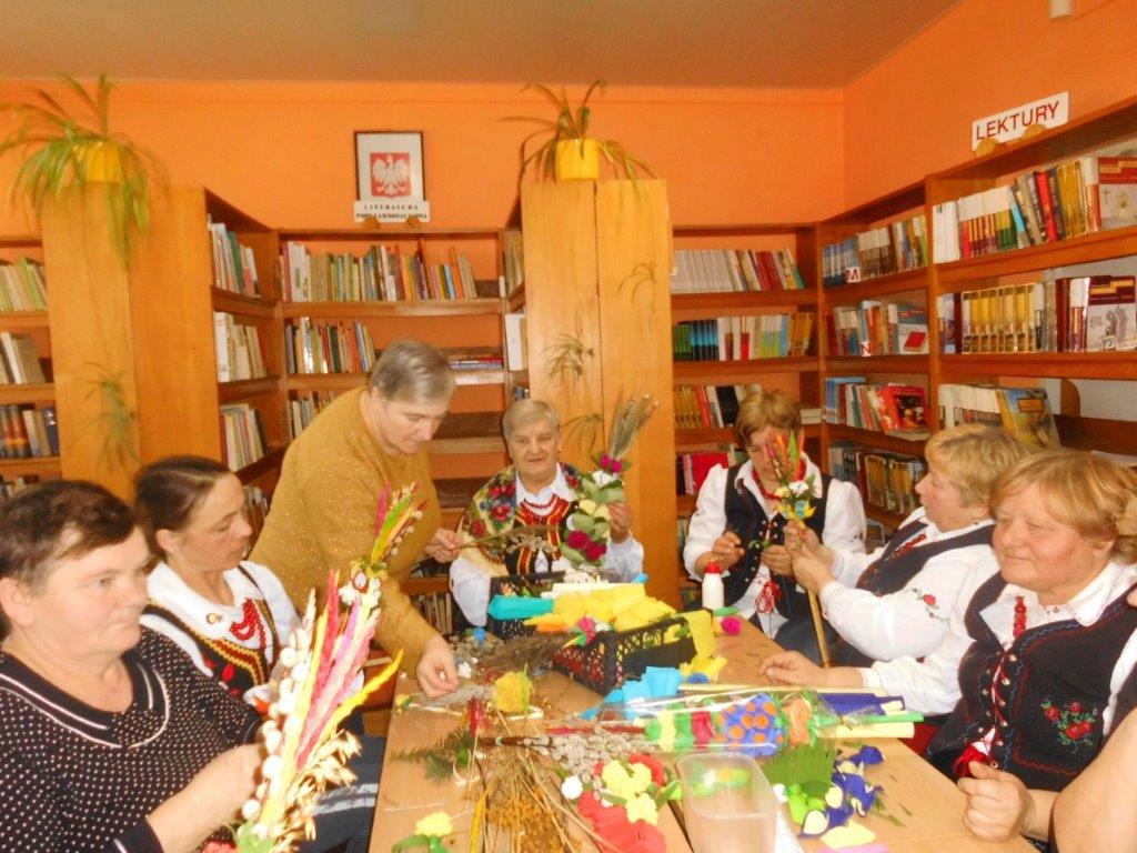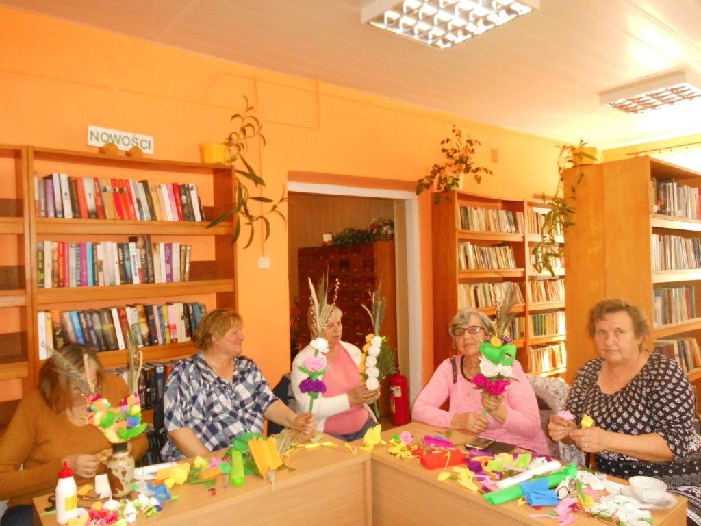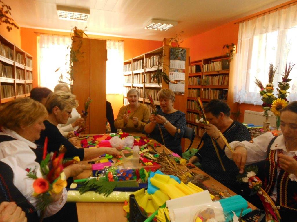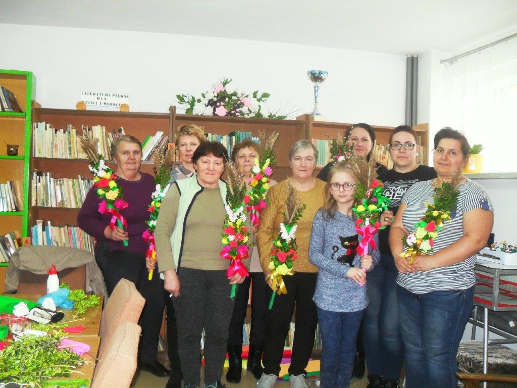 W dniach od 01 do 09 kwietnia 2019 roku biblioteki publiczne Gminy Mirów przeprowadzały warsztaty robienia palm wielkanocnych. Spotkania odbywały się w bibliotekach i w szkołach podstawowych. Na poszczególne spotkania zaproszone były przedstawicielki zespołów ludowych i aktywu kobiet wiejskich. Dorośli i dzieci pod okiem Pań bibliotekarek wykonywały kwiaty z kolorowej bibuły i krepiny. Do dyspozycji mieli przygotowane suszone trawy, kłoski zbóż, gałązki bukszpanu i borówki. Wszystkie przygotowane materiały posłużyły do zrobienia pięknej tradycyjnej Palmy Wielkanocnej. Spotkania cieszyły się bardzo dużą popularnością. Podczas wspólnej pracy odbywały się rozmowy o zwyczajach i tradycjach związanych ze zbliżającymi się Świętami Wielkiej Nocy.