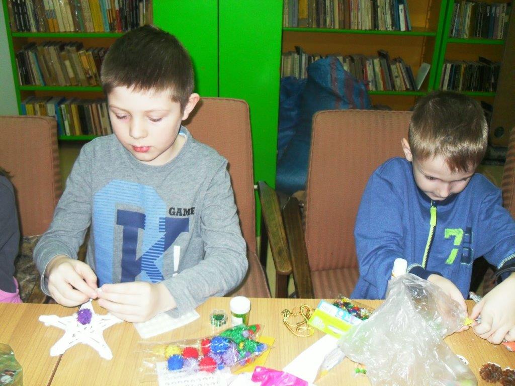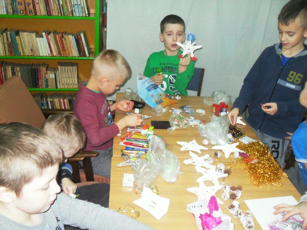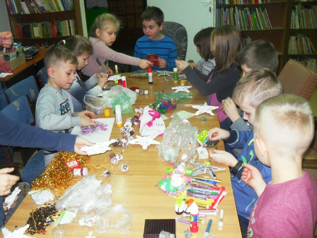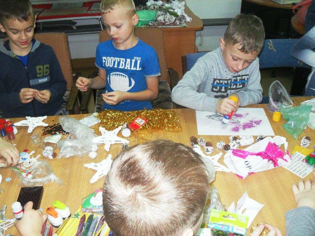 Radości i satysfakcji z samodzielnie przyozdabianych stroików i gwiazdek było co niemiara. Każdy mógł zabrać swoją pracę do domu i pochwalić się rodzicom. Czas upłynął wszystkim bardzo szybko i powstawały pytania czy mogą przyjść jeszcze raz, ponieważ te zajęcia były bardzo ciekawe i co najważniejsze wprowadzały milusińskich w magię zbliżających się Świąt Bożego Narodzenia.