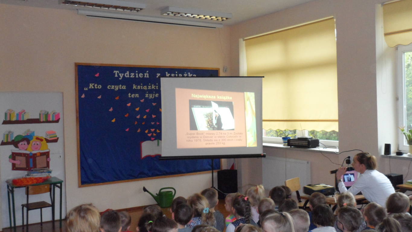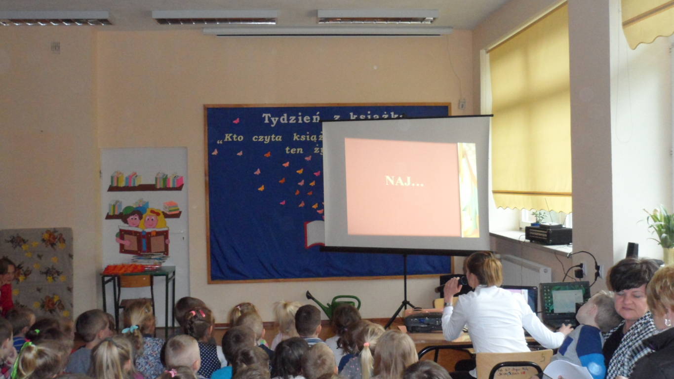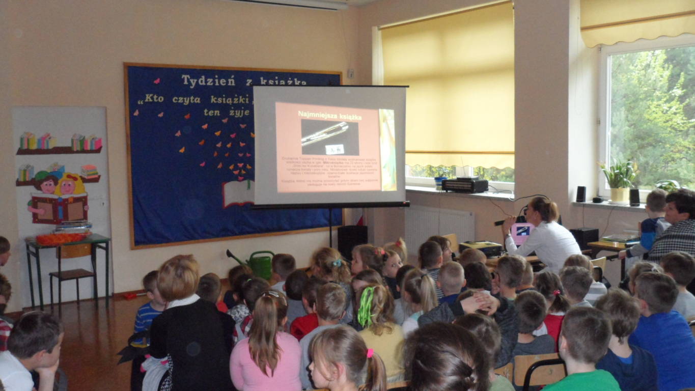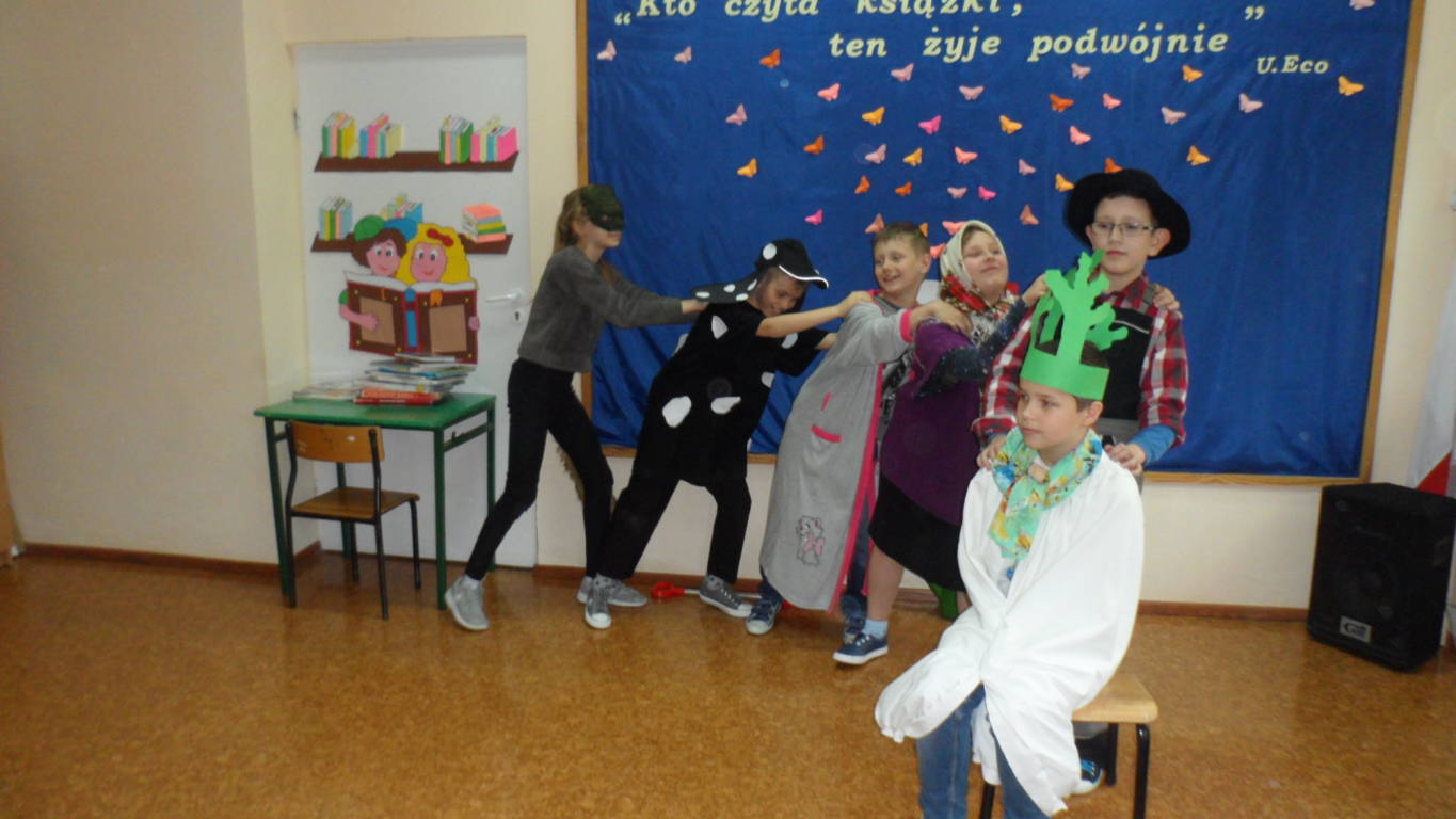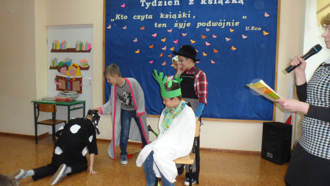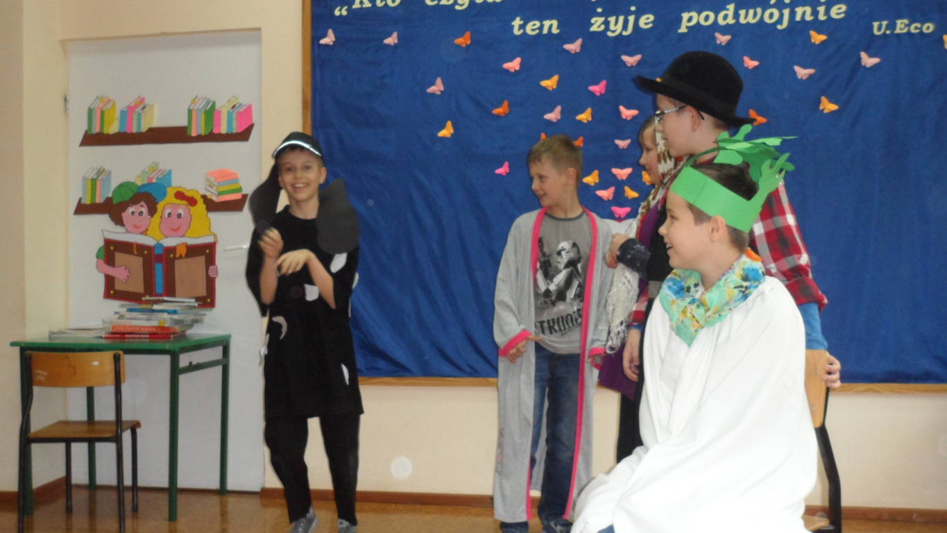 W piątek 28.04.2017r. podsumowano akcję „Tydzień z książką”. Pani Joanna Drabik przedstawiła „Ciekawostki o książce” w interesującej prezentacji multimedialnej. Następnie uczniowie klasy IV i V przygotowani przez p. E. Dzik i p. M. Boros przedstawili inscenizację utworu „Rzepka” J. Tuwima. W/ w przedstawienie bardzo podobało się wszystkim uczestnikom, ponieważ kolorowe stroje i niecodzienna odpowiednia oprawa muzyczna spowodowała, że wszyscy włączyli się w śpiewanie znanych utworów wykorzystanych do inscenizacji wiersza.
