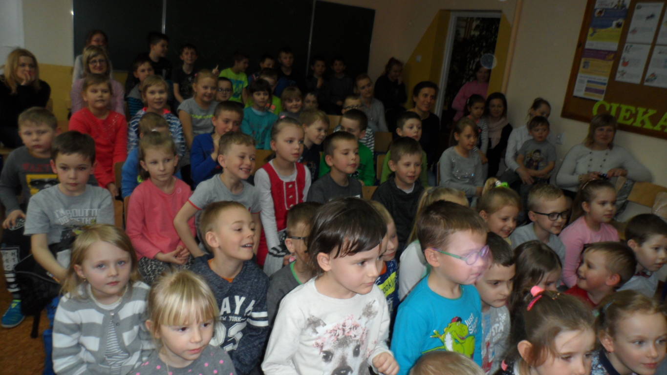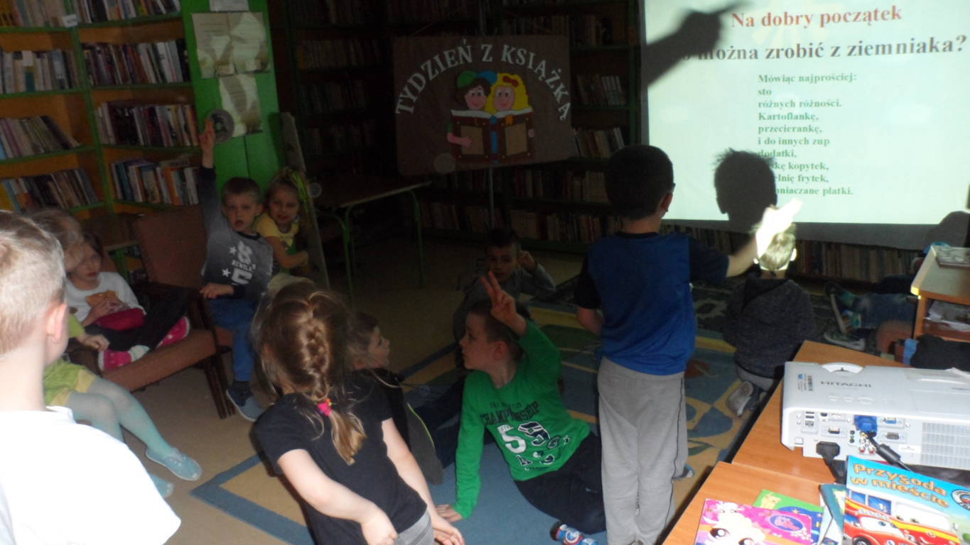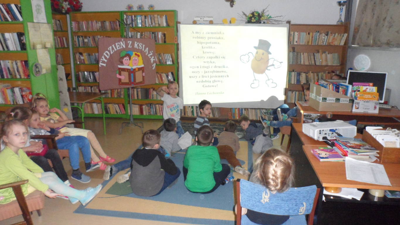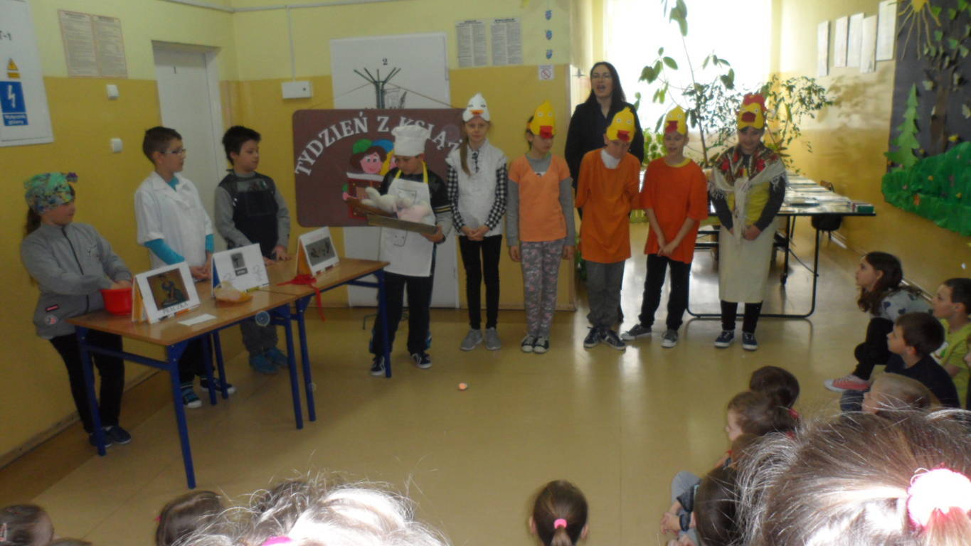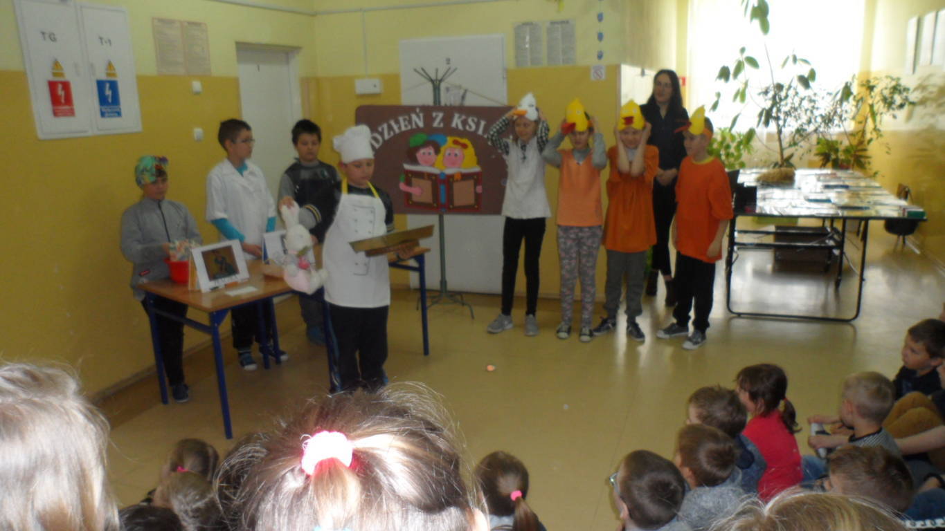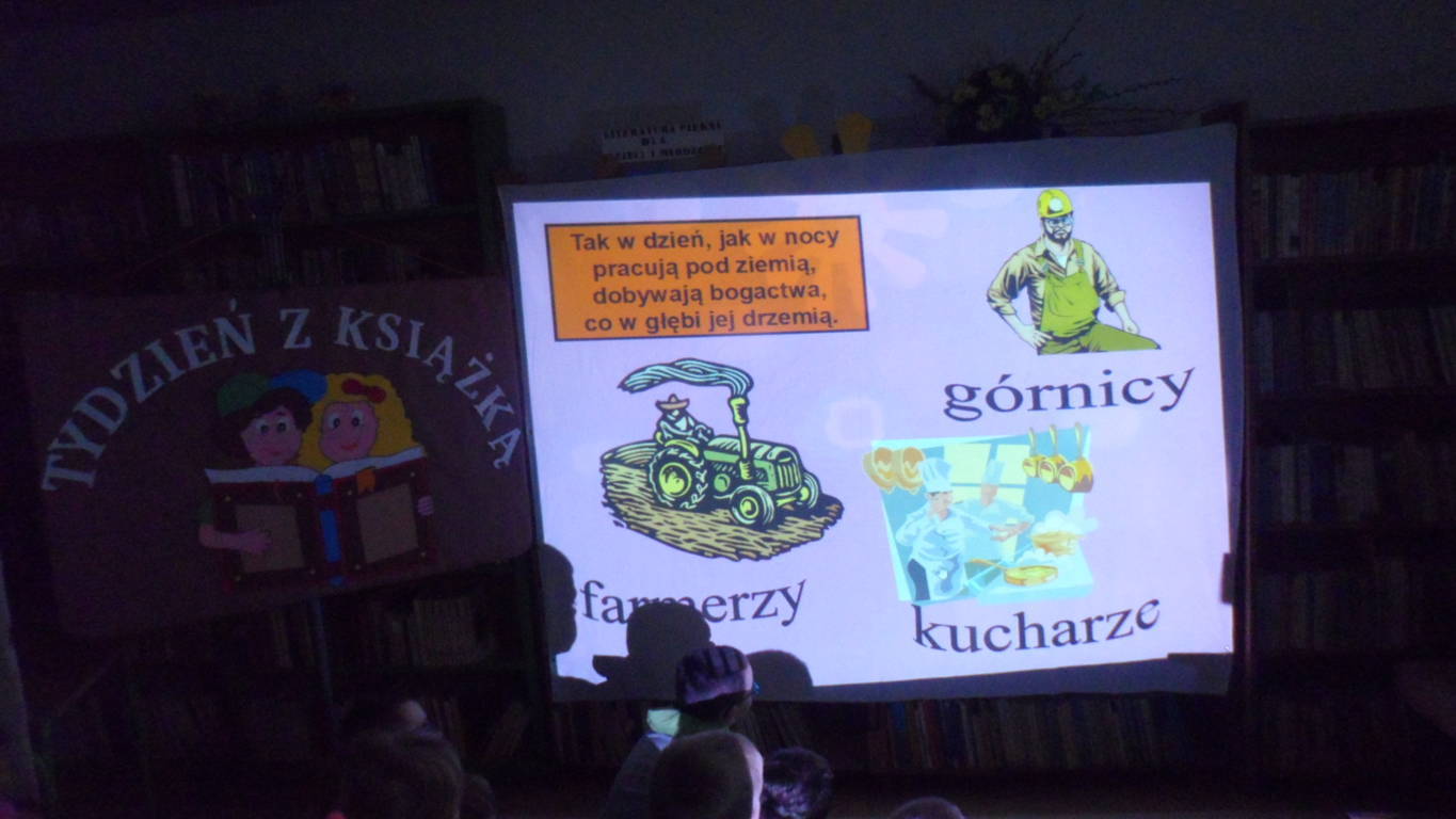 W piątek 28.04.2017r. podsumowano akcję „Tydzień z książką”. Pani Joanna Drabik przedstawiła „Ciekawostki o książce” w interesującej prezentacji multimedialnej. Następnie uczniowie klasy IV i V przygotowani przez p. E. Dzik i p. M. Boros przedstawili inscenizację utworu „Rzepka” J. Tuwima. W/ w przedstawienie bardzo podobało się wszystkim uczestnikom, ponieważ kolorowe stroje i niecodzienna odpowiednia oprawa muzyczna spowodowała, że wszyscy włączyli się w śpiewanie znanych utworów wykorzystanych do inscenizacji wiersza.