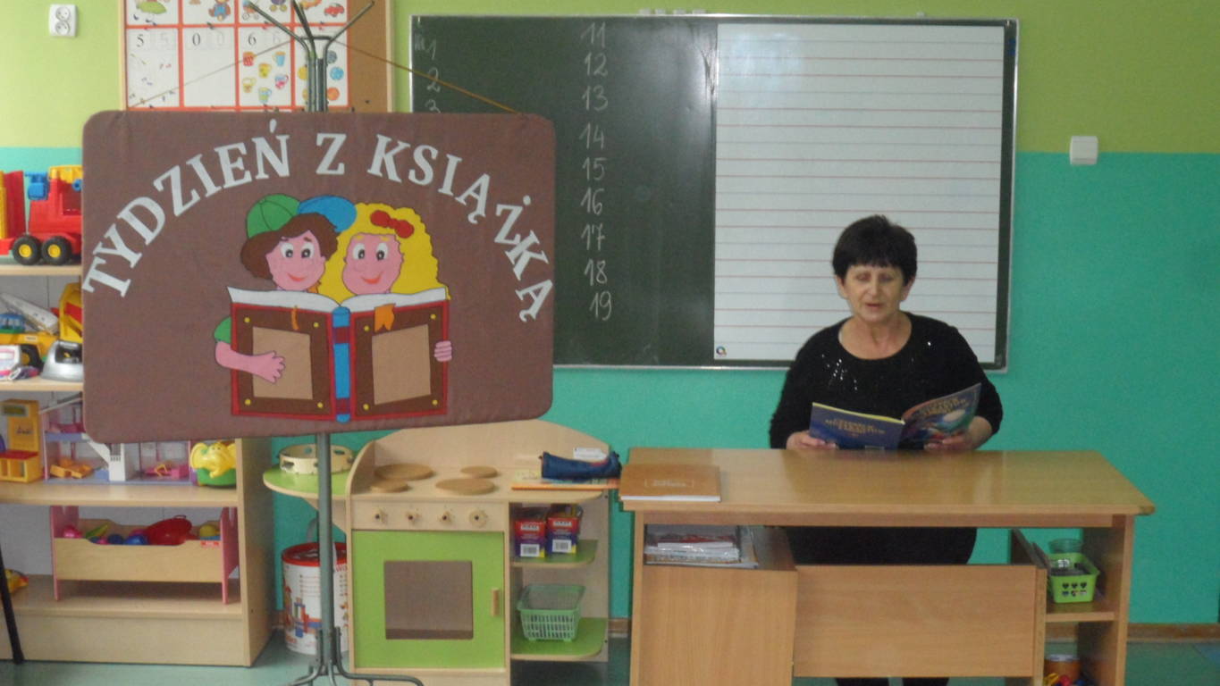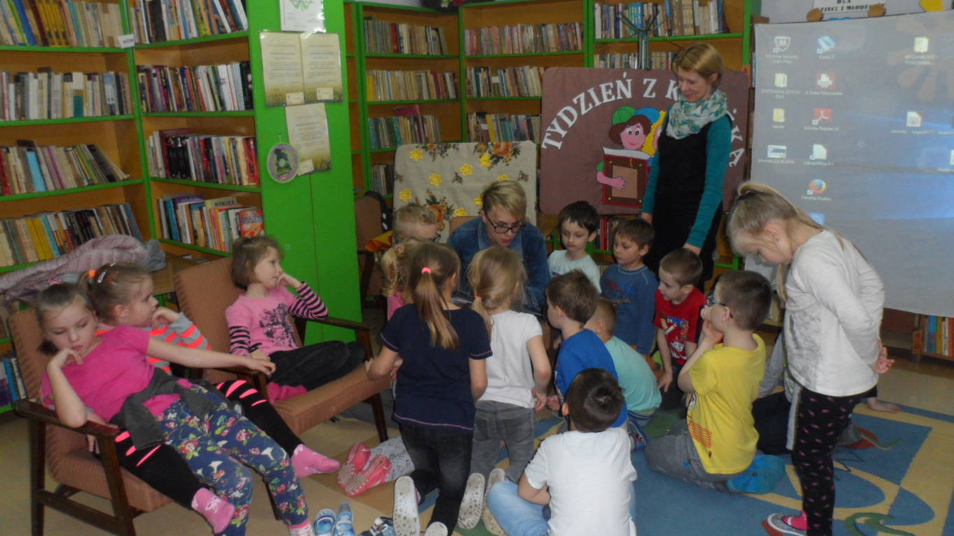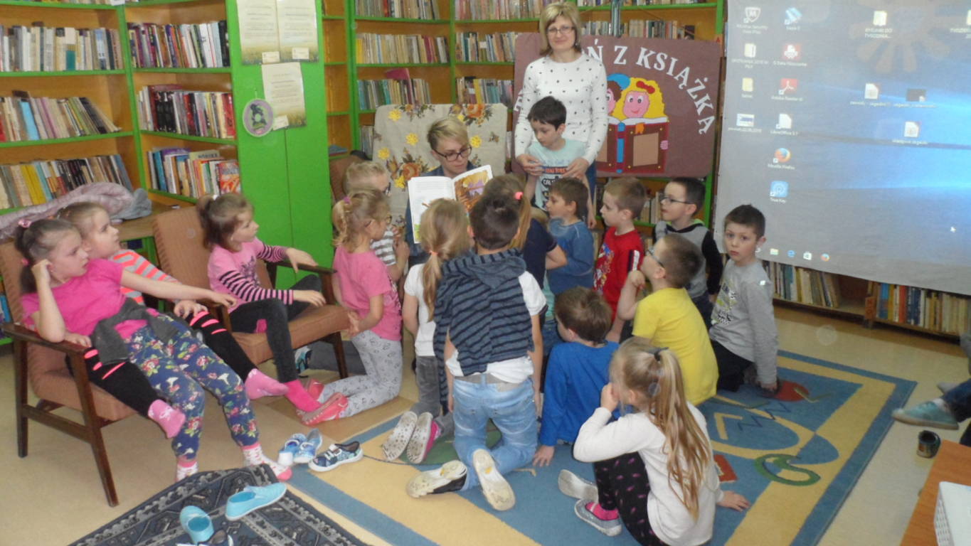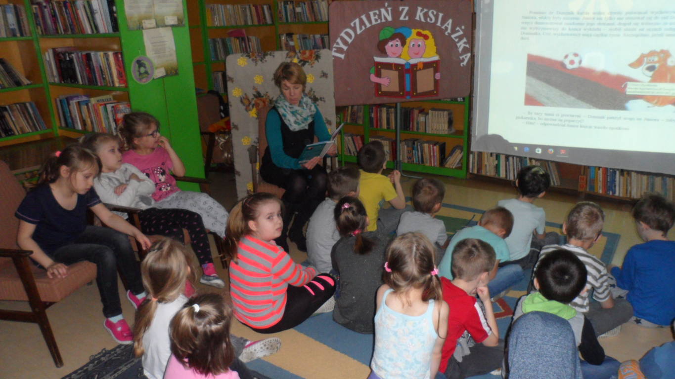 „Tydzień z książką” przeniósł się również do Filii Gminnej Biblioteki Publicznej w Zbijowie, gdzie na najmłodszych czytelników czekał szereg inspirujących atrakcji. W bibliotece pani bibliotekarka Elżbieta Dzik przedstawiła najmłodszym dzieciom multimedialne obrazki do książki G. Kazdepke ,,Ostrożnie”, następnie przeczytała fragmenty ciekawych, pouczających opowieści z których dzieci mogły dowiedzieć się: w jakich sytuacjach należy zachować ostrożność i jak przewidzieć i unikać sytuacji niebezpiecznych. Na spotkanie przybyła również pani Malwina Boros (zaproszony rodzic), przeczytała najmłodszym dzieciom bajkę pt,,Czarnoksiężnik z krainy Oz” . Fascynująca bajka rozpaliła dziecięcą wyobraźnię. Opowiedziała o podróży przyjaciół, celem spełnienie największych marzeń, o wierze w siebie, o tym, że wszystko zależy przede wszystkim od nas (nie, wcale nie od Czarnoksiężnika).Ciekawa oprawa multimedialna nie pozwoliła na nudę, a dobór atrakcyjnych pozycji książkowych zaszczepił w młodych odbiorcach zamiłowanie do literatury.