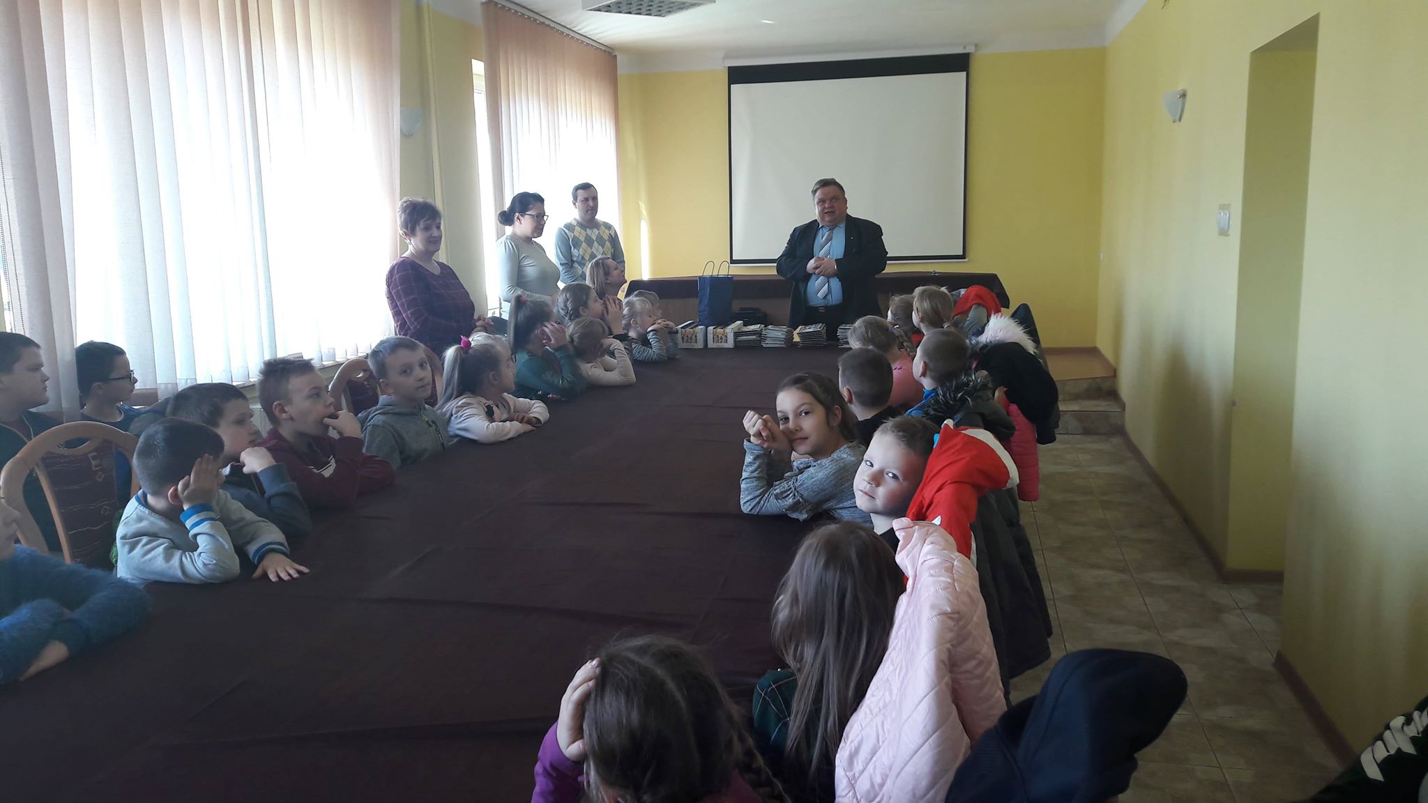 Czterdziestoosobowa grupa uczniów z Publicznej Szkoły Podstawowej w Bieszkowie Dolnym przybyła z wizytą do Urzędu Gminy w Mirowie. Dzieci w towarzystwie opiekunów miały okazję zapoznać się z zasadami funkcjonowania gminy, zobaczyć na własne oczy jak na co dzień wygląda praca urzędnika. Zwiedzanie budynku poprzedzone było spotkaniem z panem Arturem Siwiorkiem – Wójtem Gminy, który odpowiadał na liczne pytania swoich wyjątkowych gości. Dzieci przygotowały dla wójta niezwykłą niespodziankę, wręczając katalog rzeczy, które ich zdaniem powinny powstać na terenie gminy. Co ciekawe, przedstawiły je w formie własnoręcznie wykonanych rysunków. Na koniec wszyscy uczestnicy wizyty zrobili sobie wspólne zdjęcie.