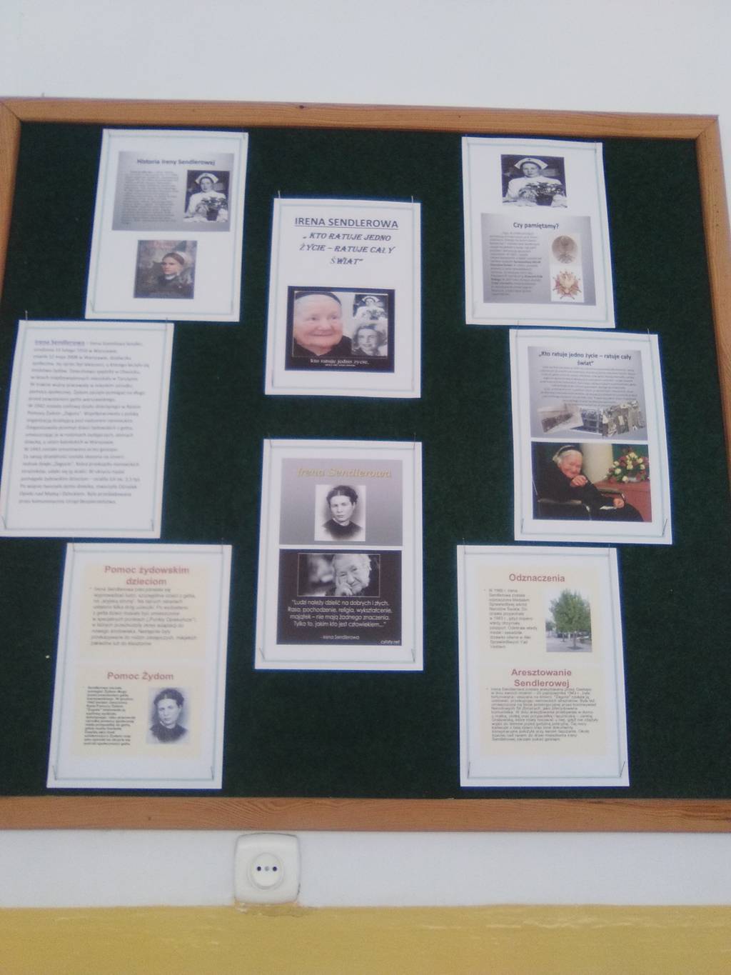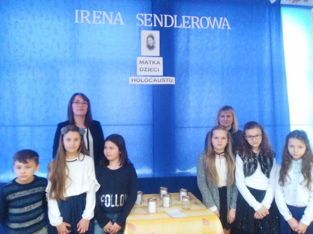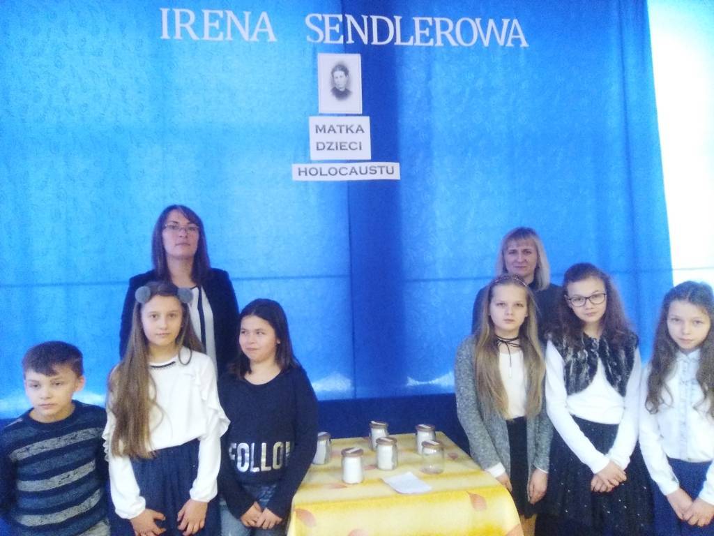 kierowniczka referatu dziecięcego Rady Pomocy Żydom „Żegota”, Sprawiedliwa wśród Narodów Świata. Z narażeniem życia, heroizmem, w największej konspiracji wyprowadzała dzieci z warszawskiego getta, a następnie znajdowała im schronienie w polskich rodzinach, klasztorach i domach opieki. Prowadzony przez nią rejestr uratowanych dzieci, pozwolił po zakończeniu II wojny światowej na poznanie przez ocalone dzieci własnej tożsamości i tym samym odnalezienie bliskich. Z okazji trwającego Roku Ireny Sendlerowej nasza szkoła zorganizowała szereg działań oddając w ten sposób "hołd Tej, która z największym poświęceniem działała na rzecz ratowania drugiego człowieka". Uczniowie mieli okazję zapoznać się z biografią Ireny Sendlerowej przygotowując konkursowe prezentacje multimedialne. Naszych podopiecznych do refleksji nad dobrem i własnym postępowaniem zachęciło wysłuchanie wspomnień osób ocalonych przez tę wielką postać. Kolejnym punktem programu było wyświetlenie krótkiego filmu o Holocauście. Pamięcią o Bohaterce jest również tablica tematyczna wykonana w naszej szkole w ramach konkursu pt.: „ IRENA SENDLEROWA – MATKA DZIECI HOLOCAUSTU”. Poszczególne działania zostały zorganizowane przez panie: Magdalenę Boros - nauczyciela języka polskiego i Agnieszkę Kawalec – nauczyciela historii.