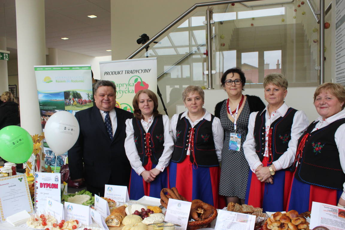 Panie godnie prezentowały swój region w oryginalnych strojach. Głównym produktem, który prezentowały GÓRNIANKI był ser, występujący w różnych postaciach. Przedstawiono sześć różnych odmian sera (wykonanego domowym sposobem): ser biały podpuszczkowy „bieszkowski”, ser biały podpuszczkowy z czarnuszką, ser biały podpuszczkowy z czosnkiem niedźwiedzim, ser żółty, ser riccotta, rolada serowa Po części oficjalnej uroczystości, przemowie burmistrza Tarczyna Barbary Galicz rozpoczęła się prezentacja regionalnych produktów a następnie zaproszono gości na „ucztę dla podniebienia i duszy”, czyli degustację przetworów oraz występy przybyłych zespołów ludowych. Wśród przetworów znalazły się: różne gatunki miodu, soki, potrawy z papryki, różne odmiany ciast, pieczywa, wyroby wędliniarskie, obarzanki, kulebiaki, itp. GÓRNIANKI pomimo, iż dopiero zawiązały działalność w 2015r. już aktywnie uczestniczą w konkursach rozpowszechniając umiejętności kulinarne. Są laureatkami I edycji Mazowieckiego Konkursu Serów Zagrodowych w Warszawie z 2016r. (kategoria produktów indywidualnych dla „Sera bieszkowskiego”). Panie zdobyły także nagrodę w konkursie kulinarnym „Ogólnopolskiego Zjazdu Kół Gospodyń Wiejskich i innych Organizacji kobiecych z terenów wiejskich” w Licheniu we wrześniu 2016r. Życzymy Gospodyniom dalszych sukcesów.