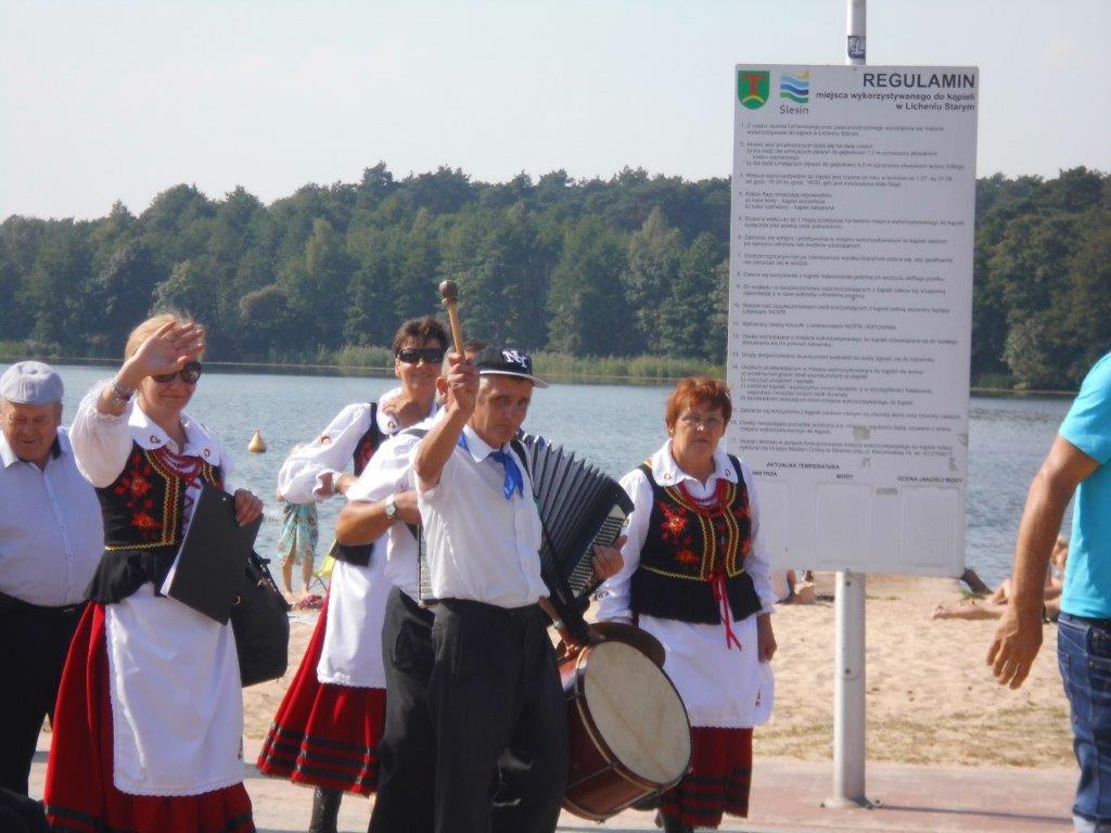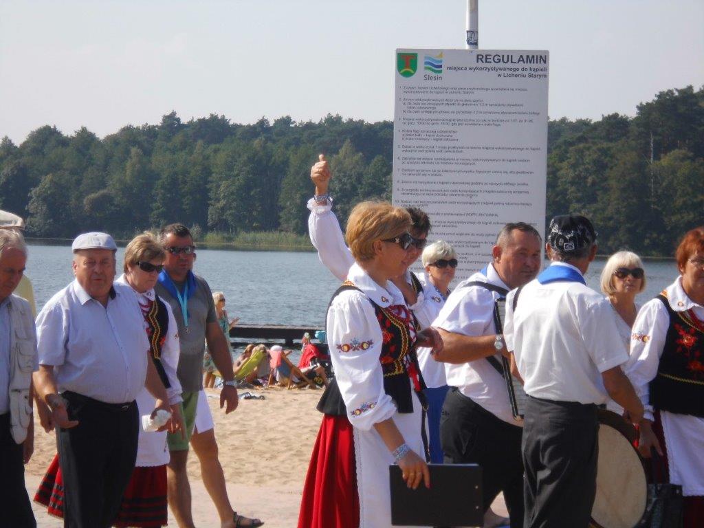 Dwudniowy pobyt rozpoczął się od Jarmarku Kulturowego na skwerze nad Jeziorem Licheńskim. Biblioteka wspólnie z „Niezapominajkami” przygotowała stoisko promujące gminę. Zespół „Mirowianki” uczestniczył w przeglądzie zespołów folklorystycznych. Natomiast „Rogowianki” i „Górnianki” brały udział w konkursie kulinarnym. Nasi uczestnicy konkursów dostali dyplomy i nagrody. W trakcie popołudniowego spotkania można było skosztować specjałów kulinarnych przygotowanych przez poszczególne Koła, obejrzeć występy zespołów folklorystycznych oraz podziwiać ludowe rękodzieła. Finałem pierwszego, niezwykle gorącego dnia, był występ Eleni.