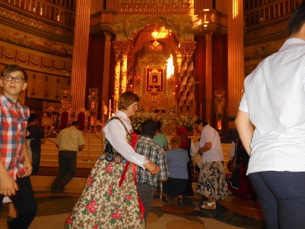 Drugi dzień zjazdu miał charakter duchowy. O godz. 7: 00 braliśmy udział w spacerze różańcowym do miejsc objawień w Grąblinie. Natomiast o godz. 11: 00, przy dźwiękach orkiestry dętej, nasze zespoły przeszły w barwnym korowodzie do licheńskiej bazyliki, aby o godz. 12: 00 modlić się przed Cudownym Obrazem Matki Bożej Licheńskiej i złożyć w ofierze przywieziony dar. Po Eucharystii zwiedzaliśmy Sanktuarium w towarzystwie sanktuaryjnego przewodnika. Spotkanie zakończyło się Koronką do Miłosierdzia Bożego, którą odmówiliśmy w kaplicy Trójcy Świętej.