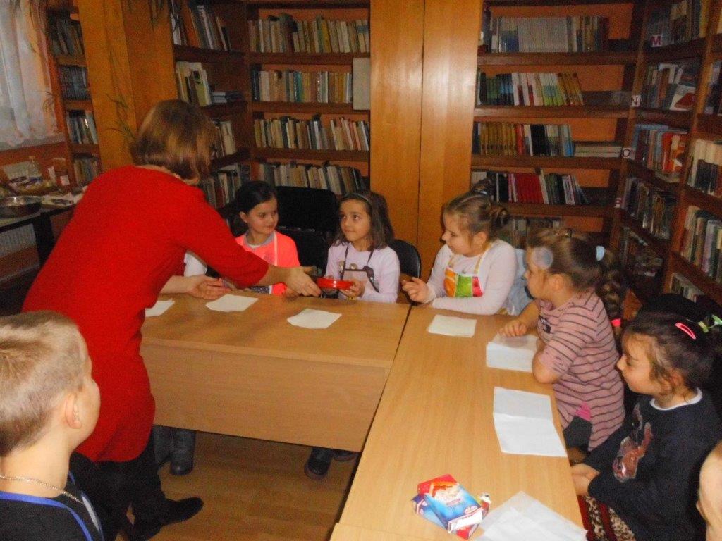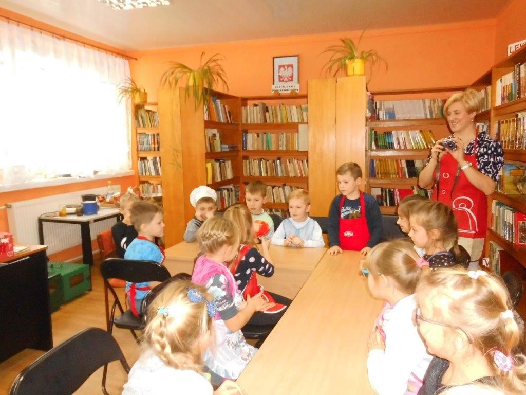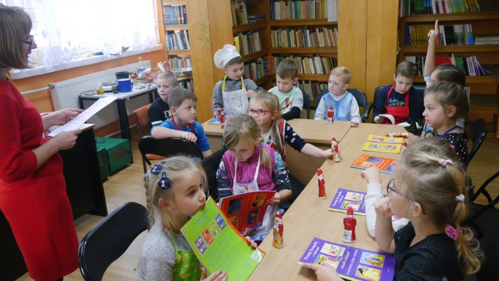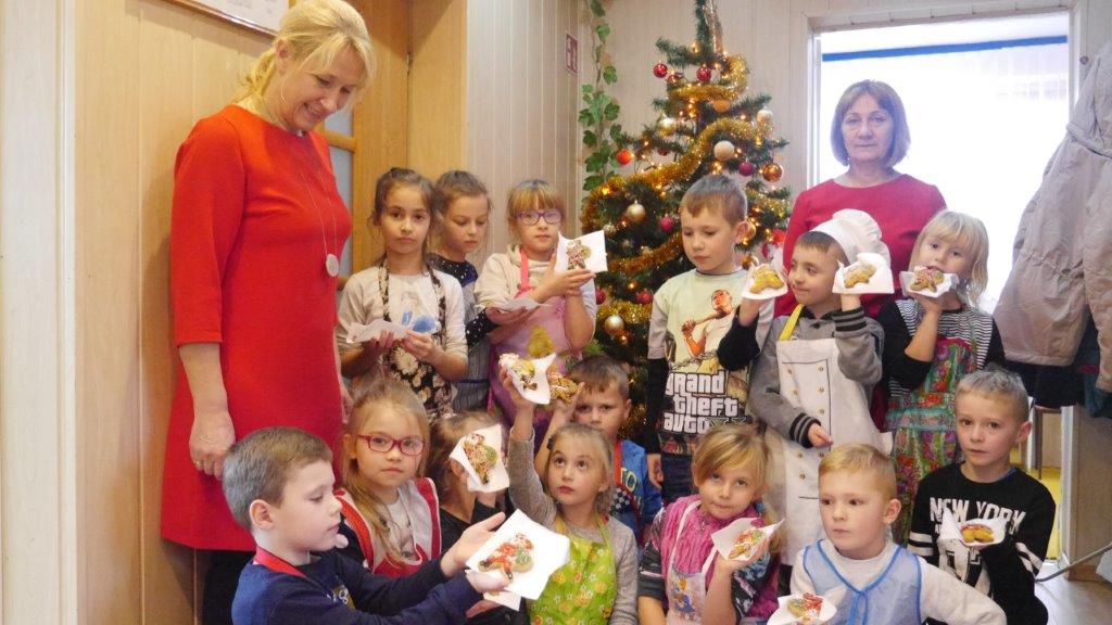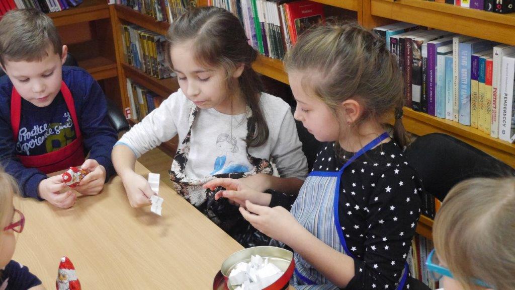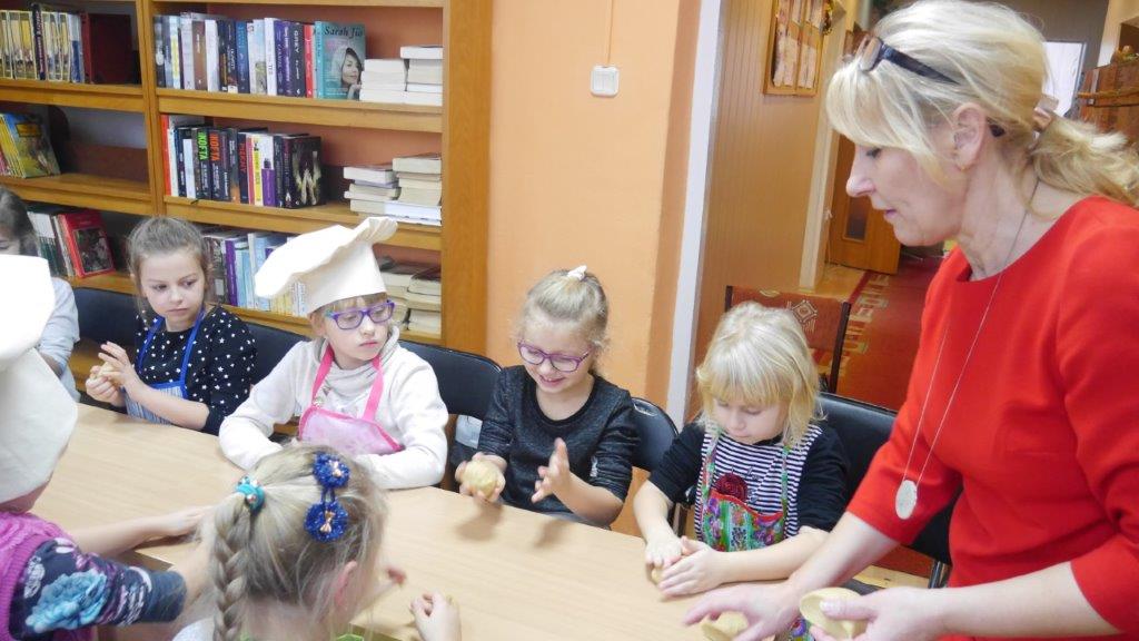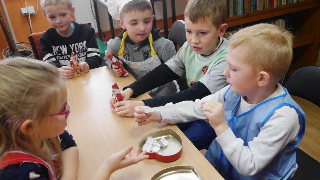 Podczas przygotowywania pierniczków bibliotekarki rozmawiały z dziećmi o tradycji św. Mikołaja, opowiedziały historię pochodzenia pierników, a także legendy z nimi związane. W czasie, gdy pierniczki wypiekały się w piekarniku, dzieciaki brały udział w quizach o świętym Mikołaju. Za prawidłowe odpowiedzi, otrzymywały słodkości i książeczki. W trakcie pieczenia unosił się aromatyczny zapach, a wszystkim udzielił się radosny nastrój związany ze św. Mikołajem. Spotkanie zakończyło się degustacją pierniczków, a każdy z uczestników mógł zabrać do domu, piernikowego pięknie ozdobionego Mikołaja.