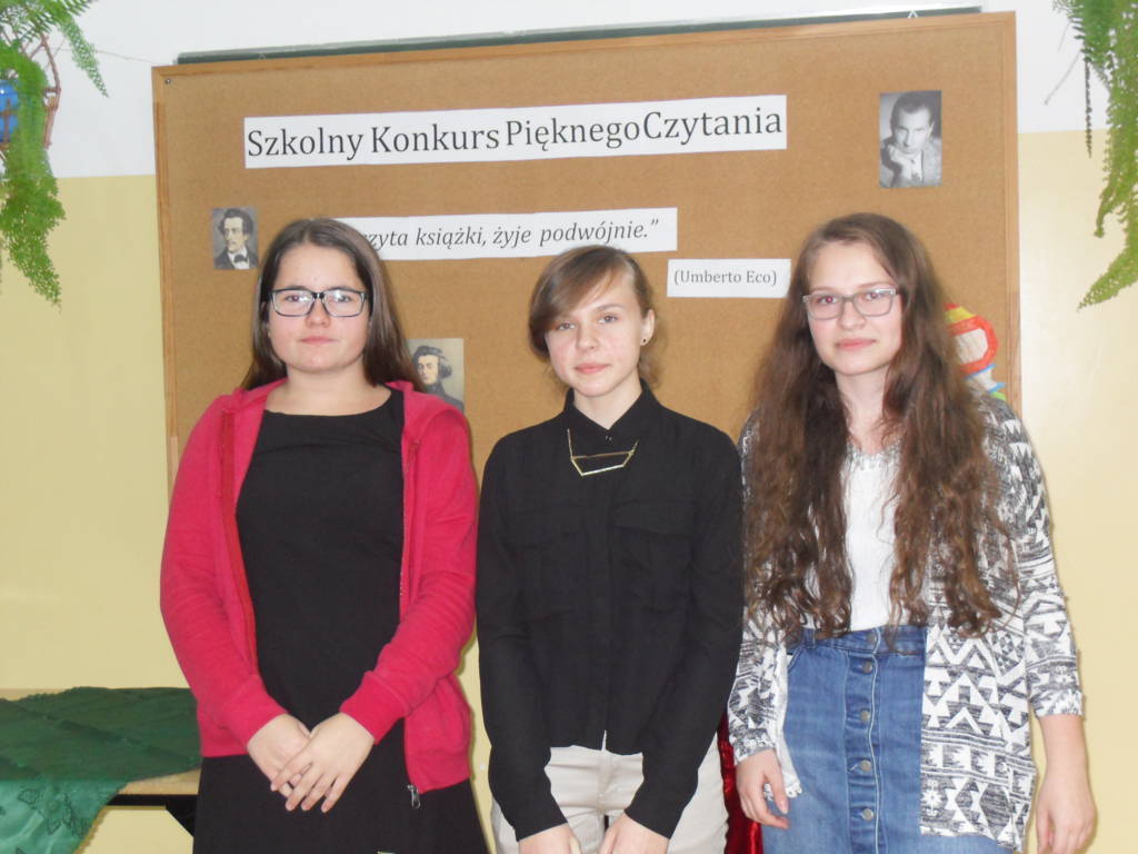 O tym, że warto czytać powinni wiedzieć wszyscy. Na pewno wiedzą o tym uczniowie Publicznego Gimnazjum im. Jana Pawła II w Mirowie. Promocją czytelnictwa zajęła się Biblioteka Szkolna, która we współpracy z Gminną Biblioteką Publiczną w Mirowie zorganizowała Szkolny Konkurs Pięknego Czytania. Konkurs odbył się 28 listopada 2016r. w budynku gimnazjum pod hasłem Kto czyta książki, żyje podwójnie. Celem tego przedsięwzięcia było m.in. upowszechnianie czytelnictwa i rozbudzanie zainteresowań czytelniczych wśród młodzieży. Przygotowaniem i przeprowadzeniem konkursu zajęła się p. Sylwia Matejska. W konkursie wzięło udział 26 uczniów z klas I-III gimnazjum. Uczestnicy prezentowali fragment wybranej przez siebie prozy. Uczniowie najczęściej wybierali utwory H. Sienkiewicza, A. de Saint – Exuperego i L. Mount Montgomery. Komisja konkursowa w składzie: