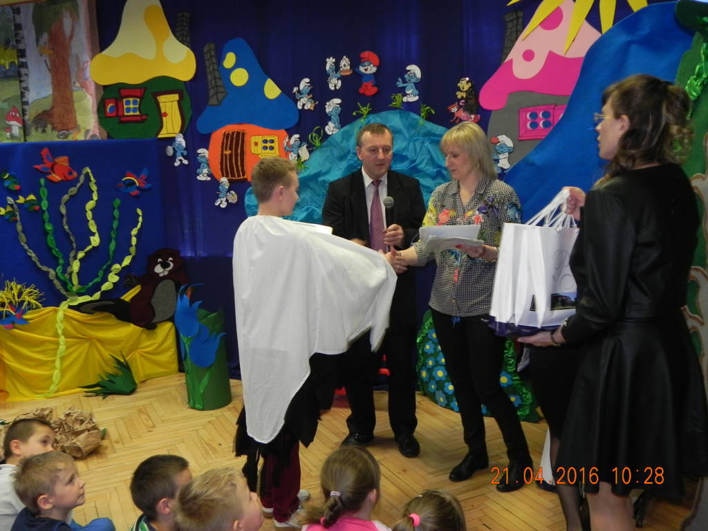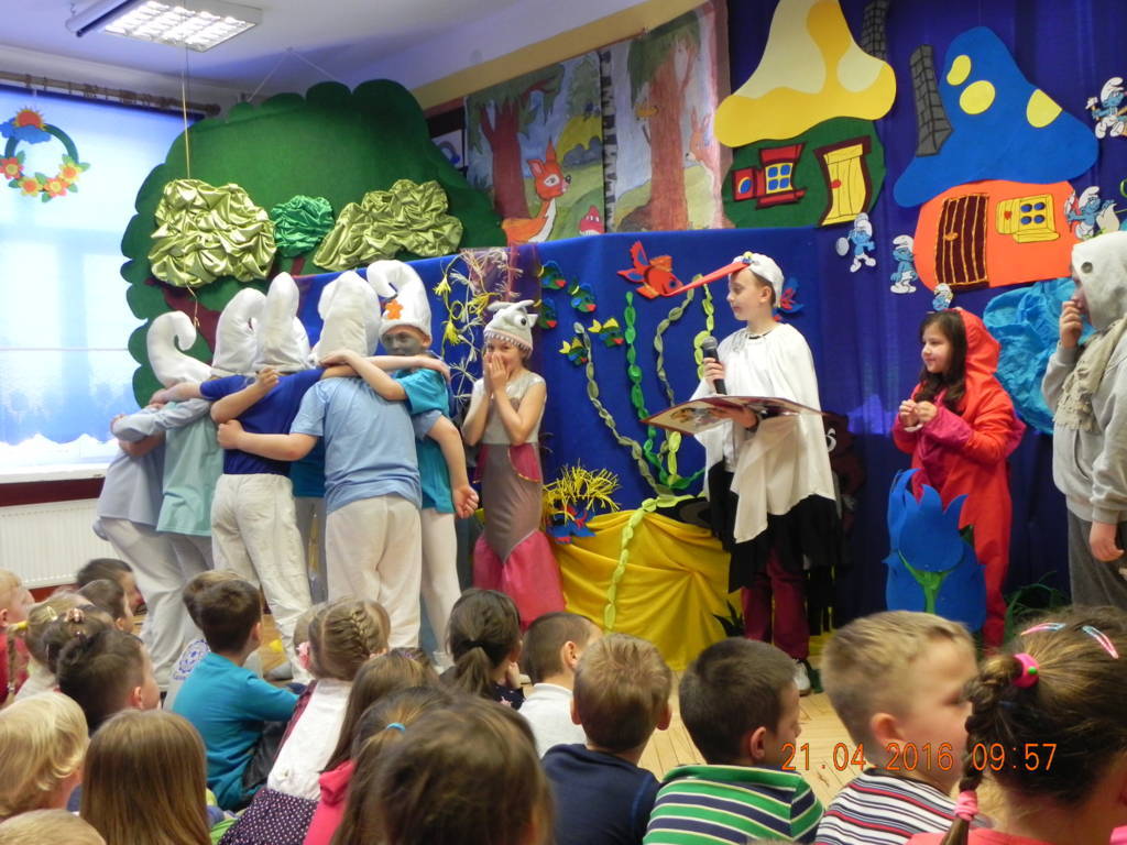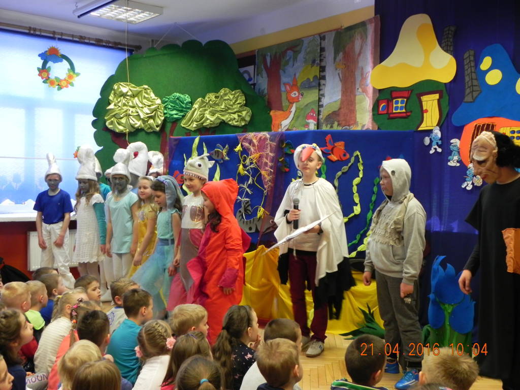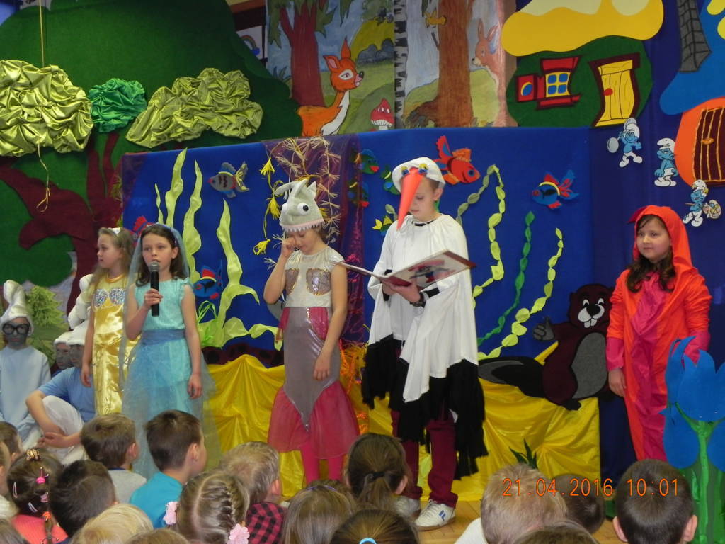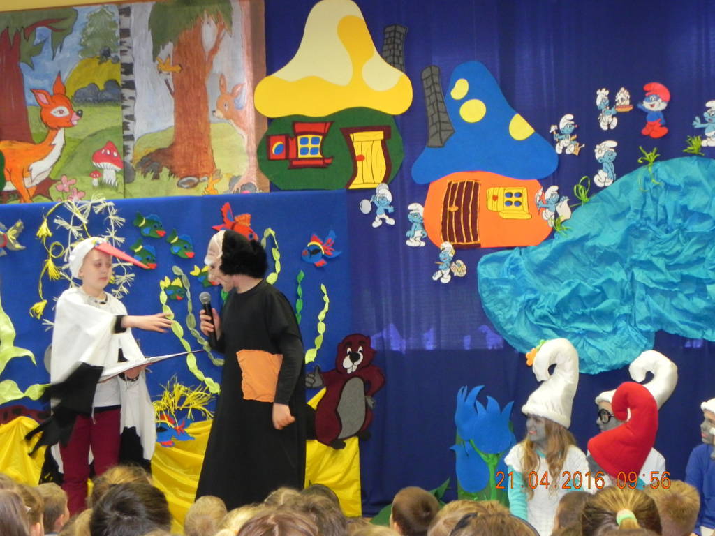 Woda źródłem życia to nazwa imprezy, która odbyła się w naszej szkole w dniu 21.04.2016r. Uczniowie klas VI wprowadzili nas w tematykę wody. Opowiedzieli nam jak ważną rolę w życiu odgrywa dla nas woda. Swoje przemówienia wzbogacili filmami multimedialnymi, z których dowiedzieliśmy się co robić by nie marnować tej życiodajnej substancji. Następnie na scenie pojawiła się klasa III, która przeniosła nas w magiczne miejsce zwane wioską smerfów. W przepięknej, bajkowej scenerii, wzbogaconej piosenkami i prezentacją multimedialną uczniowie odegrali przedstawienie pt. Smerfy nad Iłżanką poruszając tematykę zanieczyszczania wód oraz pokazali jak zbudować oczyszczalnie wody.Na koniec nastąpiło uroczyste wręczenie dyplomów za udział w konkursie Woda to życie, w którym uczniowie otrzymali nagrody od przewodniczącej rady powiatu szydłowieckiego Anity Gołosz.Wszyscy zrozumieli znaczenie wody w życiu człowieka i potrzebę oszczędnego nią gospodarowania.