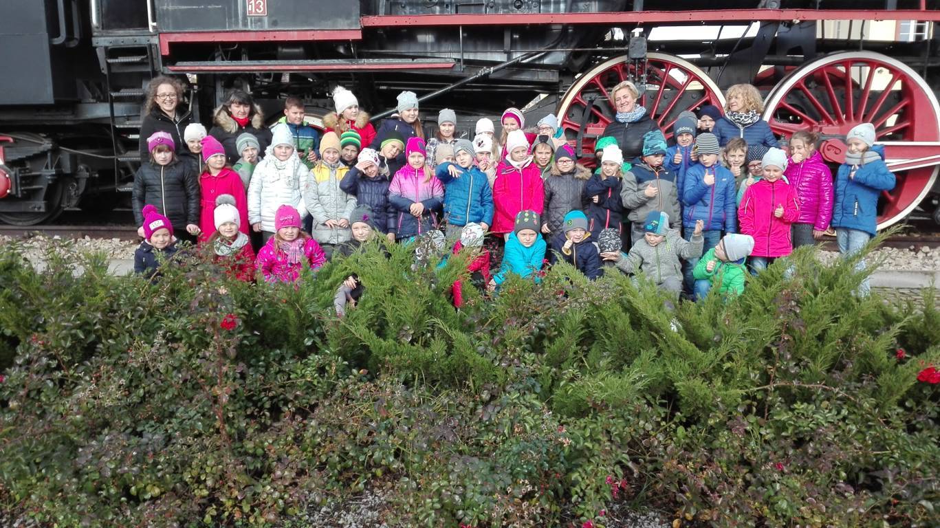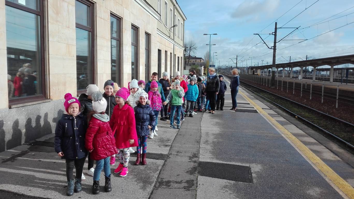 Kolejny punktem wycieczki było zwiedzenie Dworca PKP. Dzieci miały możliwość zobaczyć wnętrze dworca, kasy biletowe oraz zabytkowy Parowóz Pt 47-13, który został wyprodukowany w 1948 roku w Pierwszej Fabryce Lokomotyw w Polsce w Chrzanowie. Jest to podarunek PKP Cargo dla miasta z wielkimi tradycjami kolejarskimi. Wiele radości sprawił dzieciom spacer wiaduktem i zejścia na perony, gdzie mogli odczytać tablice informacyjne m.in. rozjazdu pociągów, ale także ostrzegawcze. Pełni wrażeń i wspomnień z radością wrócili do szkoły.