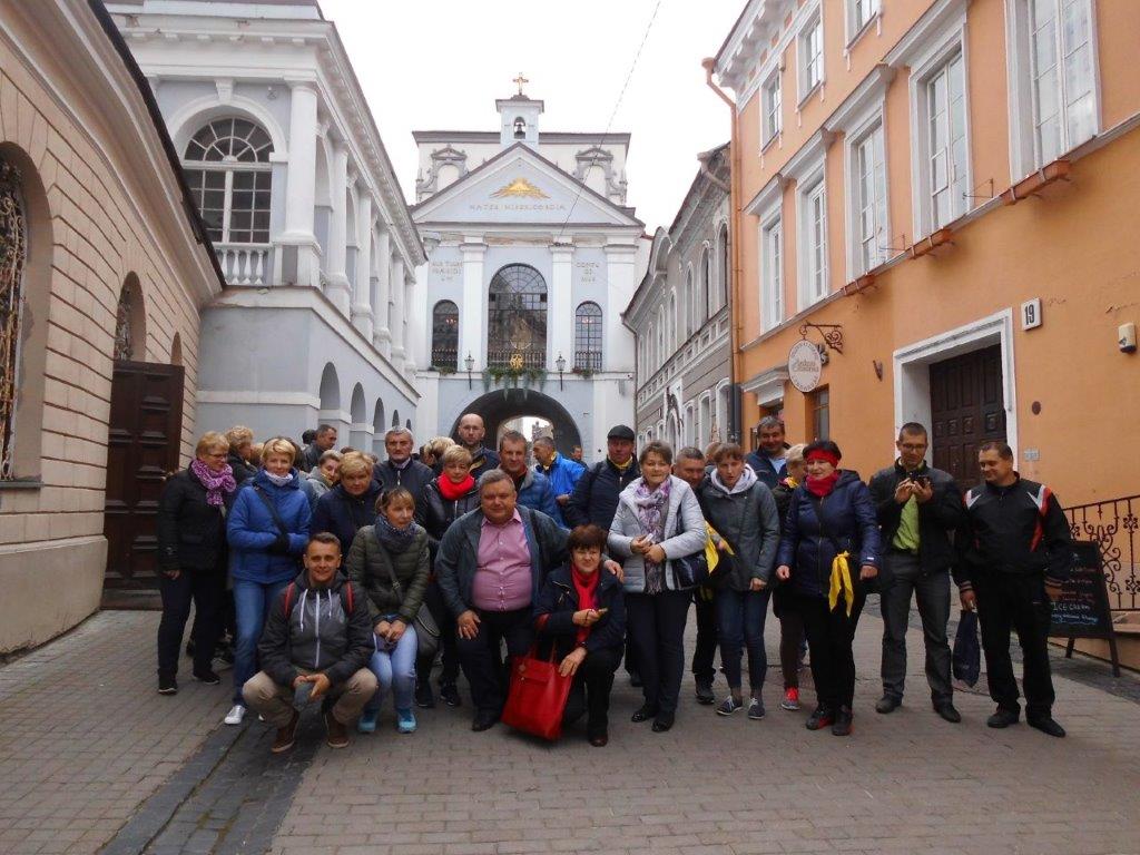 Pod opieką przewodnika pani Jadwigi Szlachtowicz mogliśmy podziwiać zabytki Wilna. Rozpoczęliśmy zwiedzanie od zabytkowego Cmentarza na Rossie. Spoczywa tam wielu Polaków - polskich żołnierzy poległych w walkach o Wilno, ludzi zasłużonych dla ojczyzny, a także serce Józefa Piłsudskiego i jego matki. Ze szczególnym sentymentem zawitaliśmy w progi gotyckiej Ostrej Bramy, gdzie znajduje się słynący cudami obraz Matki Boskiej Ostrobramskiej Królowej Korony Polskiej. Następnym punktem zwiedzania był najpiękniejszy w Europie kościół św. Piotra i Pawła na Antokolu . Od niedawna proboszczem tej parafii jest nasz rodak ks. Wojciech Górlicki z Szydłówka. W Sanktuarium Miłosierdzia Bożego można było pomodlić się przed pierwszą wersją obrazu "Jezu, Ufam Tobie" namalowanego przez Eugeniusza Kazimirowskiego wg. osobistych wskazówek św. Faustyny Kowalskiej. Godna obejrzenia była również Cerkiew św. Ducha, w której znajdują się relikwie świętych męczenników: Antoniego, Jana i Eustachego, wystawione na widok publiczny. Po obiedzie w domu pielgrzyma, podziwialiśmy piękną panoramę Starego Miasta z góry Trzykrzyskiej, . Zwieńczeniem dnia pełnego atrakcji był grill z proboszczem ks. dr Eduardasem Kirstukasem na parafii Matki Bożej Królowej Pokoju w Nowej Wilejce.
